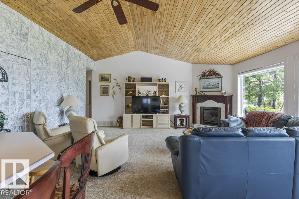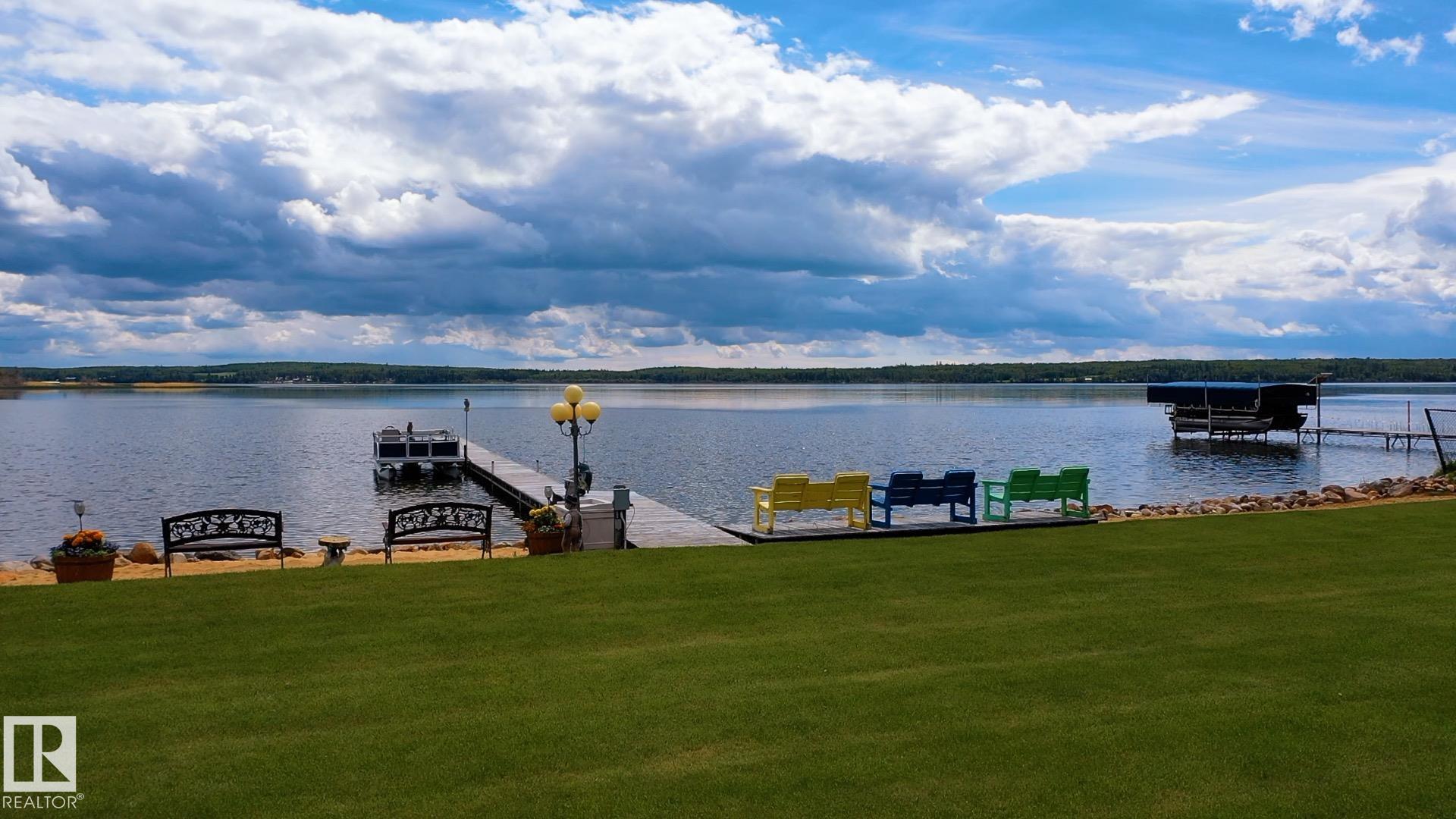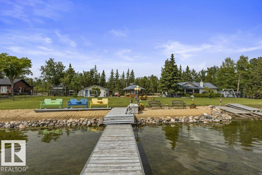 LAKEFRONT HOME WITH 200 FEET OF WATERFRONT! This STUNNING property situated on a quiet cove in Whiterock Beach on Lac La Nonne. Pull up through the gate of this F/F yard to breathtaking views of the lake! This property is situated on DOUBLE LOTS & features a beautiful 1527 sq ft home that can accommodate full time lake living or the perfect getaway! Featuring gorgeous, vaulted wood ceilings, open floor plan, perfect for entertaining & lake side viewing! The kitchen has gas stove & B/I wall oven, loads of cabinetry. Gas fireplace makes the home cozy on those crisp nights. There are 3 bedrms, 2 full baths & primary suite with access to the 70 ft deck with hot tub! Double detached garage with side workshop, perfect for your hobbies! Year around gazebo with walls of windows. Full 50 AMP RV hookup, several sheds, greenhouse & many household furnishings. This property is amazingly maintained with sandy beach, clear waters for all your lake activities! Only 60 minutes to YEG, 45 to St Albert & 15 to Barrhead!