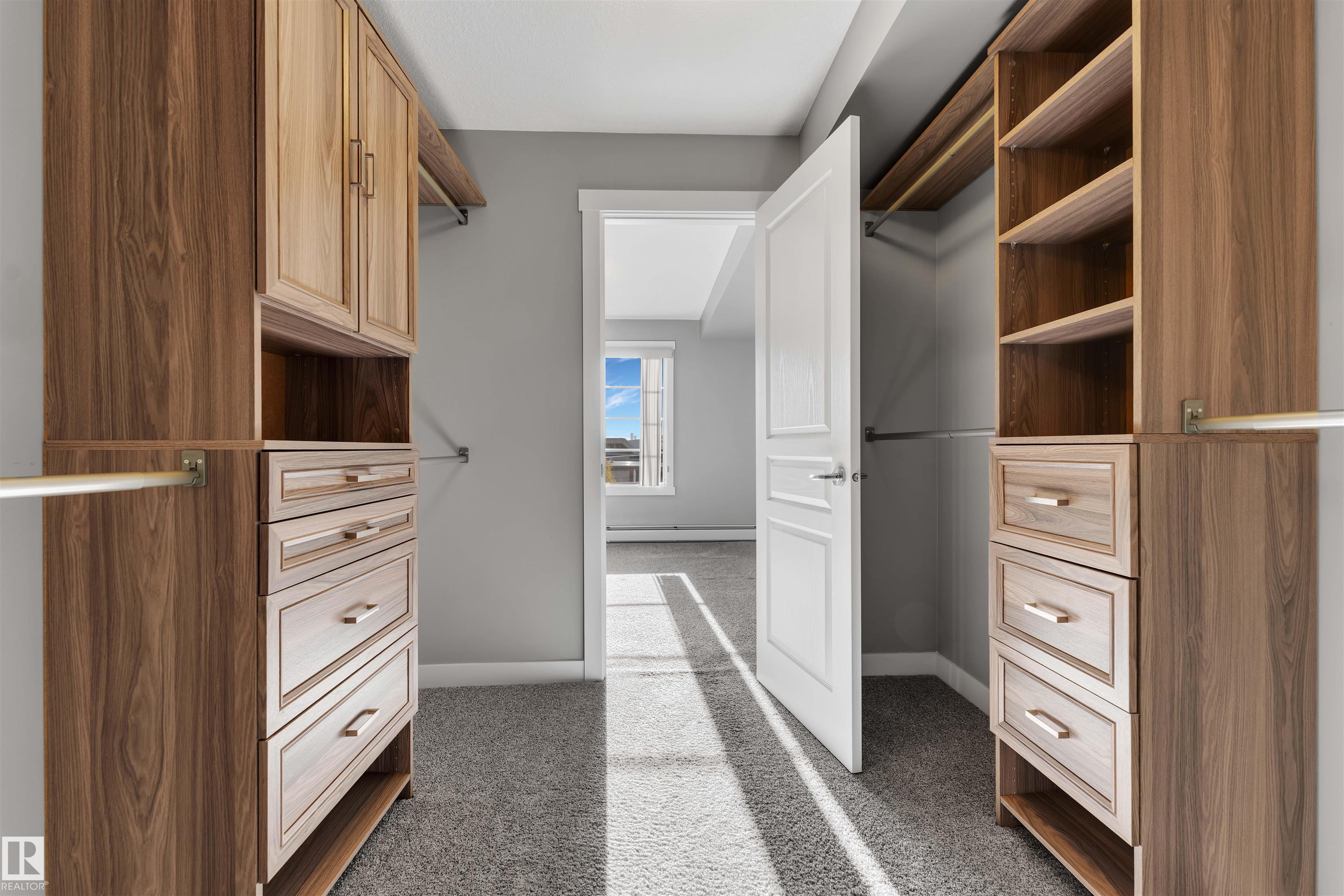 Experience modern living at its finest in this immaculate 3rd-floor CORNER UNIT featuring 2 BEDROOMS PLUS A DEN. This PET-FRIENDLY home offers an open, sun-filled layout with abundant windows and a spacious southwest-facing balcony perfect for morning coffee or evening relaxation. Enjoy premium upgrades including GRANITE COUNTERTOPS, stainless steel appliances, soft-close cabinetry, BACK SPLASH, stylish light fixtures, and extra-large BUILT-IN STORAGE in the primary bedroom. Meticulously maintained by the ORIGINAL OWNERS, the unit is in excellent condition and shows PRIDE OF OWNERSHIP throughout. Bonus features include TWO TITLED PARKING STALLS (one underground, one surface) plus a STORAGE CAGE. Ideally located steps from the recreation centre, walking distance to shopping, and NEAR THE LRT, this home combines convenience, comfort, and upscale living. A perfect blend of style, functionality, and modern luxury--this is condo living at its absolute best, ready for you to move in and enjoy immediately!