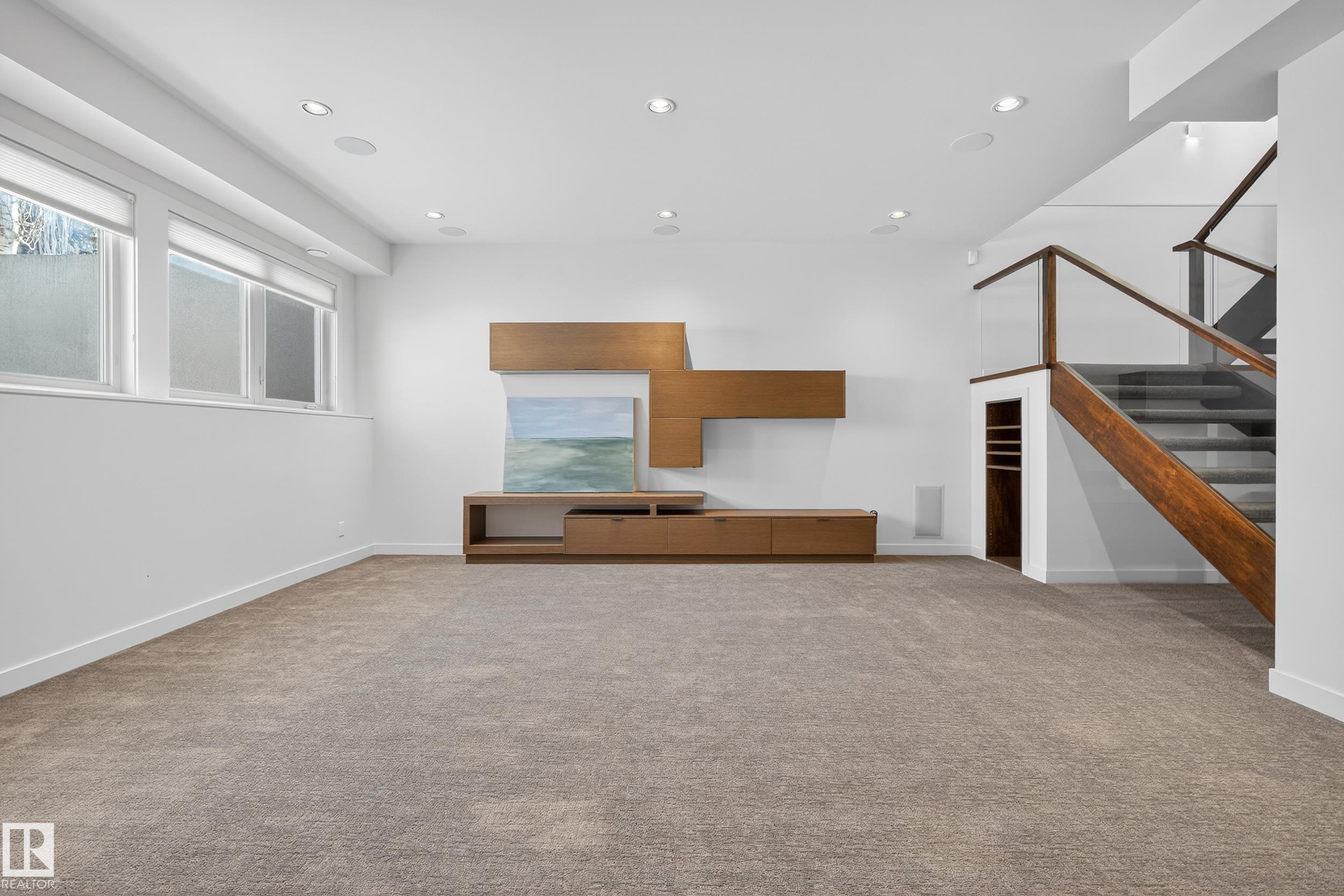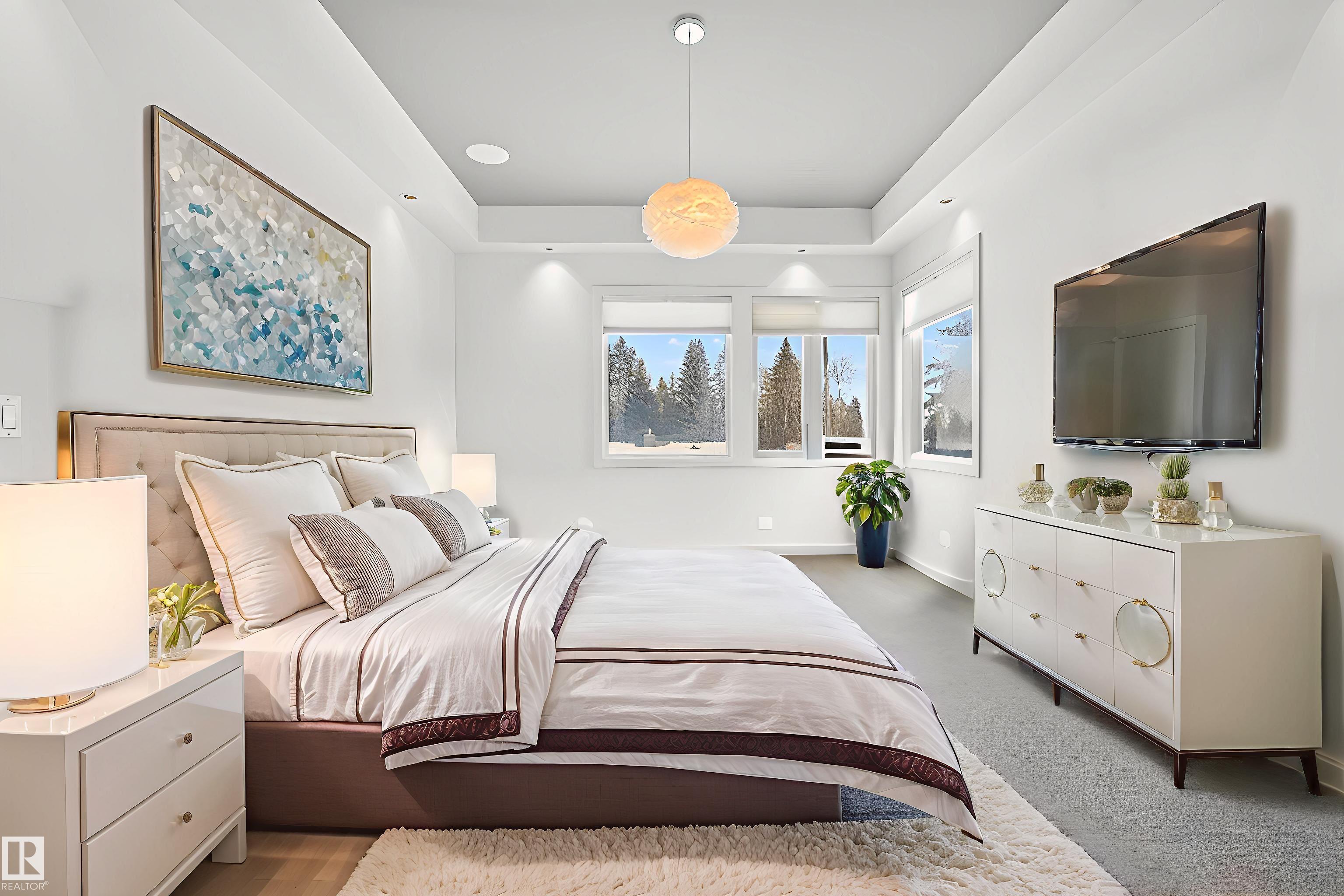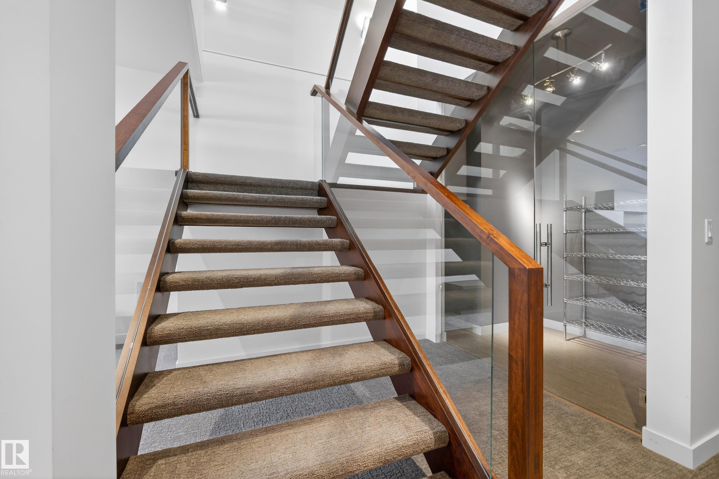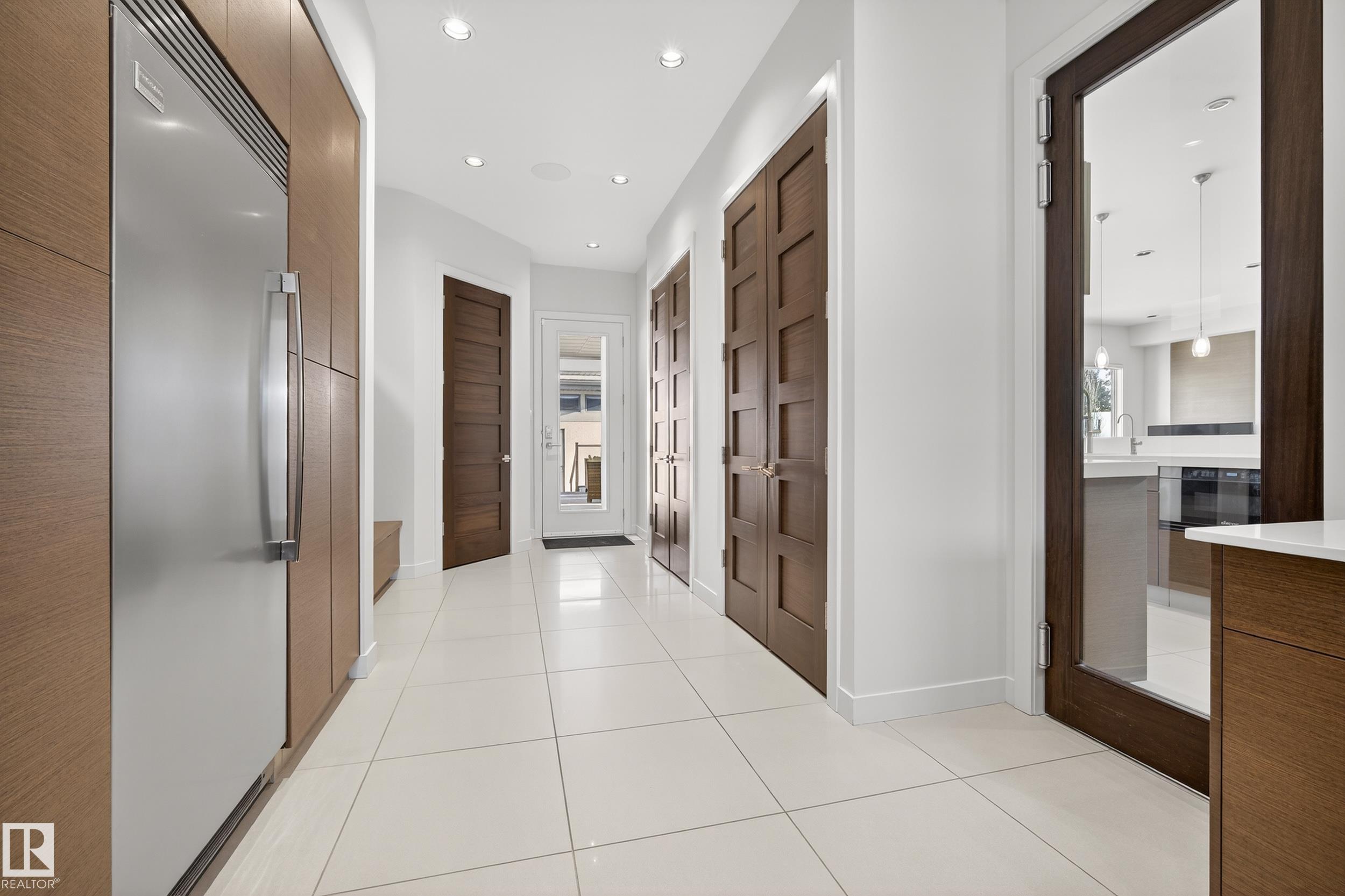 Ideally located in Crestwood near the Mackenzie Ravine, this stunning contemporary home delivers an exceptional layout for family & entertaining. The showpiece kitchen features a massive island, marble countertops & backsplash, sleek cabinetry, gas range, & double built-in ovens, flowing seamlessly into the dining nook and living room with 10-ft ceilings, & gas fireplace. The main floor offers an enclosed den, 2-piece bath, butler's pantry, & a mudroom with abundant storage. Upstairs, the luxurious primary retreat includes a 5-piece ensuite with dual vanities, and walk-in closet, while two additional large bedrooms also each have their own ensuite & walk-in closets. The basement with in-floor heating & oversized windows includes a gym, rec room, wet bar, wine room, a guest bedroom, & full bath. Outside, enjoy a covered patio with heaters, plus a private sunken patio, and an oversized triple garage with 13-ft ceilings for travel van or a car lift. Close to schools, shopping, and amenities.