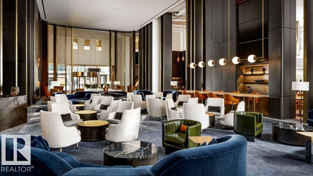 FULLY FURNISHED and turn-key ready right in the heart of the Ice District! Experience downtown living at its finest in this beautiful 1 bedroom + den unit at the Legends Private Residences. Enjoy WEST-FACING floor-to-ceiling windows, custom built-ins from California Closets to maximize storage, fresh paint throughout, and a sleek high-gloss kitchen with quartz countertops. Other highlights include a private balcony, in-unit laundry, and a titled underground parking stall. Indulge in luxury urban living with access to the JW Marriott's premium amenities including an indoor pool, hot tub and steam room, plus TWO memberships to the ARCHETYPE Fitness Facility. Residents also enjoy an exclusive lounge, outdoor patio with BBQ area, dog run, and 24/7 concierge/security services. Direct access via pedway system to Rogers Place, LRT, restaurants, and shopping, this residence offers unmatched convenience.