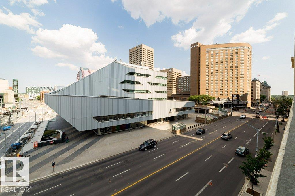 OUTSTANDING LOCATION! This Churchill Exchange condo is located in the heart of Edmonton, steps from Ice District, The Winspear, Art Gallery, 104th Street Farmer's Market & Churchill Square. Almost 1100 sq ft of living space including the spacious balcony. This one bedroom plus loft condo is in a gorgeous historical, art deco building. Enjoy 16' open beam ceiling and exposed brick. Open stairway to the loft level with a 4 pce ensuite. The main floor features a bright kitchen with granite countertops and stainless steel appliances, an open living room with gas fireplace and large second bedroom. Massive windows make this a beautiful bright condo. There's a huge balcony off the living room and a shared roof top deck with amazing views of the city. Underground, secured parking is heated! The ultimate Downtown location in a quiet concrete building!