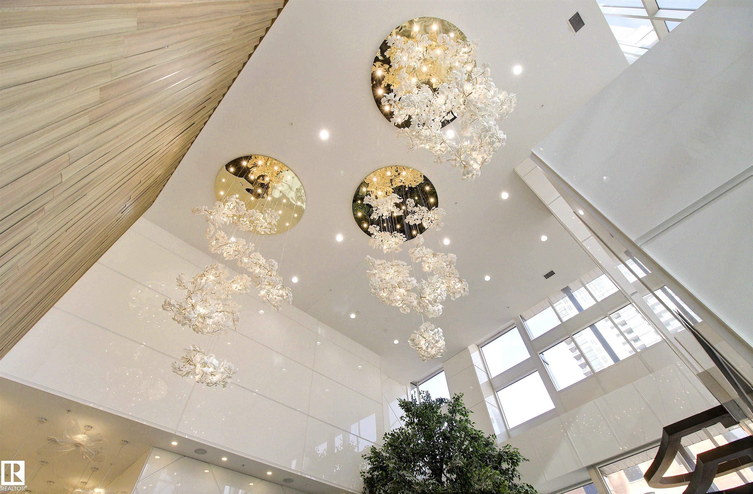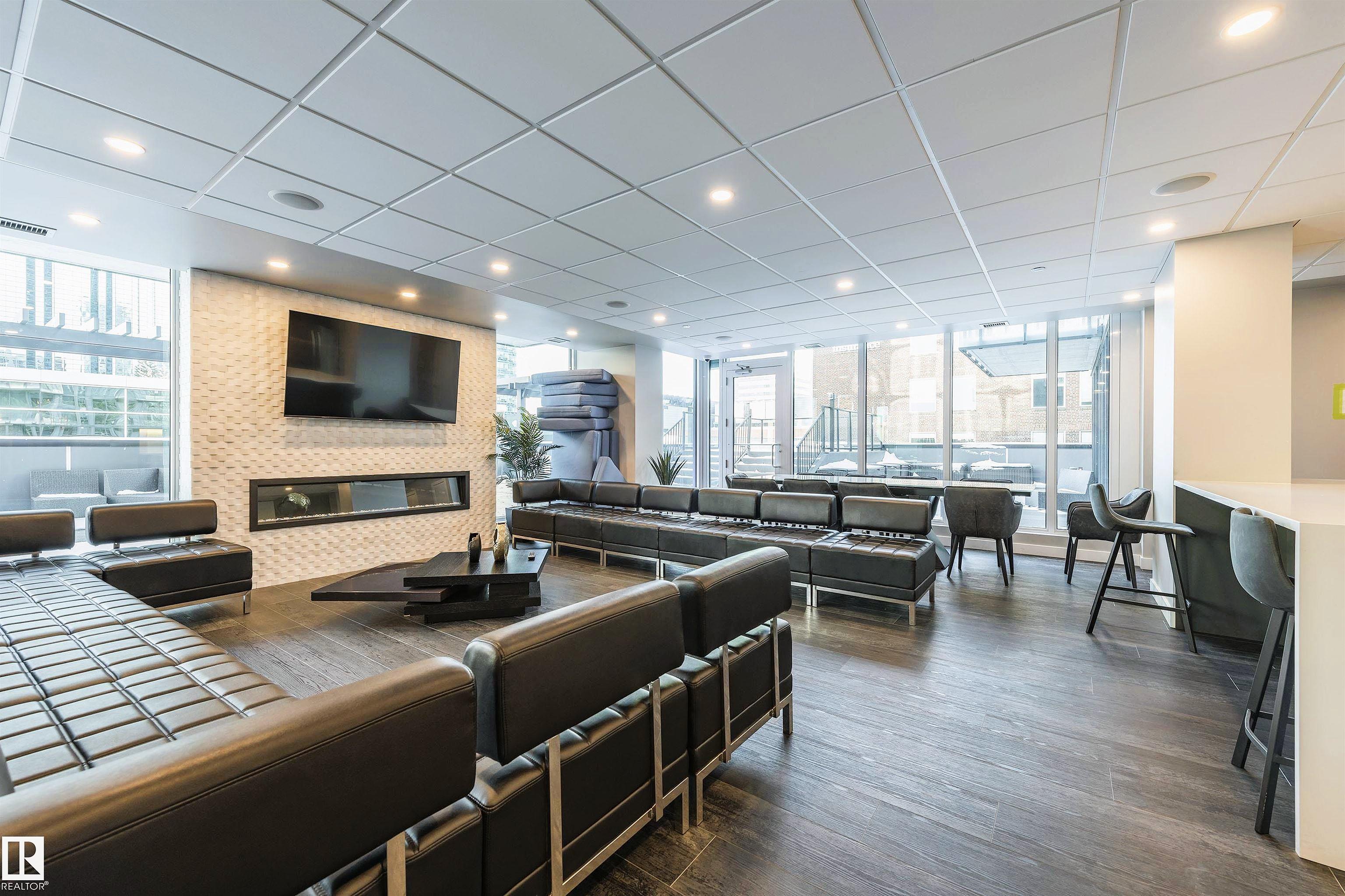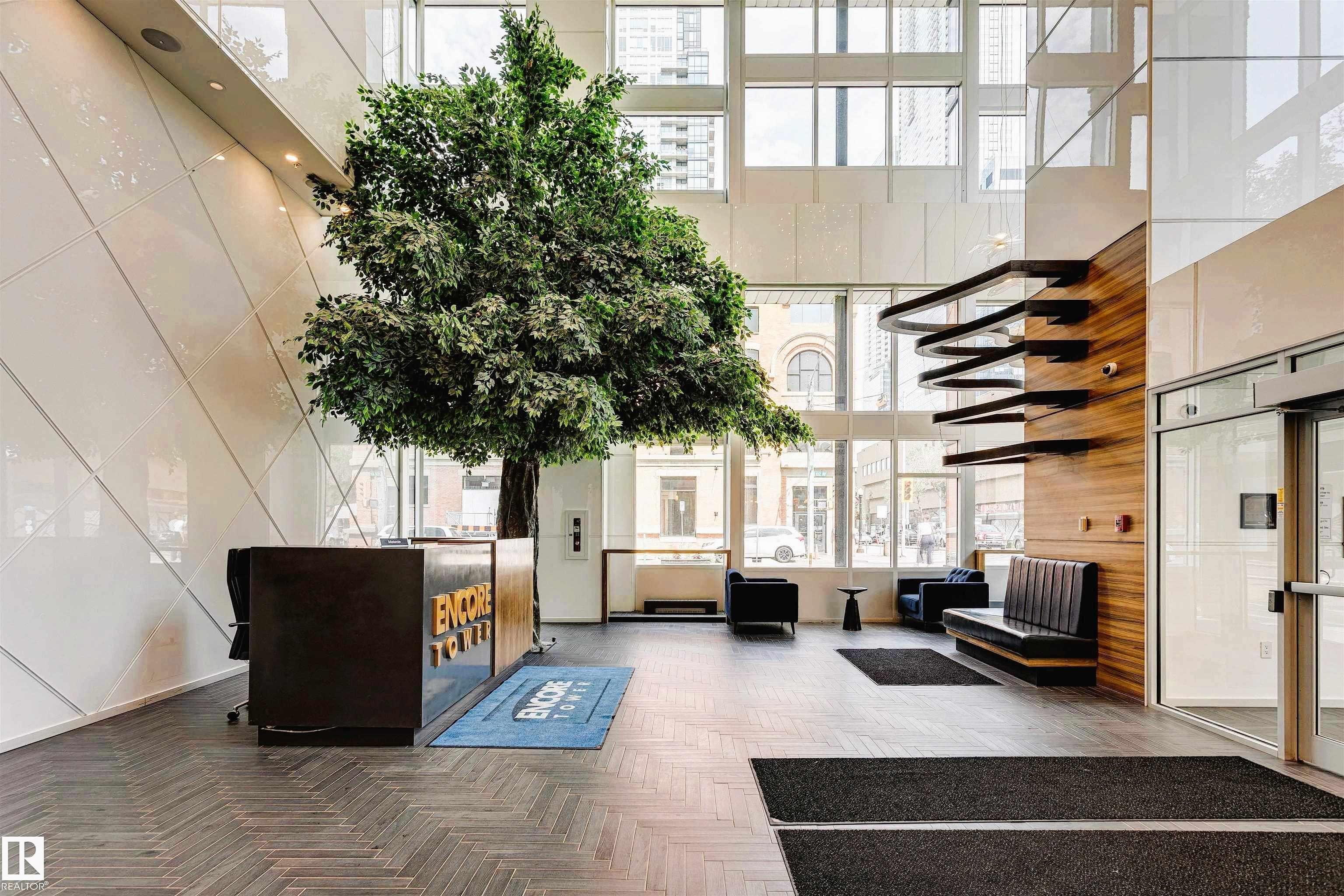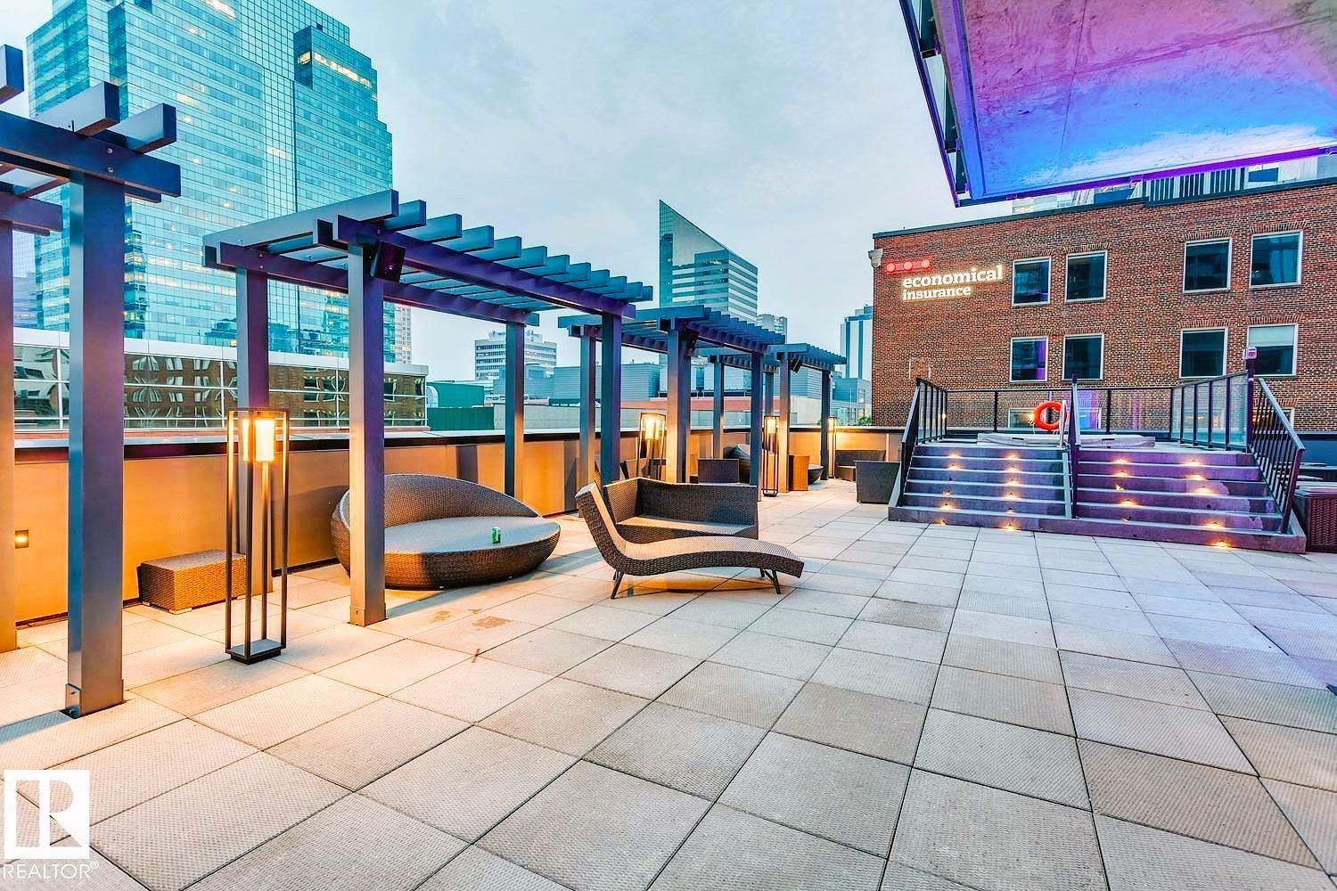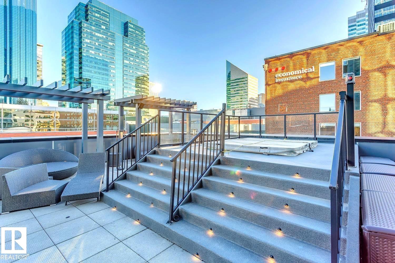 Discover unparalleled luxury in this sleek, modern Encore Tower residence, just steps from the ICE District, Rogers Arena, and the vibrant amenities of 104 Street. This exceptional 2-bedroom, 2-bathroom 17 floor apartment boasts one-of-a-kind, unobstructed downtown skyline views through floor-to-ceiling windows. Inside, enjoy premium vinyl plank flooring and a contemporary kitchen featuring stainless steel appliances, quartz countertops, and an eat-in bar. The spacious living area offers 9-foot ceilings, while the primary bedroom includes a private 3-piece ensuite and a walk-in closet. Everyday conveniences include air conditioning, in-suite laundry, and garbage chutes on every floor. Indulge in resort-style amenities such as impeccable concierge service, 24/7 security, a rooftop hot tub for ultimate relaxation, a sun-drenched outdoor lounge with private cabanas, a state-of-the-art fitness centre, and a vibrant social room. Don't miss this opportunity to own a slice of Edmonton's finest living.