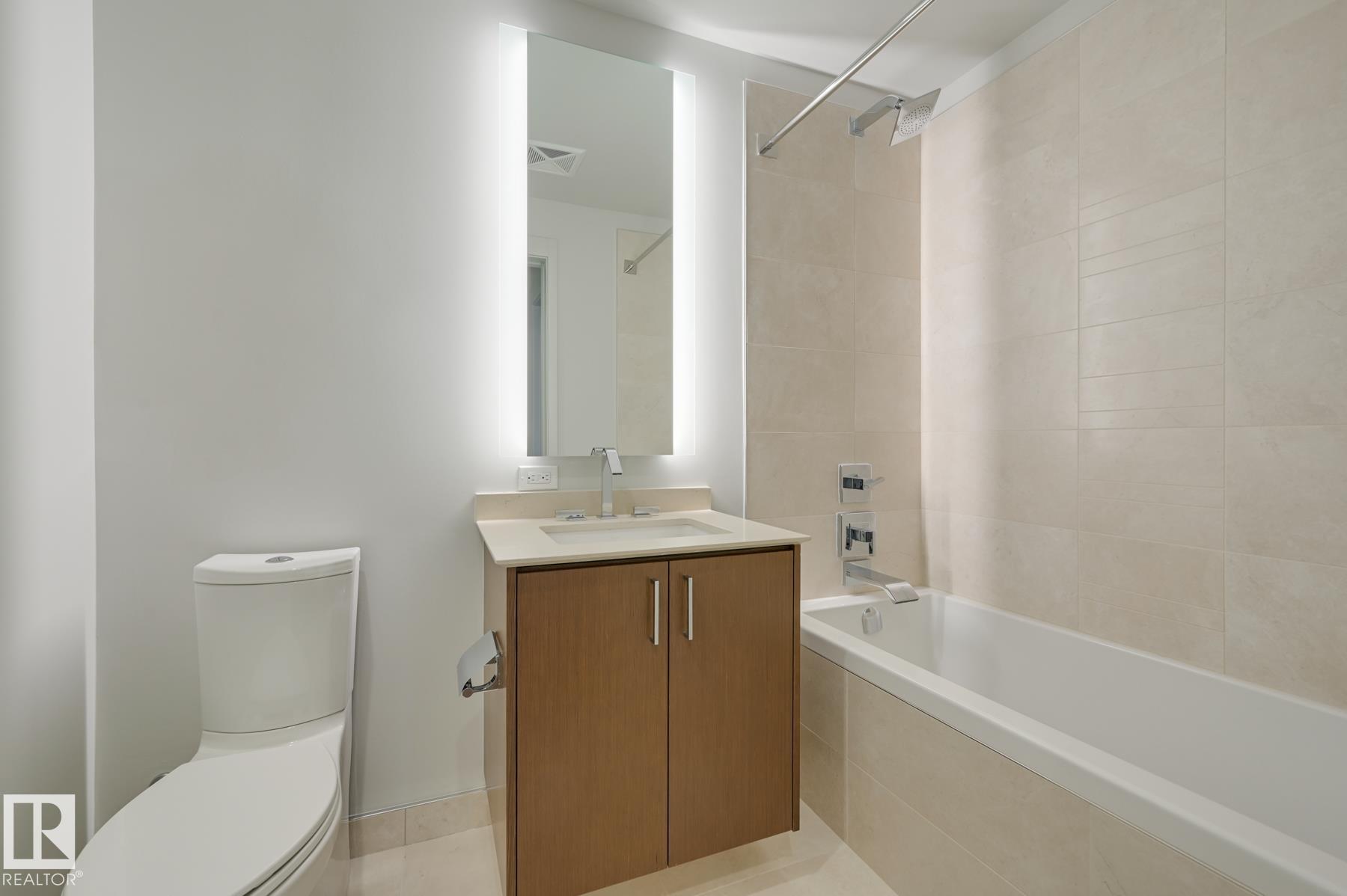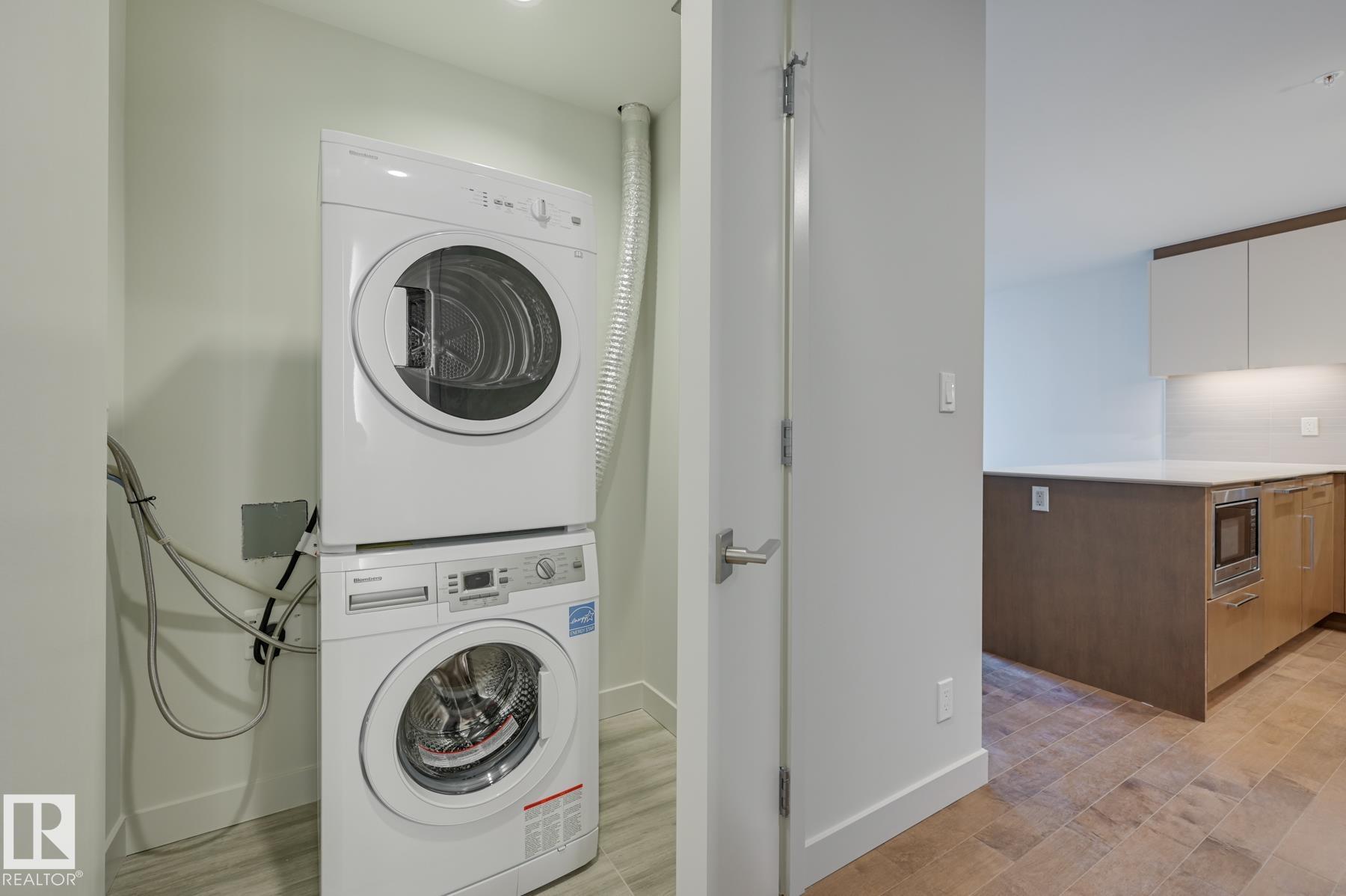 Beautiful 2-Bedroom, 2 Full Bathroom suite available at the Legends Private Residences. Favorite features include a clean and linear layout, spacious peninsula kitchen with additional span of upper cabinets, fully integrated appliances, and ceaserstone island with seating. Modern luxuries include floor-to-ceiling windows, neutral roller shades, natural hardwood floors, tile surfaces in both bathrooms, full temperature control with a/c, and convenient in-suite laundry. The property offers scenic city views from an inviting East facing balcony. ICE District's central location encourages a true walk-indoors experience with pedway access to Rogers Place, the financial core, groceries, public transit + so much more. World-class JW Marriott shared facilities include spa with indoor pool + steam areas, ARCHETYPE fitness facility, 24/7 concierge/security presences, valet and numerous dining choices at your doorstep!