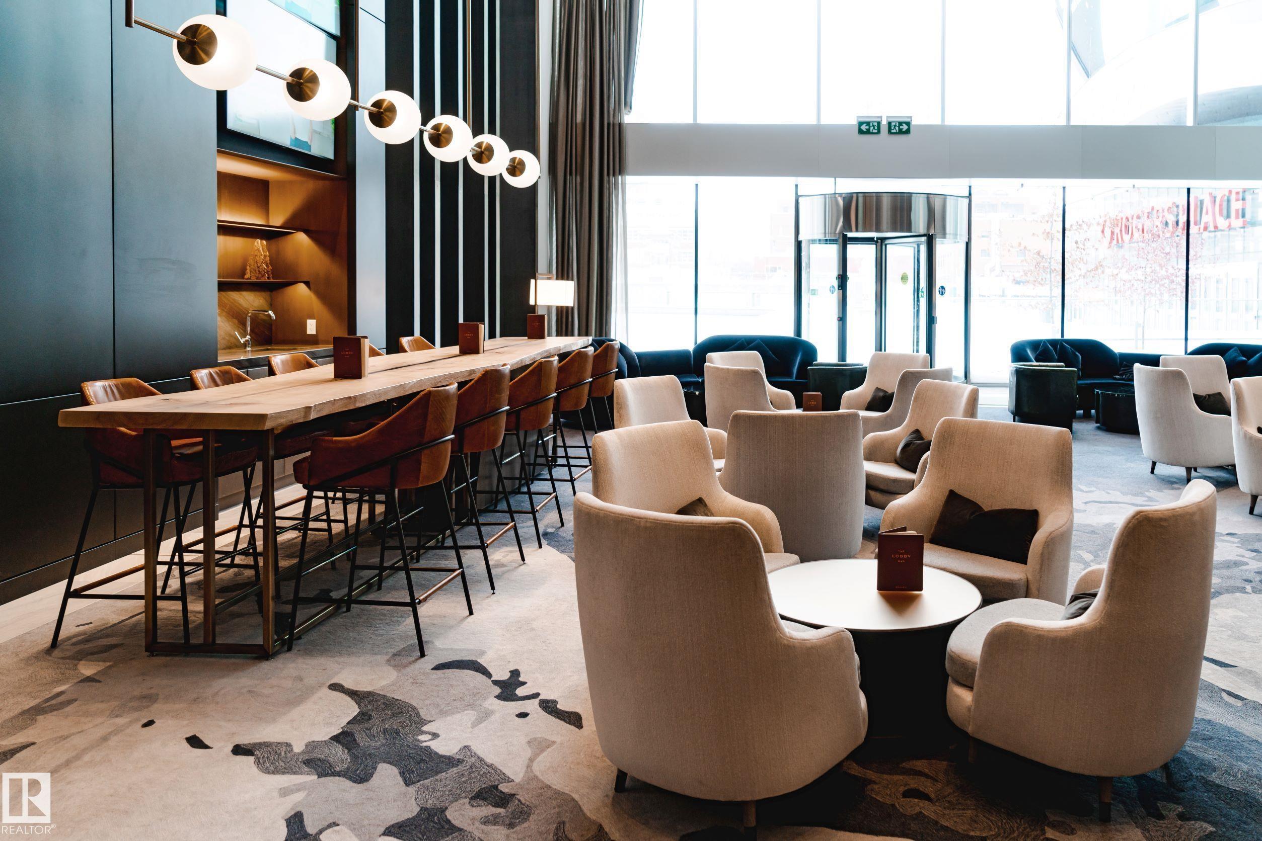 Beautiful 1-Bedroom + Den available at the Legends Private Residences. Favorite features include it's HIGH-FLOOR LOCATION, which offers EAST RIVER VIEWS from the Bedroom and Living area of the suite. The property offers a linear layout, spacious peninsula kitchen with additional span of upper cabinets, fully integrated appliances, and caesarstone island with seating. Modern luxuries include floor-to-ceiling windows, neutral roller shades, natural hardwood floors, tile surfaces in bathroom, full temperature control with a/c, and convenient in-suite laundry. The property offers scenic city + river views from an inviting East facing balcony. ICE District's central location encourages a true walk-indoors experience with pedway access to Rogers Place, the financial core, groceries, public transit + so much more. World-class JW Marriott shared facilities include spa with indoor pool + steam areas, ARCHETYPE fitness facility, 24/7 concierge/security presences, valet and numerous dining choices at your doorstep!