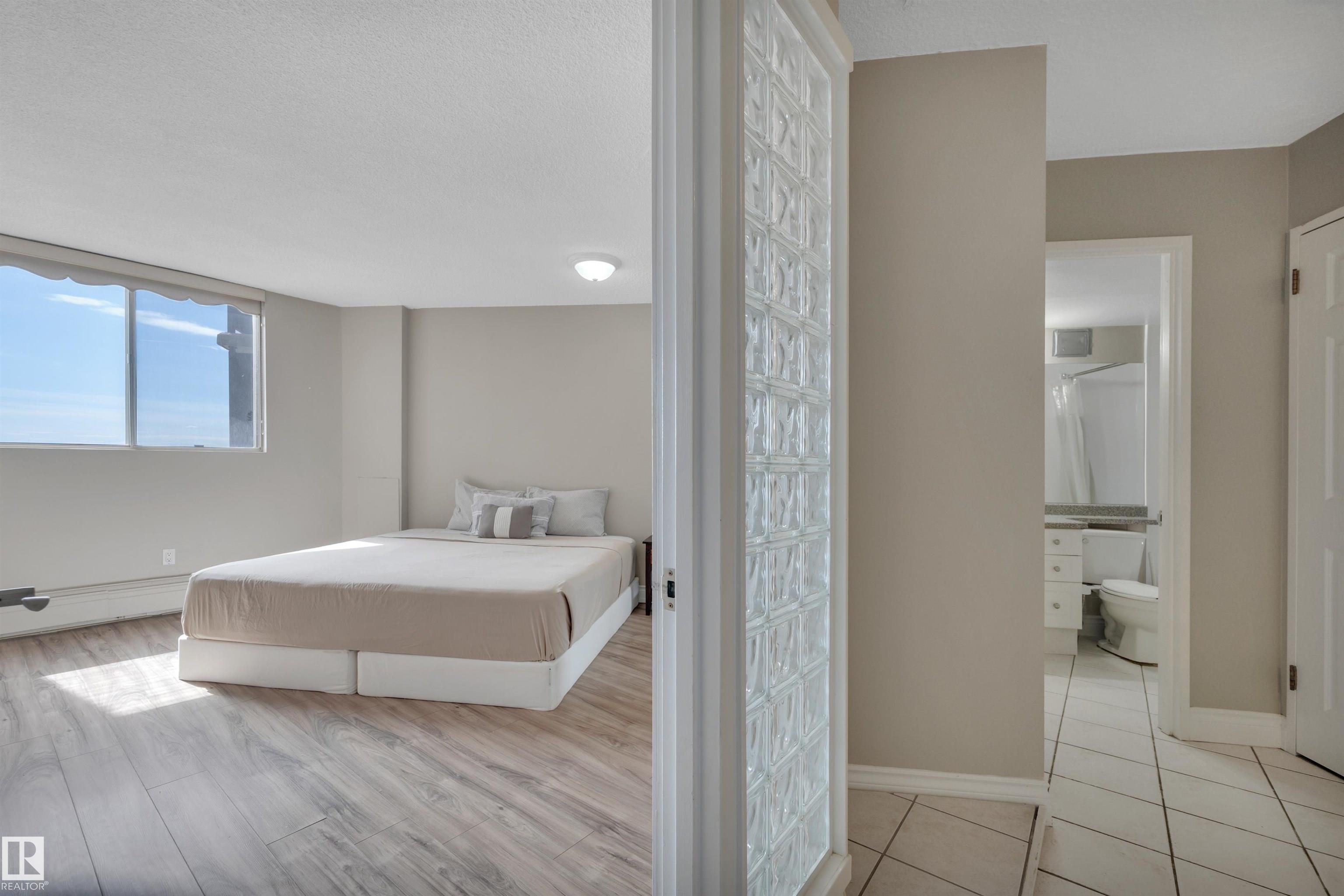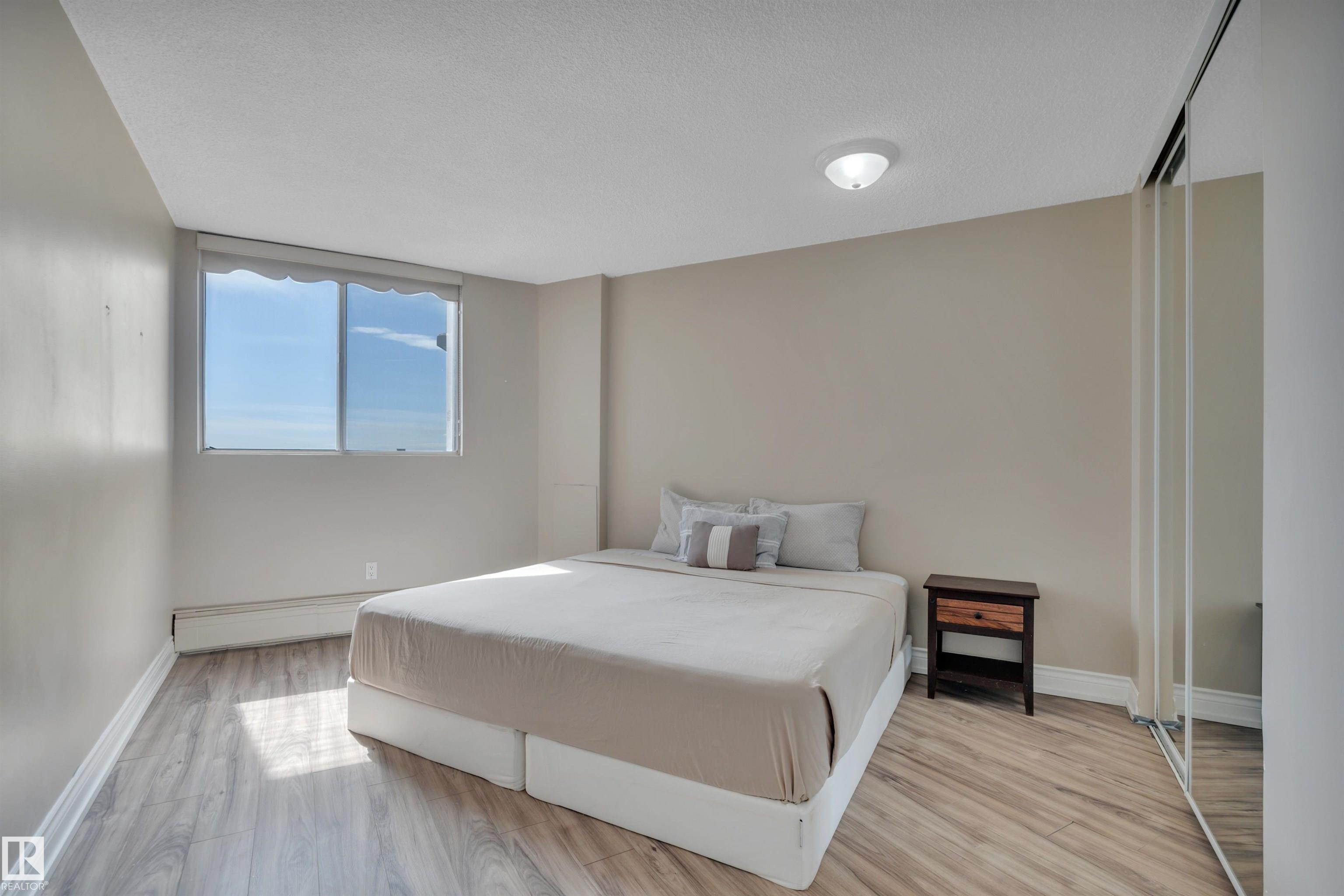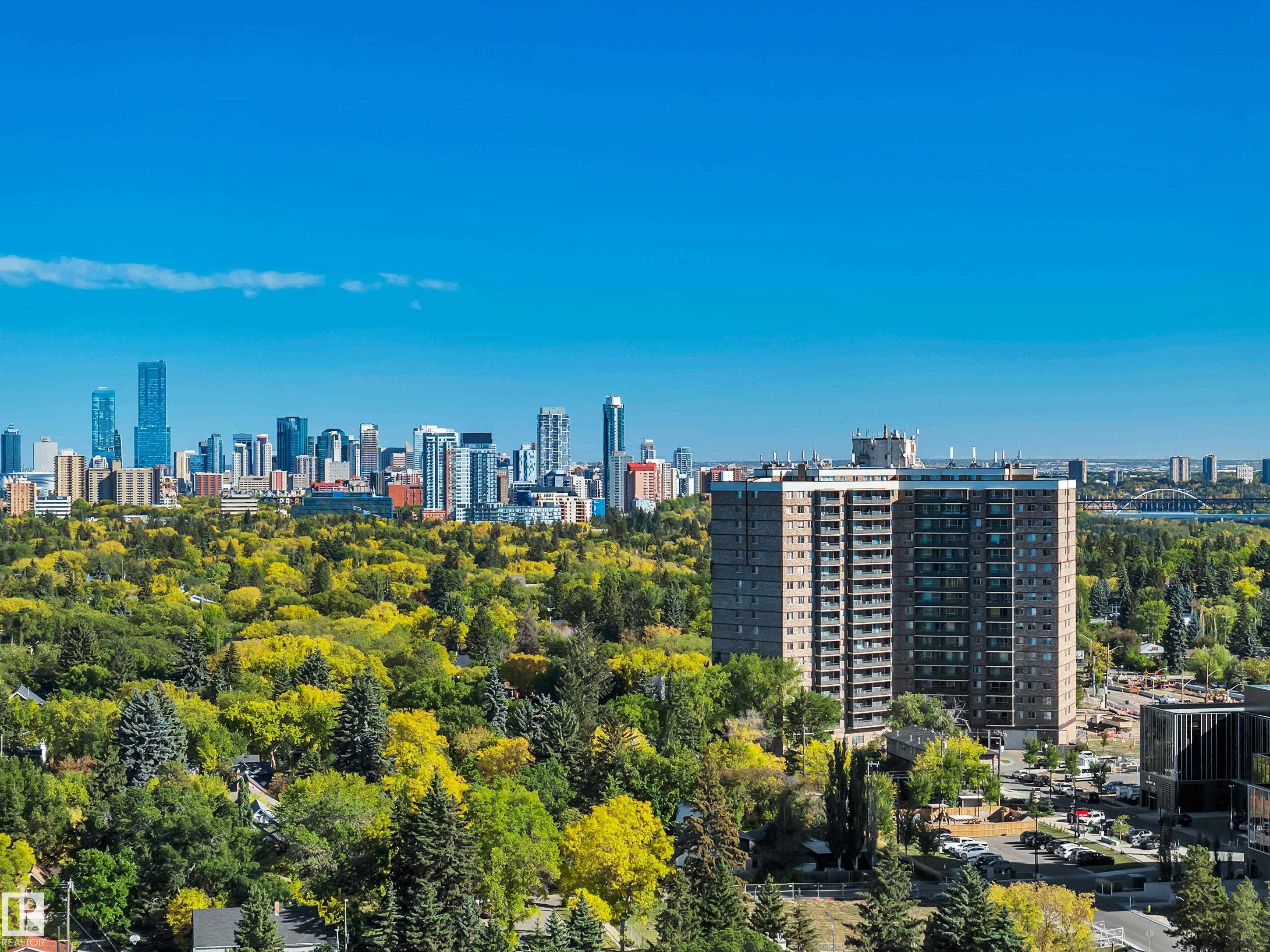 Stunning 14th-floor condo with breathtaking downtown skyline and river valley views from your south facing balcony. Located in soughtafter Glenora, just minutes to downtown and steps to The West Block's shops, dining, and amenities. Future LRT only a 2-minute walk adds exceptional value. This lovely 1-bedroom features a spacious open-concept living and dining area, kitchen, and a large primary bedroom. Condo fees include electricity, heat, water, and access to a saltwater pool, fitness centre, and social room. Concrete construction ensures quiet living, with overnight security and on-site staff. Steps to Mackinnon Ravine and river valley trails. Pet-friendly. Heated underground parking available for a fee.
