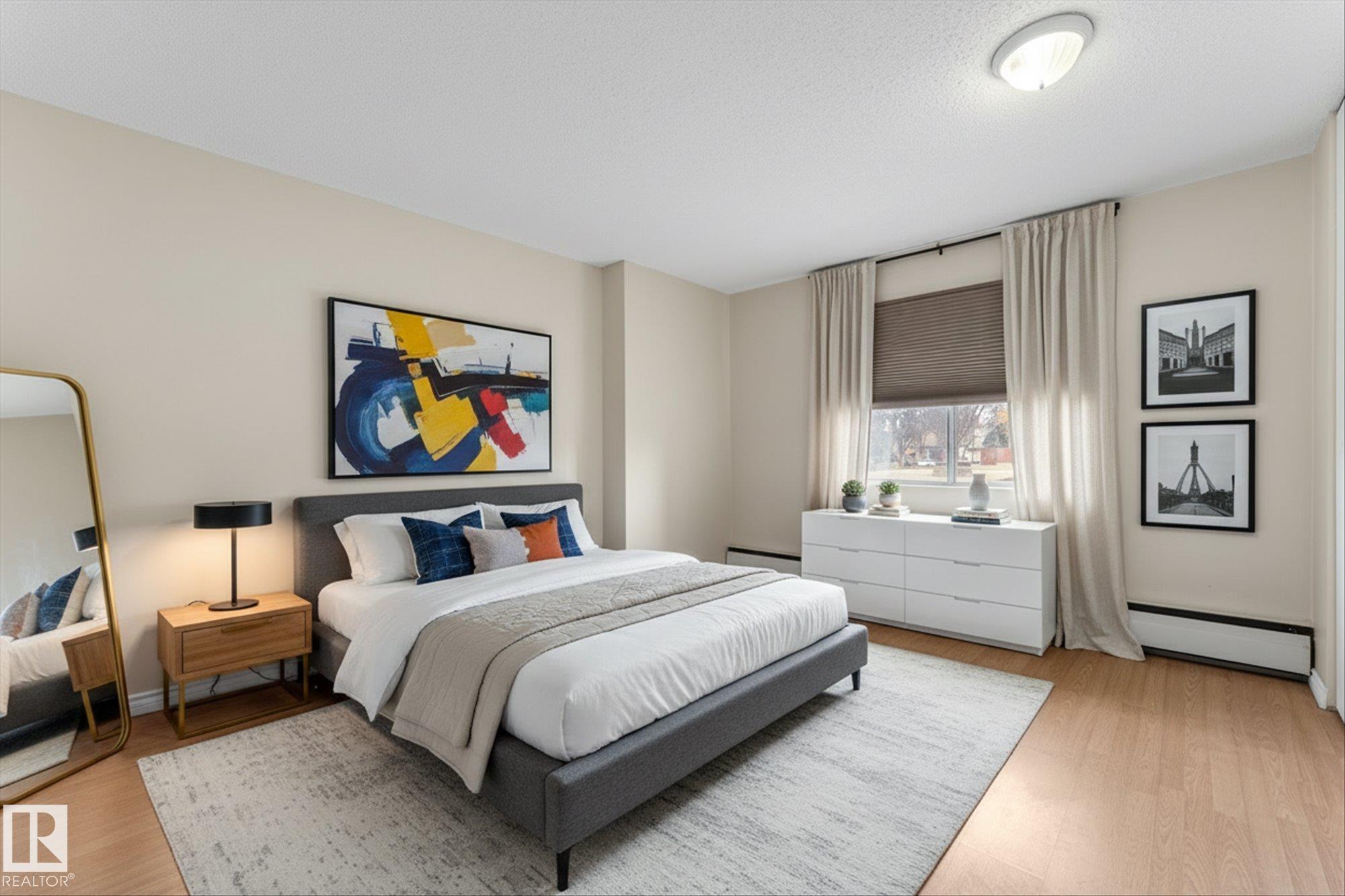 Looking for an affordable way to get into Glenora? One of Edmonton's most prestigious neighbourhoods for less than the cost of rent? You've found it! This one bedroom, 1 bath, main floor condo is ideal for professionals looking for a quick commute downtown or people looking for a pet friendly building with quick access to outdoor spaces. Steps from the River valley trails, MacKinnon ravine, and the upcoming Valley LRT line, this one delivers! Enjoy resort style living with an indoor pool, fitness facility, sauna and social room for entertaining. On site management and security give it the resort vibe. Large windows overlook the park & bring in a ton of natural light. New vinyl plank flooring & a fresh paint job make it easy to just move in. A large storage closet provides ample space for bikes, hiking gear, or seasonal items. The large bedroom has loads of closet space, unusual for a condo. Heat, water, sewer, fitness centre all all included in the condo fees. Steps from public transit & shopping/dining.