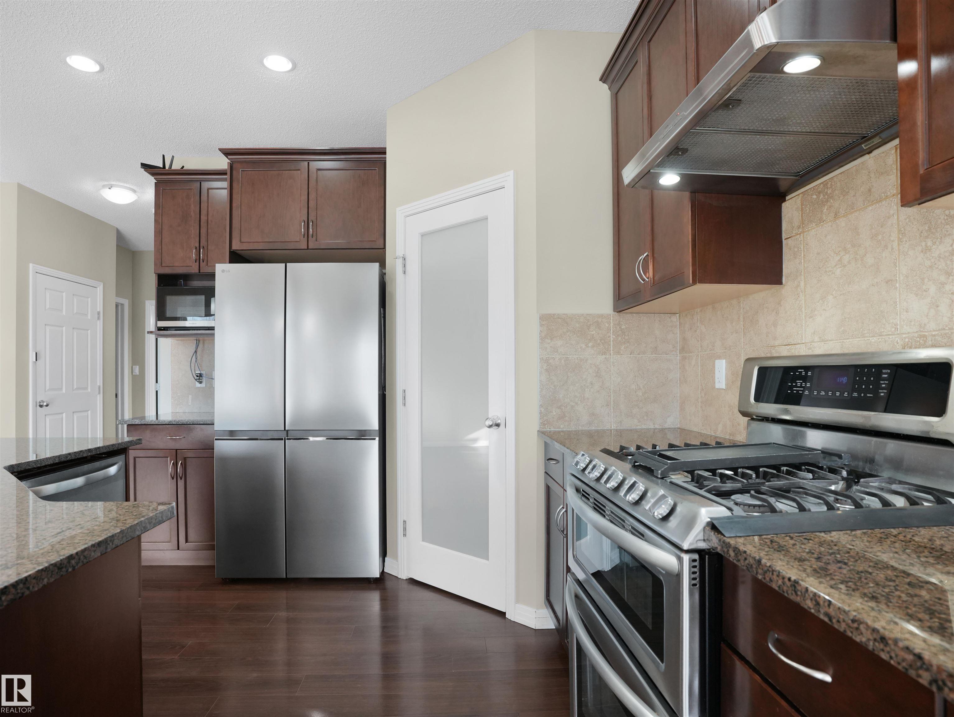 LOOKING FOR SPACE, PRIVACY, & NATURE? THIS IS THE ONE! BEDROCK-BUILT HALF DUPLEX in a QUIET CUL-DE-SAC on a MASSIVE PIE LOT OVERLOOKING RAVINE AREA! Offering over 1,800 SQ.FT. with RARE 4 BEDROOMS UPSTAIRS + A MAIN FLOOR DEN this home is PACKED WITH UPGRADES. BRIGHT OPEN LAYOUT with 9 FT CEILINGS, GRANITE COUNTERS, RAISED CABINETS with CROWN MOULDINGS, 600 CFM EXHAUST FAN with MAKE-UP AIR, GARBURATOR, and PREMIUM APPLIANCES - NEW FRIDGE, KITCHENAID GAS RANGE with DUAL OVEN, DISHWASHER & MICROWAVE (2 YRS OLD). SPACIOUS GREAT ROOM with LENNOX GAS FIREPLACE, MAIN FLOOR DEN, and LAUNDRY with STAINLESS FRONT-LOAD WASHER/DRYER. Upstairs features 2 MASTER-SIZED BEDROOMS (each with 8' IKEA PAX WARDROBES) plus 2 ADDITIONAL BEDROOMS. LANDSCAPED BACKYARD with 8x12 SHED, BBQ GAS LINE & PATIO to enjoy your get-togethers&summer BBQ's. EXTENDED 23' INSULATED & DRYWALLED DBL GARAGE. BUILTGREEN CERTIFIED, CENTRAL VAC rough-in, HUNTER DOUGLAS BLINDS, UPGRADED WINDOWS&SMOKE/PET-FREE HOME! Close to shopping, shopping & more!