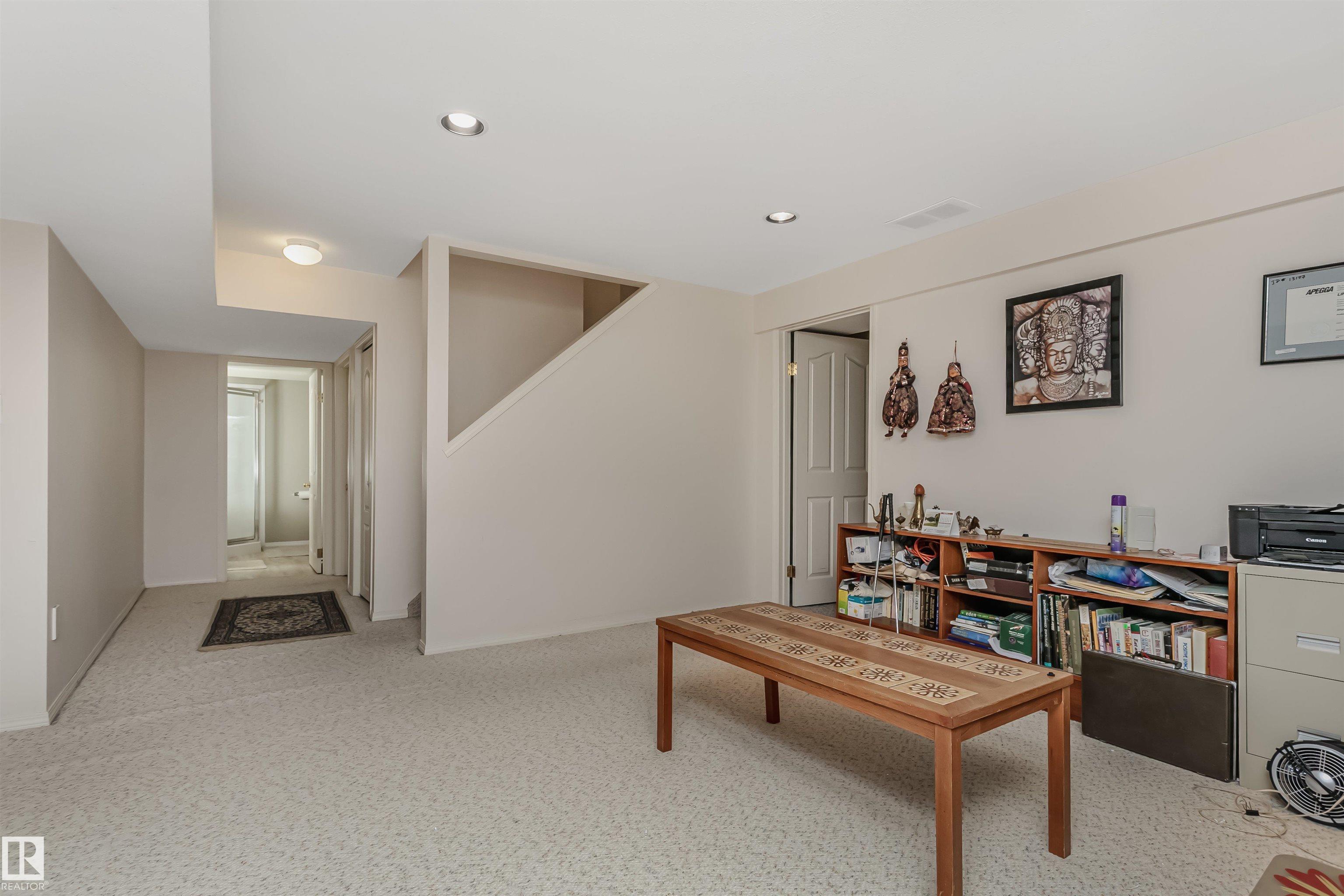 Welcome to the desirable community of Rhatigan Ridge (Riverbend). It offers over 1900 sq ft of above-grade living space, featuring 4 bedrooms, 3.5 bathrooms, and a double attached garage. As you enter the foyer, you'll immediately feel welcomed. Bright living and dining area, creating an inviting atmosphere. The kitchen is equipped with ample cabinetry, opening seamlessly to the rear family room and walking out to a sunny south-facing backyard with a four season sunroom -- perfect for relaxing or entertaining. A powder room and laundry area complete the main floor. Upstairs, the primary bedroom includes a 4-piece ensuite, while two additional bedrooms and another 4-piece bath complete the upper level. The fully finished basement adds valuable living space with a comfortable family room, one bedroom, and plenty of storage. No Pets, a non-smoking home, newer roof, newer HWT, kitchen and bathrooms. Conveniently located near schools, shopping, parks, and amenities, with easy access to Whitemud Drive.