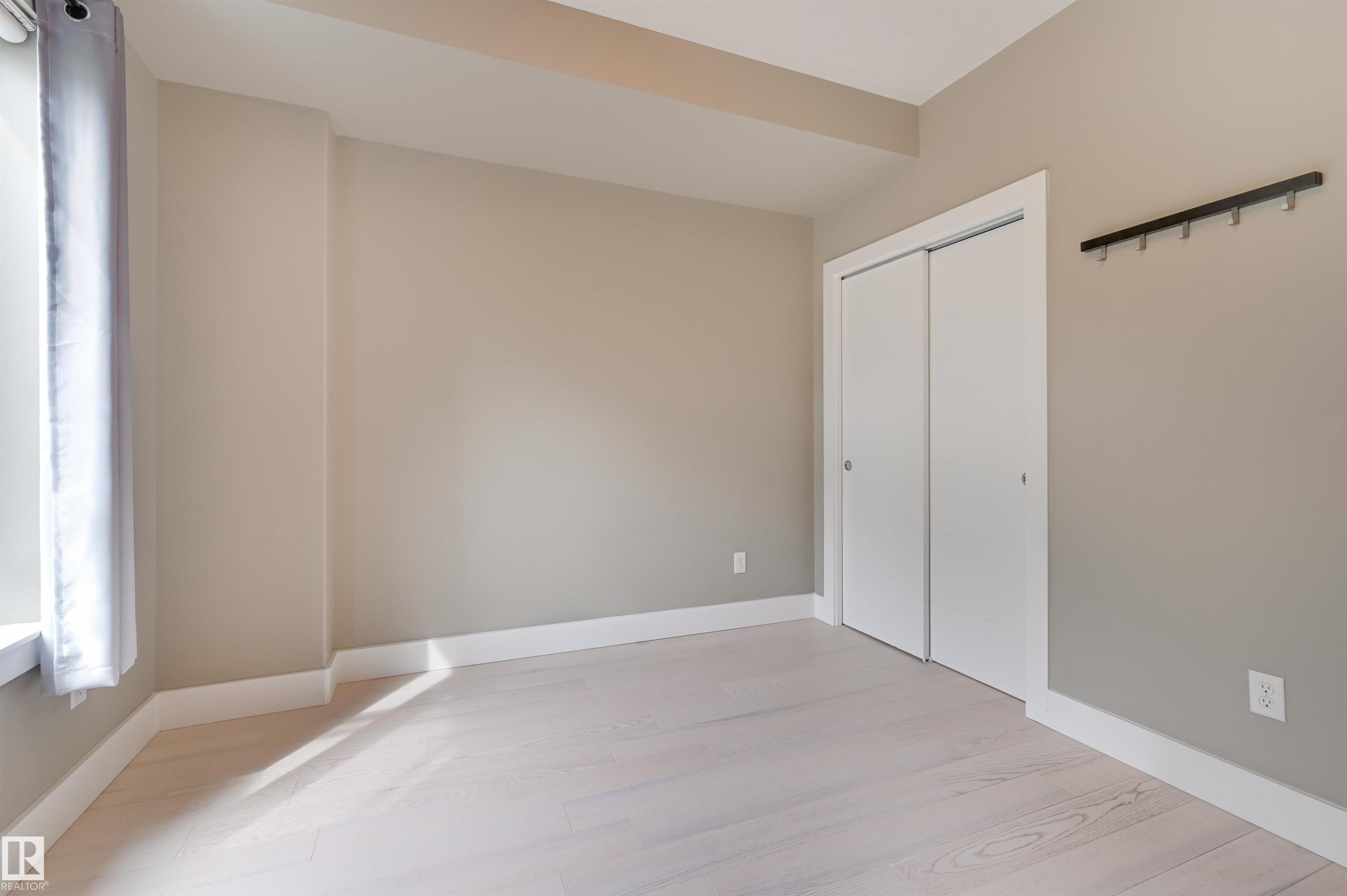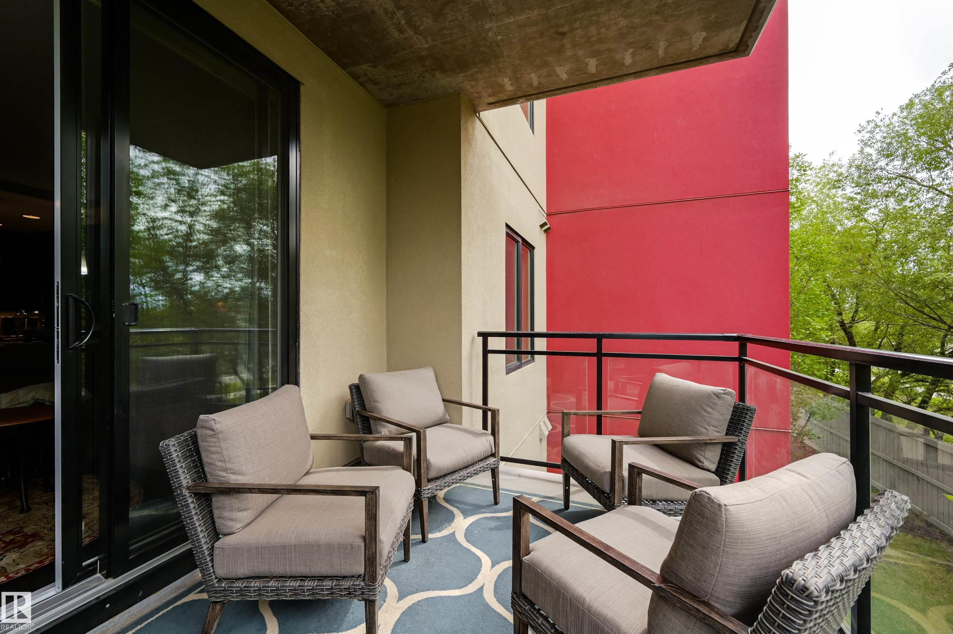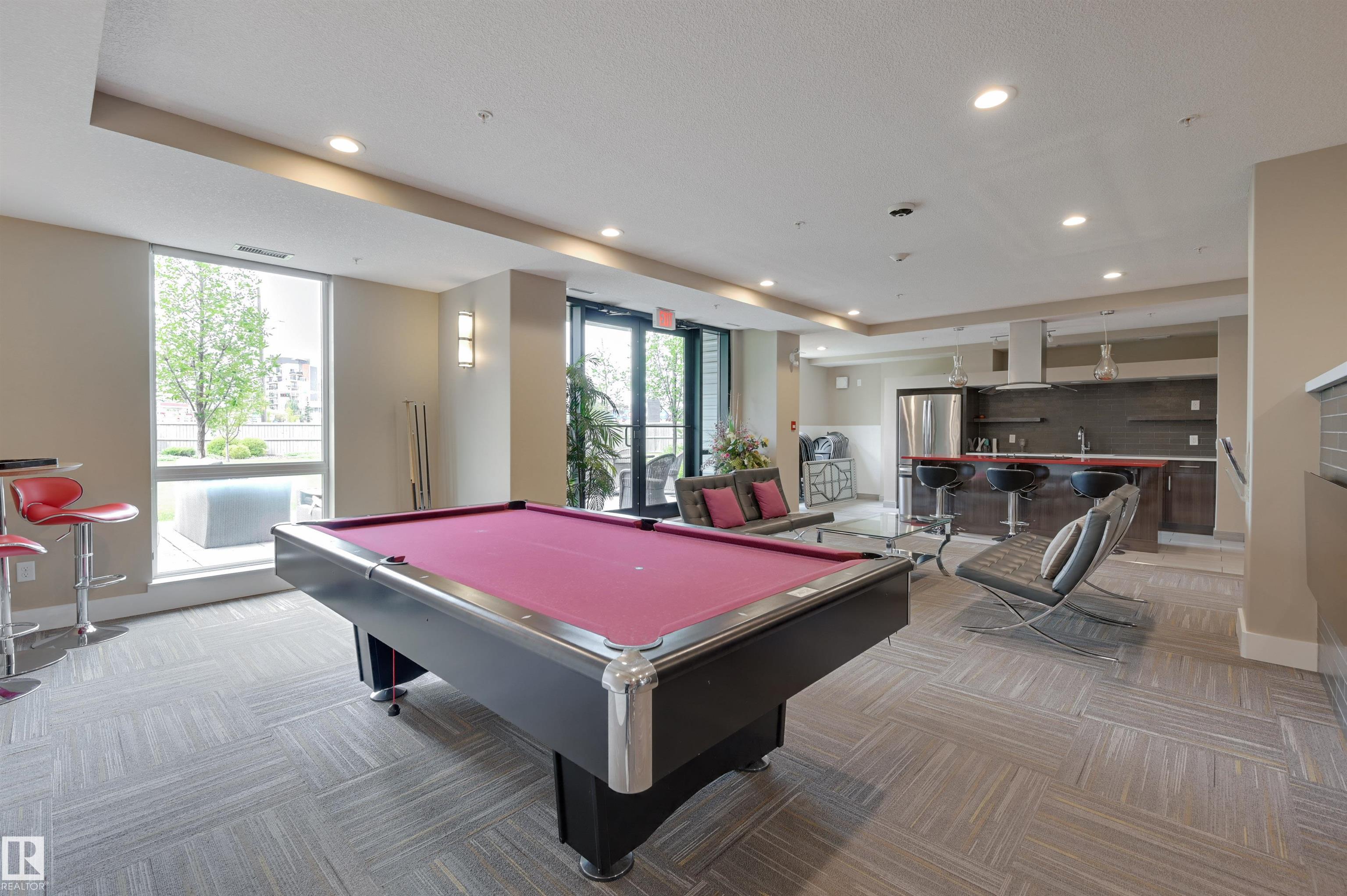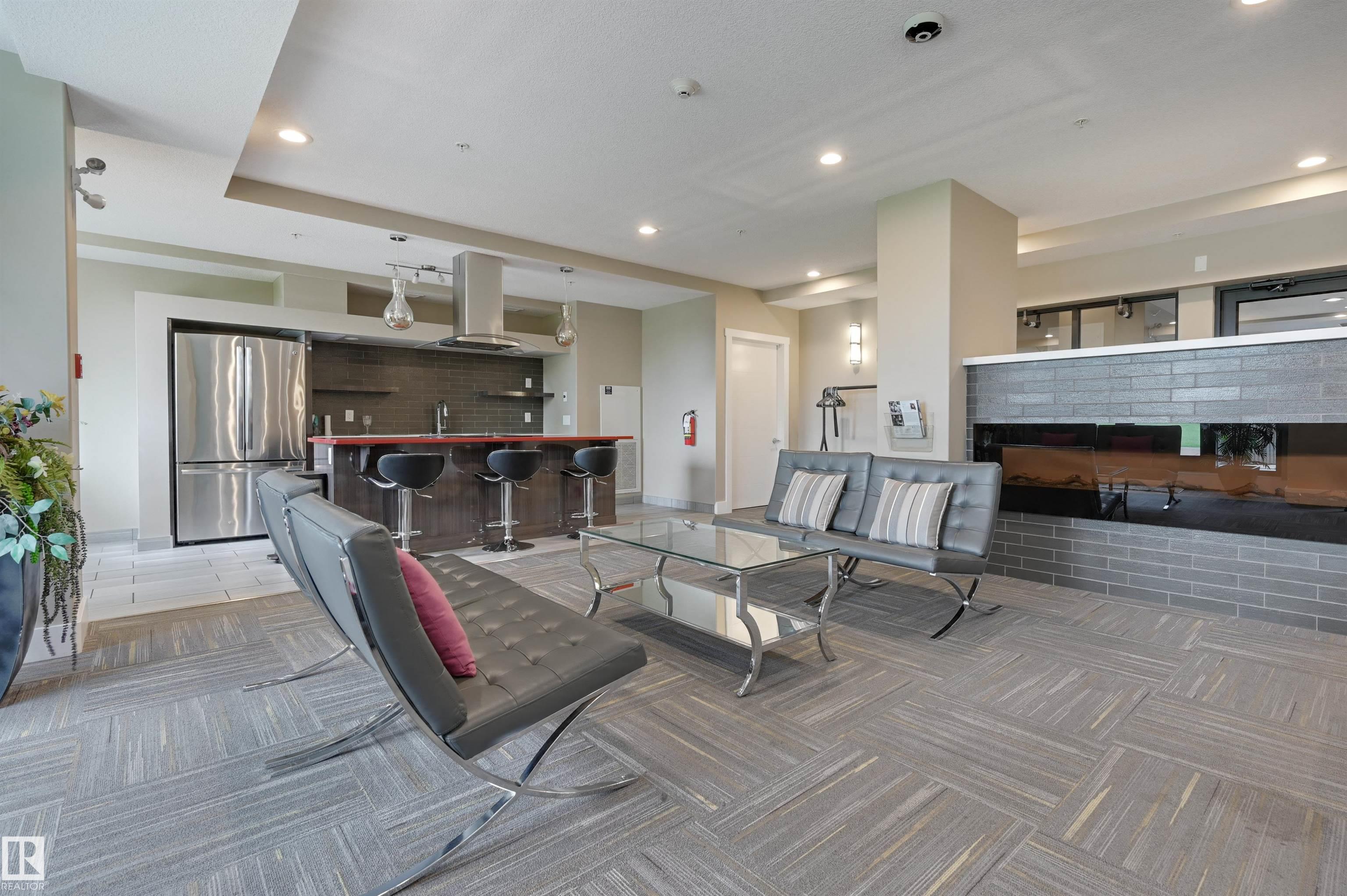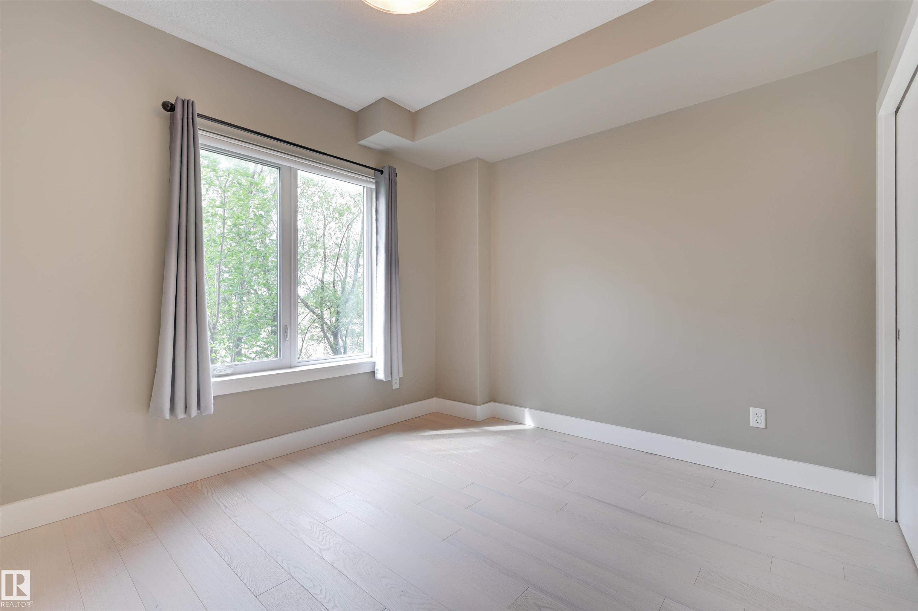 LIKE NEW! Stylish 2 Bed, 2 Bath Condo in the E'SCAPES Building. Welcome to upscale living in one of South Edmonton's most sought-after concrete buildings. This meticulously maintained 2nd-floor unit features a modern open-concept layout with engineered hardwood flooring, granite countertops, full-height cabinetry, high ceilings, & in-suite laundry. The kitchen includes a peninsula with bar seating, S/S appliances, & tons of cabinetry. The spacious primary bedroom offers a walk-through closet & a private 4-piece ensuite, while the second bedroom is ideally situated next to a full bathroom--great for guests or a home office. Enjoy natural light through the large patio doors leading to a balcony surrounded by trees for added privacy. TWO titled heated underground parking stalls--one conveniently located close to the elevator! Enjoy premium amenities: a fully equipped fitness centre, social lounge with pool table & TWO rooftop patios. Unbeatable location-- shopping, dining, parks, trails, & quick to Henday.
