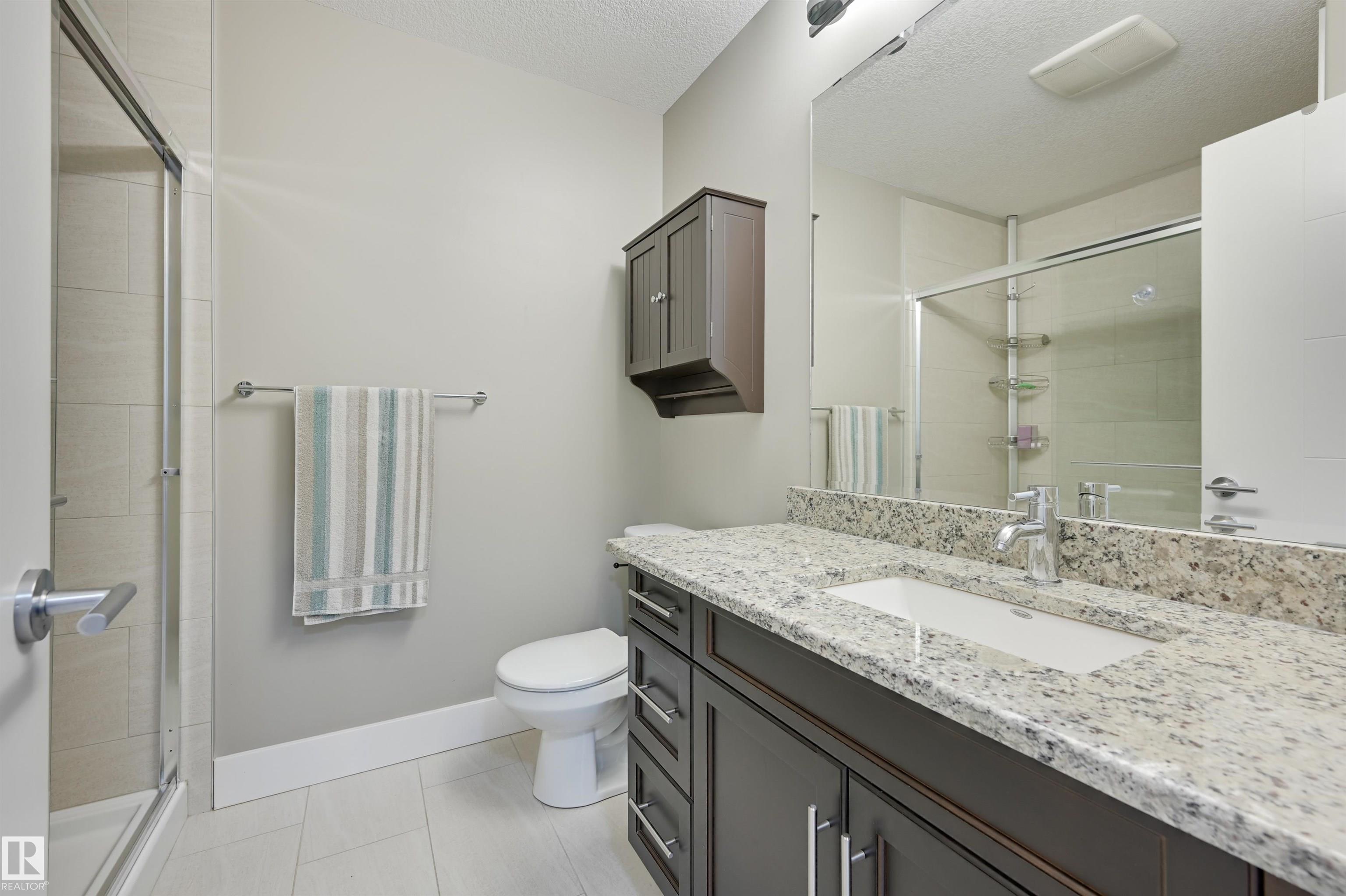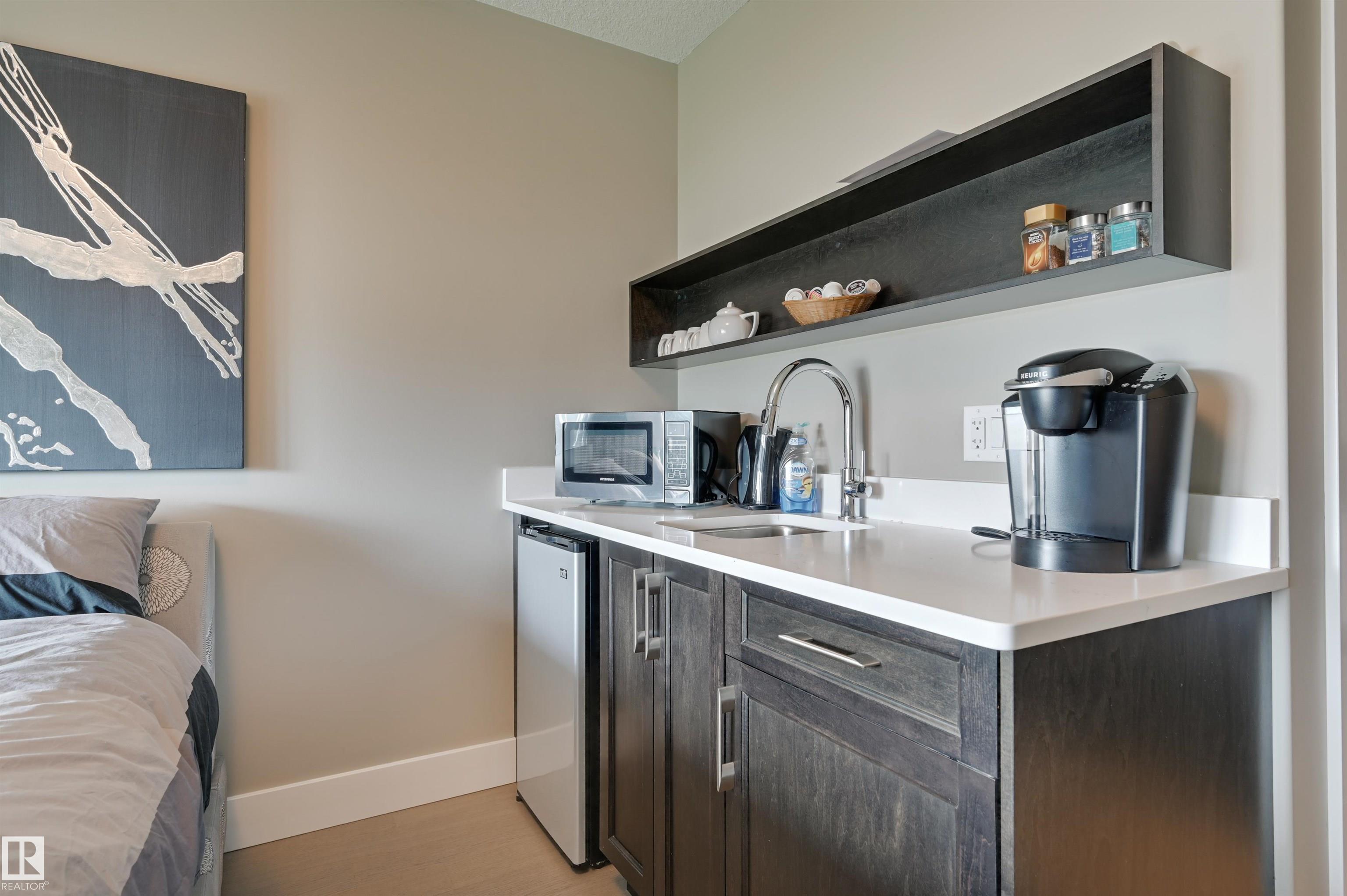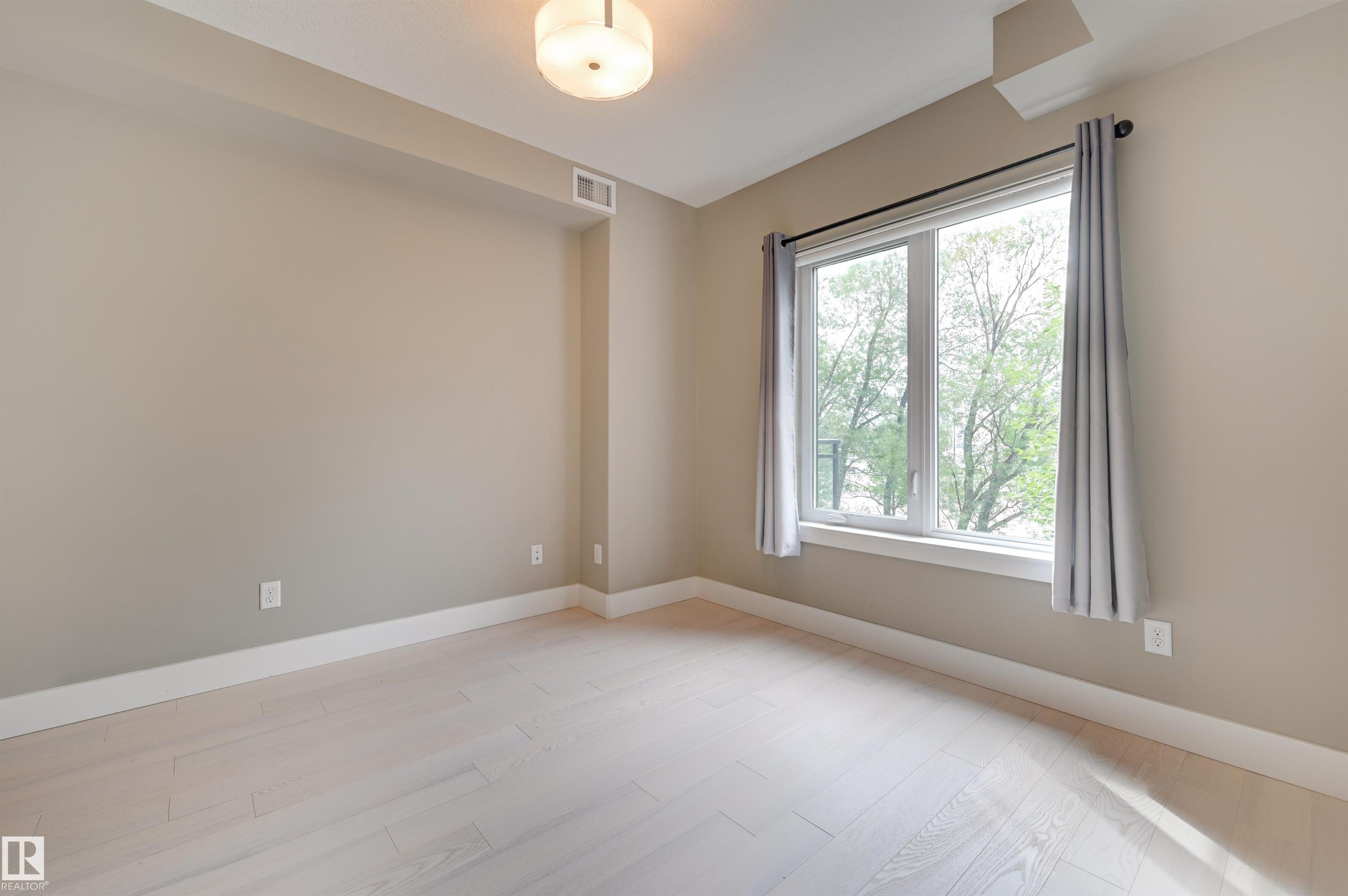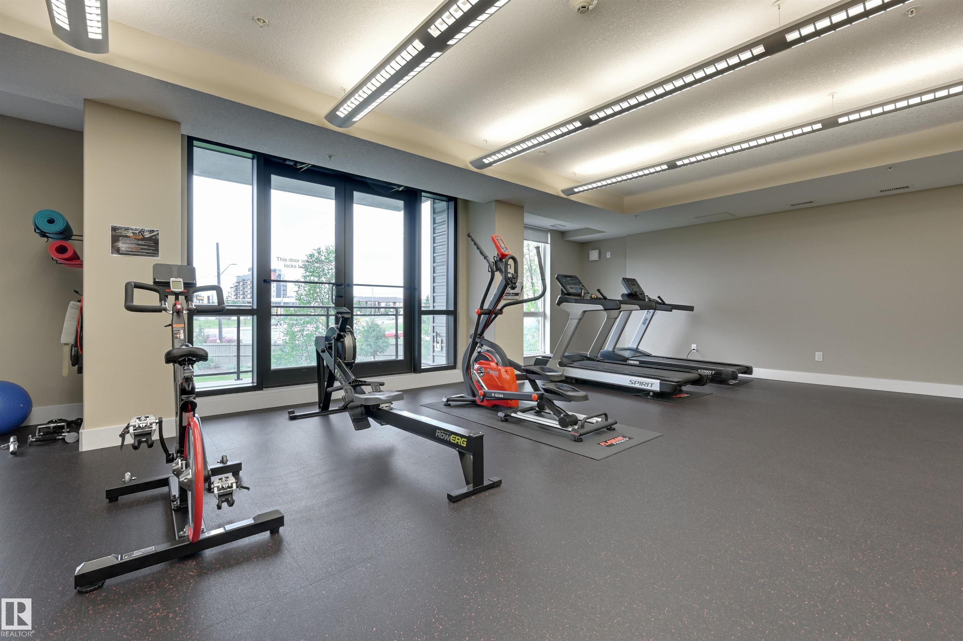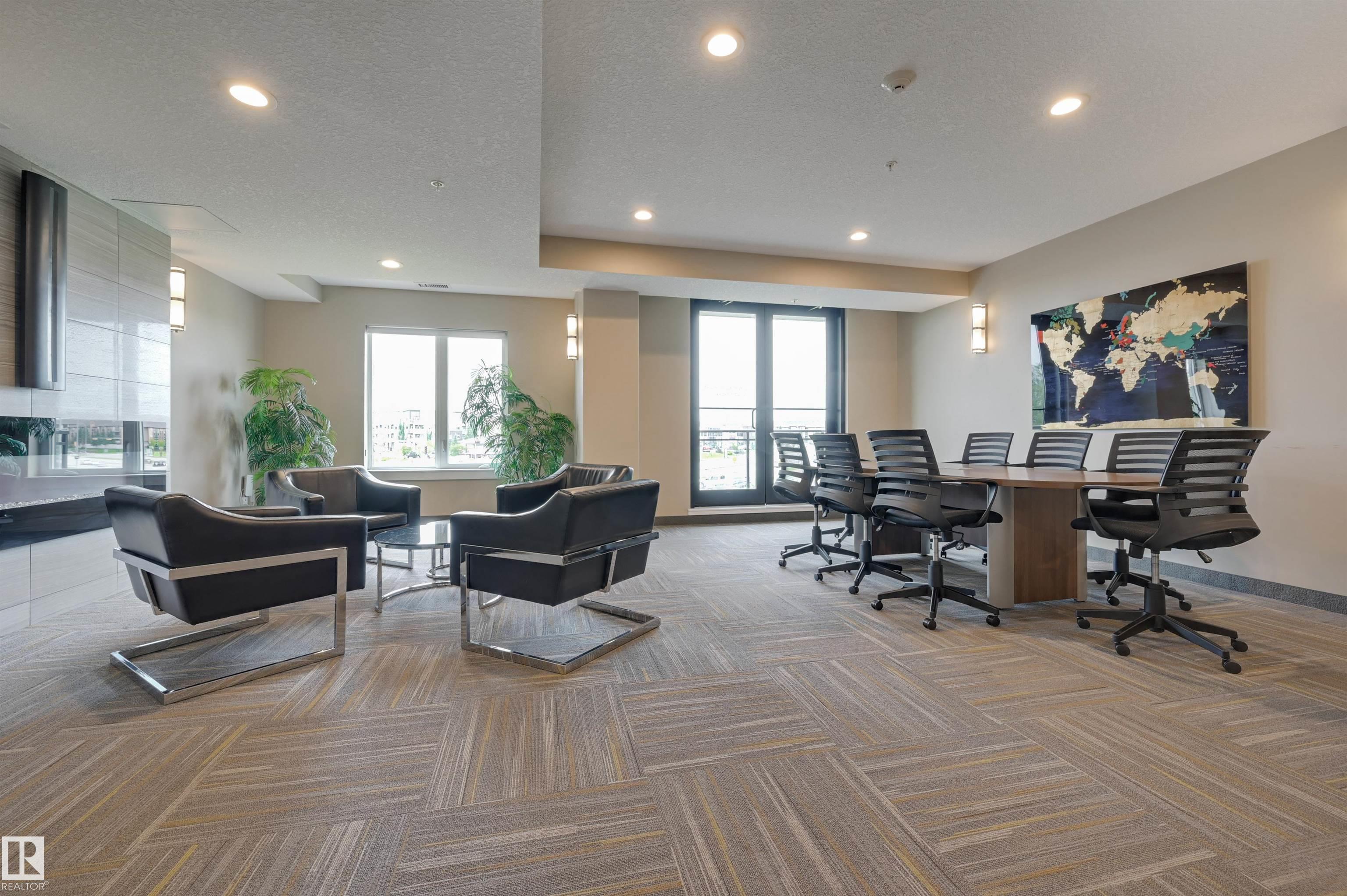 LIKE NEW! Stylish 2 Bed, 2 Bath Condo in the E'SCAPES Building. Welcome to upscale living in one of South Edmonton's most sought-after concrete buildings. This meticulously maintained 2nd-floor unit features a modern open-concept layout with engineered hardwood flooring, granite countertops, full-height cabinetry, high ceilings, & in-suite laundry. The kitchen includes a peninsula with bar seating, S/S appliances, & tons of cabinetry. The spacious primary bedroom offers a walk-through closet & a private 4-piece ensuite, while the second bedroom is ideally situated next to a full bathroom--great for guests or a home office. Enjoy natural light through the large patio doors leading to a balcony surrounded by trees for added privacy. TWO titled heated underground parking stalls--one conveniently located close to the elevator! Enjoy premium amenities: a fully equipped fitness centre, social lounge with pool table & TWO rooftop patios. Unbeatable location-- shopping, dining, parks, trails, & quick to Henday.