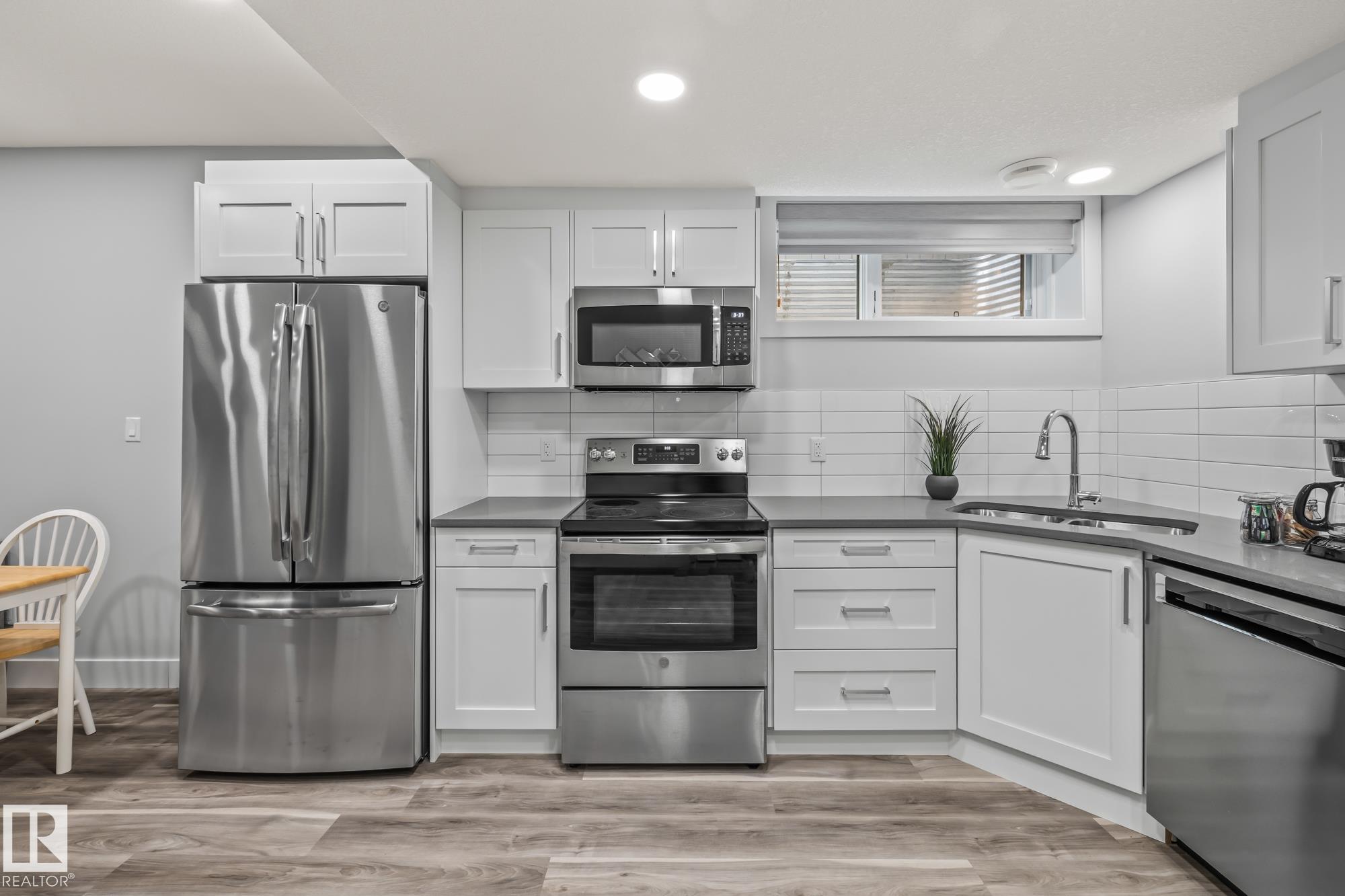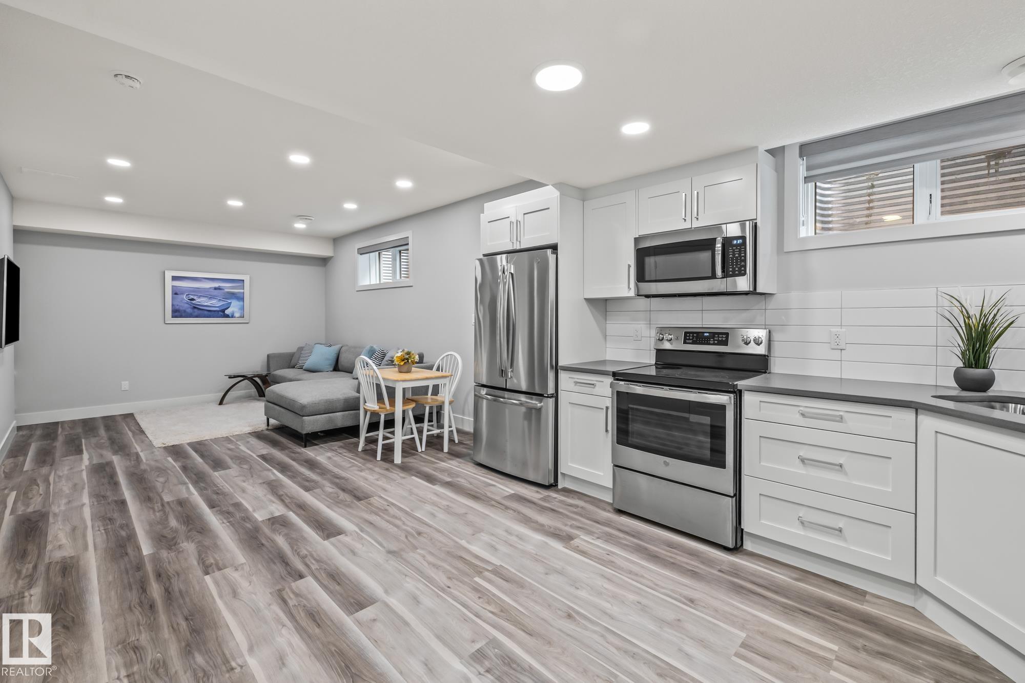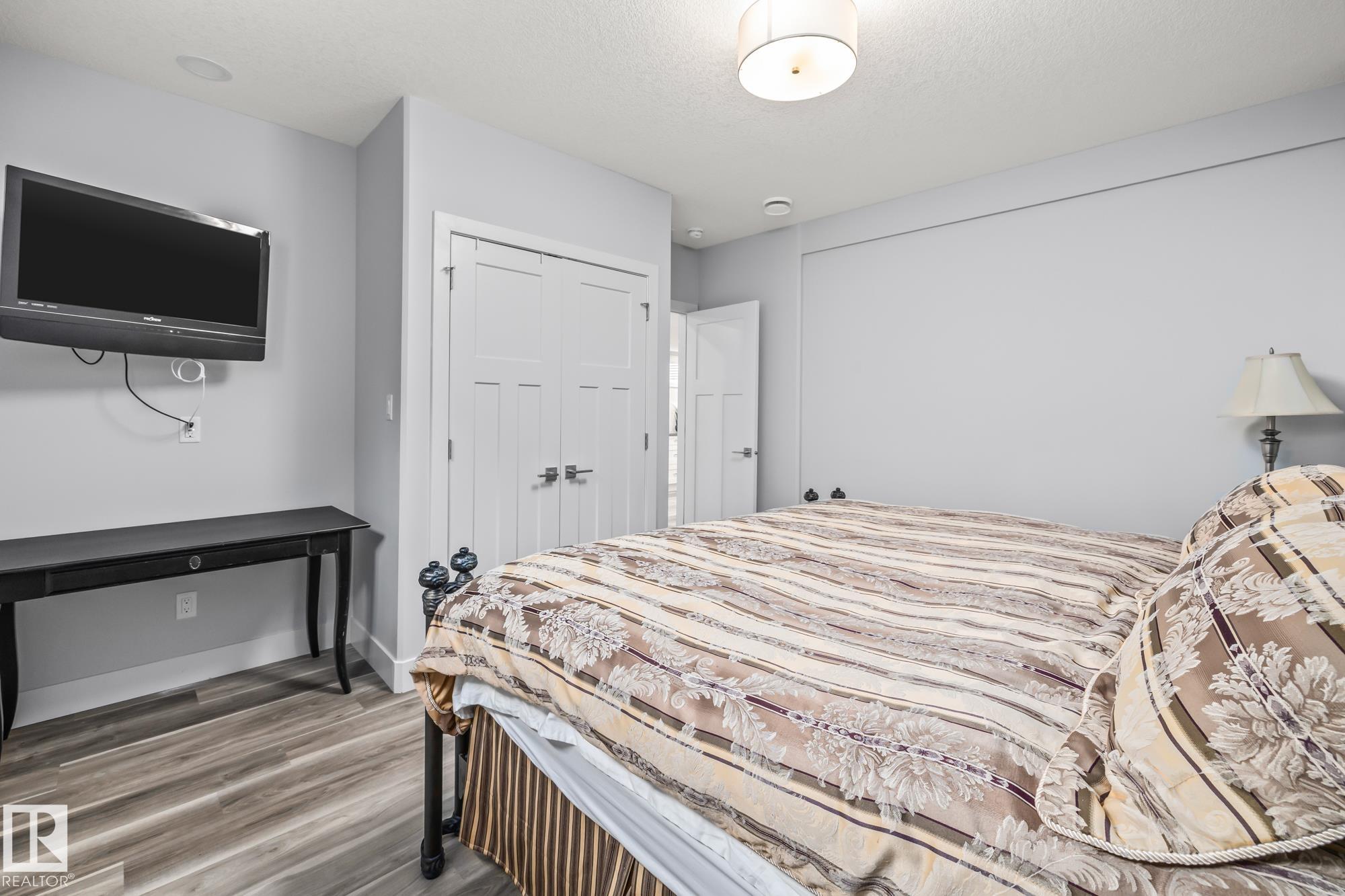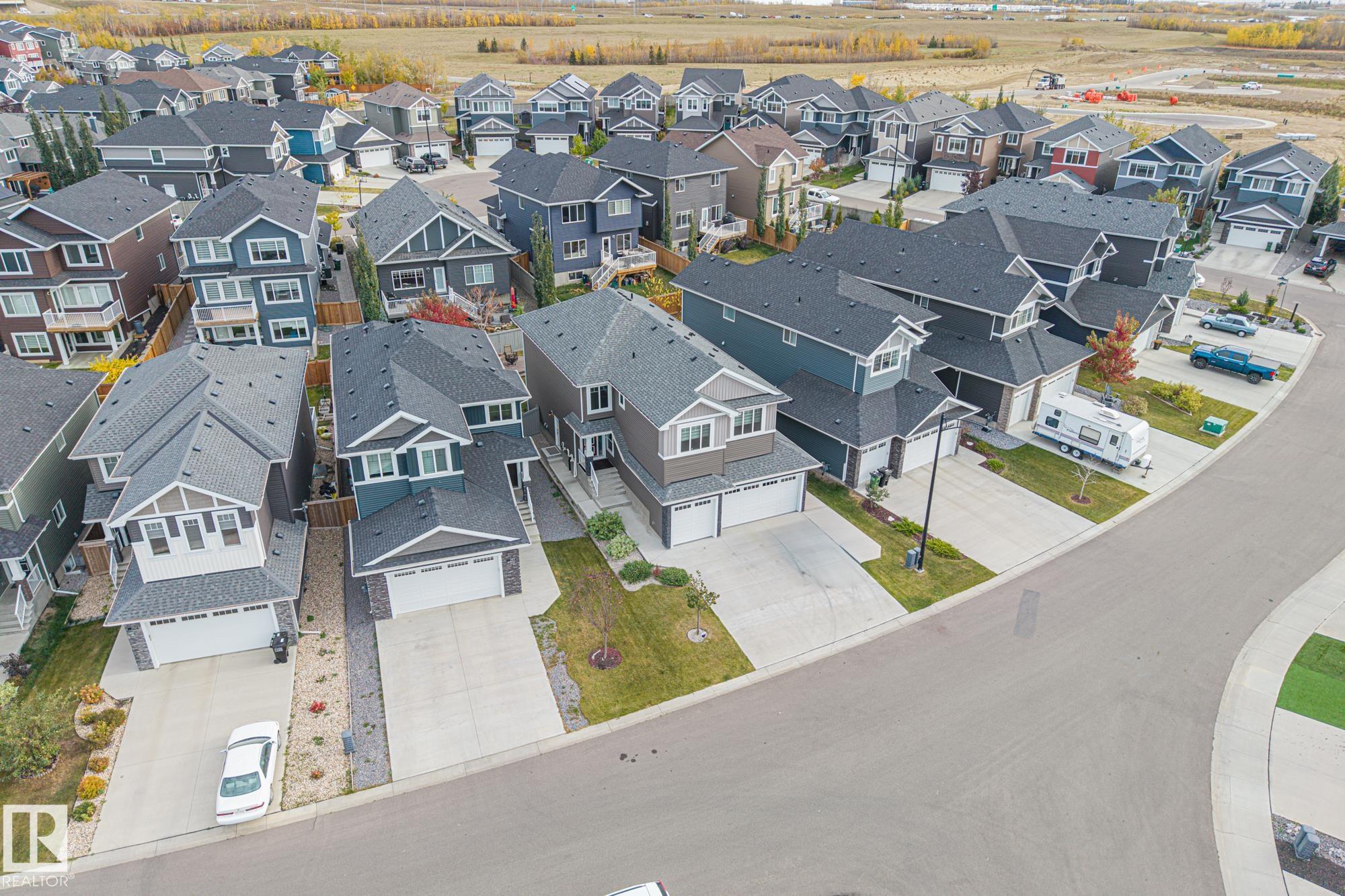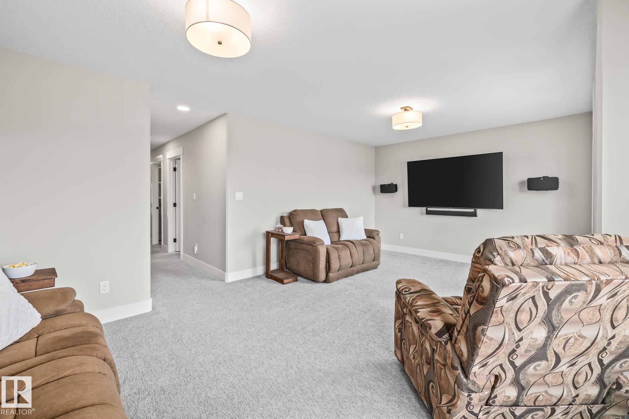 This stunning, upgraded home shows better than new! With nearly 2,400 sq ft, a triple garage, and a fully finished legal-suite basement, this property offers incredible flexibility. The main floor features a front den/office, 2-pc bath, and a two-storey great room with a floor-to-ceiling stone fireplace. The chef's kitchen includes quartz countertops, a large island, white cabinetry, and a walk-through pantry leading to a custom mudroom. A newly added 3-season room extends the living space and offers the perfect spot to relax. Upstairs, the spacious primary suite has a 5-pc ensuite, walk-in closet, and access to the second-floor laundry. Two additional bedrooms, a 4-pc bath, and a large bonus room complete the level. The basement includes a legal suite with a kitchen, living area, 4th bedroom, and 3-pc bath. Finished with A/C, landscaped yard.