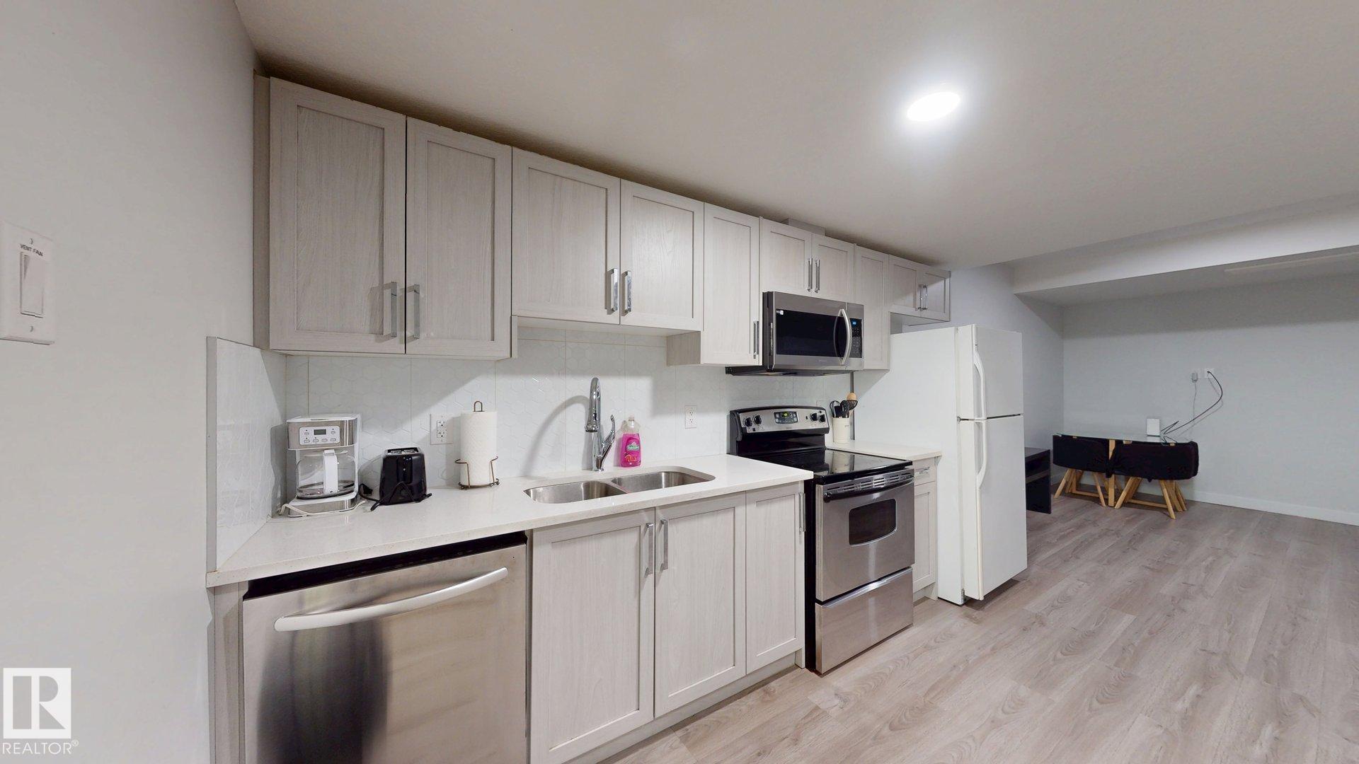 Amazing opportunity in a quiet cul-de-sac backing onto a picturesque ravine! This beautifully designed 4-bedroom, 3.5-bath home with a legal basement suite offers exceptional value and flexibility. Step inside to soaring 9-ft ceilings, modern vinyl flooring, and an inviting open-concept layout. The chef-inspired kitchen impresses with quartz countertops, a large island, stainless steel appliances, tall upper cabinets, and a convenient corner pantry. The upper level offers a bright bonus room, laundry, a full bath, and 3 spacious bedrooms including the primary retreat featuring a walk-in closet and a spa-like 5-piece ensuite. The fully finished legal suite below provides a family room, bedroom, full bath, and private entrance--ideal for guests or rental income. Enjoy the peace of ravine living while being minutes from schools, trails, shopping, and major amenities. Stylish, functional, and move-in ready--this one checks all the boxes!