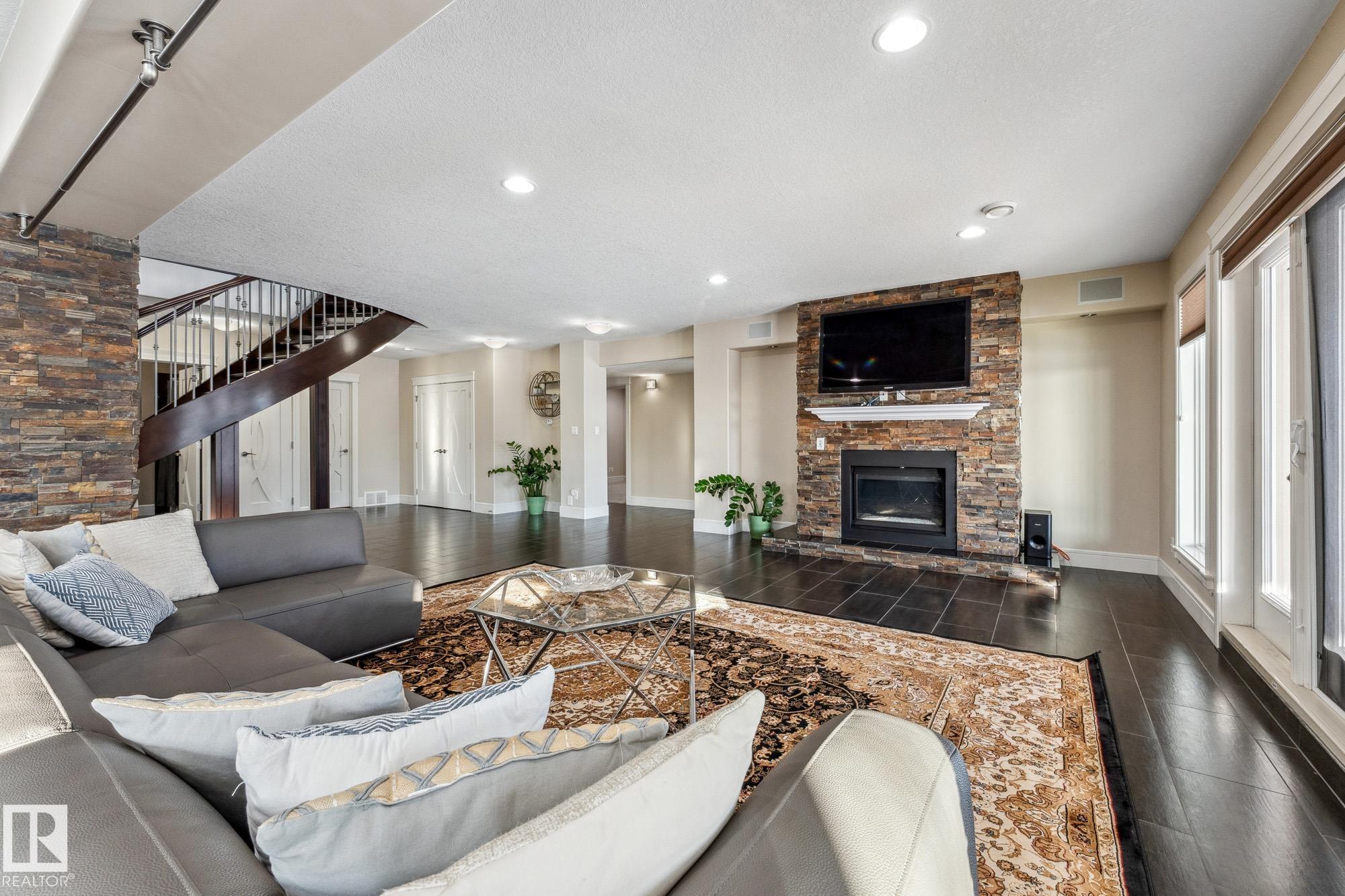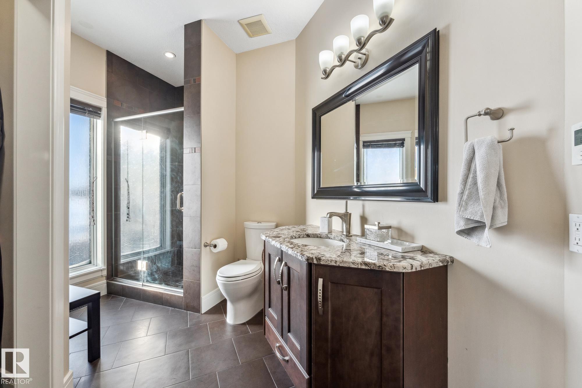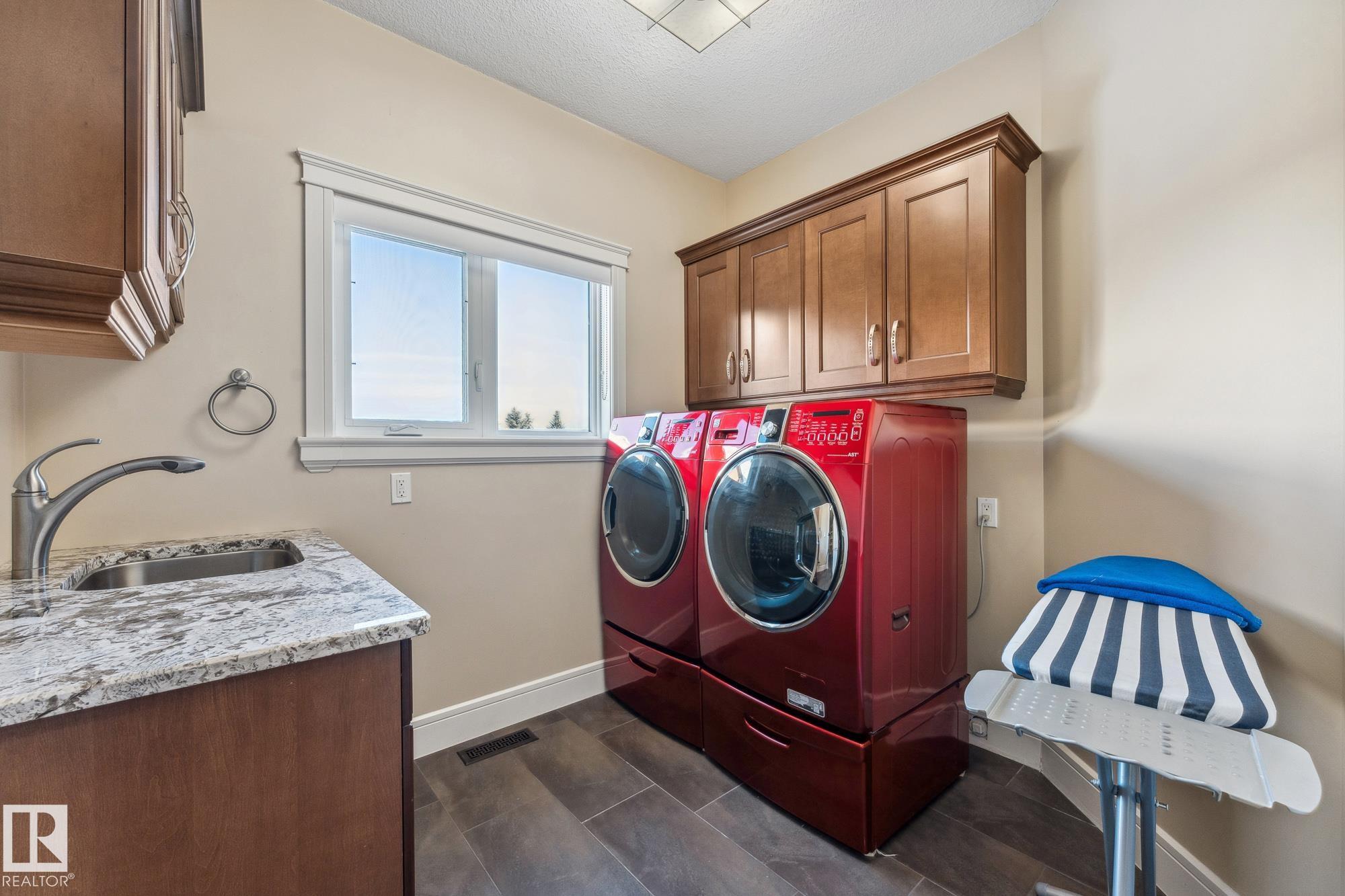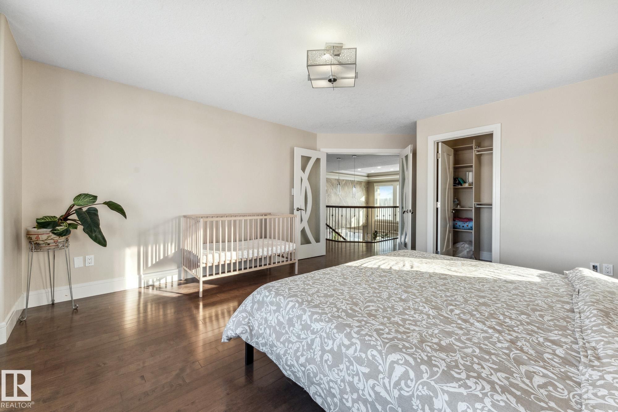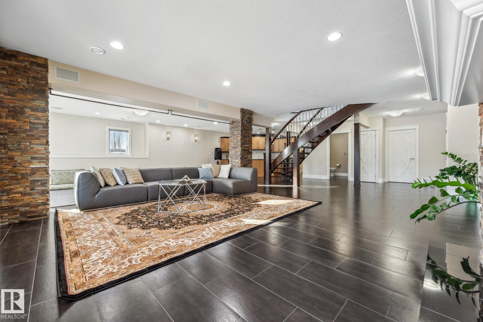 Nestled on a half-acre lot less than 5 minutes from Edmonton, this 6 bed, 7 bath home offers over 4,000 square feet of elegance and luxury! The gourmet kitchen features granite countertops, gas cooktop and double islands. Access the deck off the kitchen or the main floor bedroom, complete with a walk in closet and ensuite. A sitting area, formal dining, walk thru pantry and laundry room finish the main floor. Upstairs features a bonus room, 2 bedrooms and a 4 piece bath. The primary suite is a private retreat with a luxurious en-suite including a jacuzzi tub, dual vanities, and a spacious walk-in closet. The walkout basement is perfect for entertaining with over 2000 sq ft, a wet bar, fireplace and two bedrooms. The attached 4 car garage features in floor heat and one bay is equipped with a second kitchen, garage door screen and a 3 piece bathroom. Municipal water and sewer. Located close to Edmonton and St Albert. Country living with city amenities!