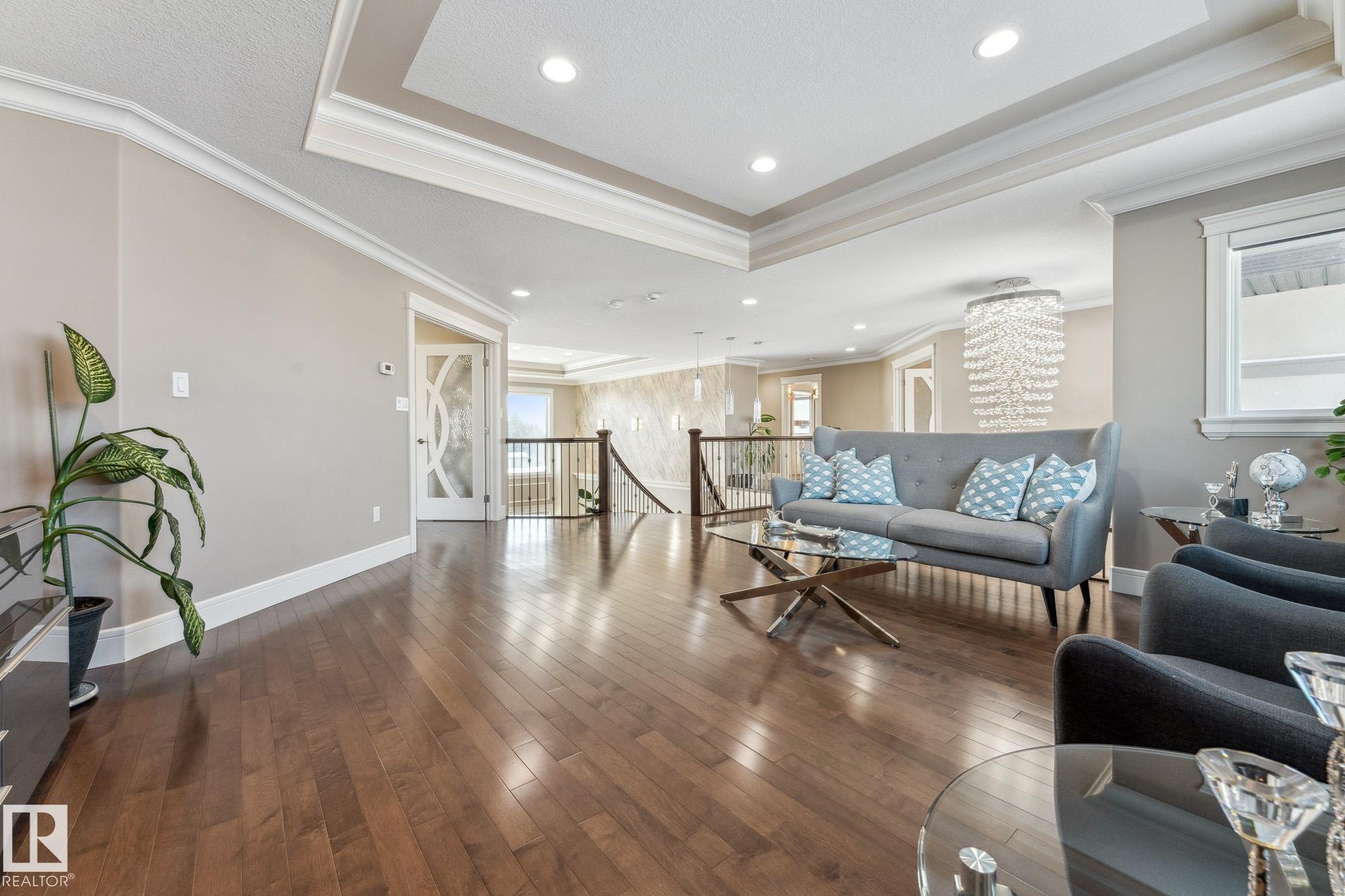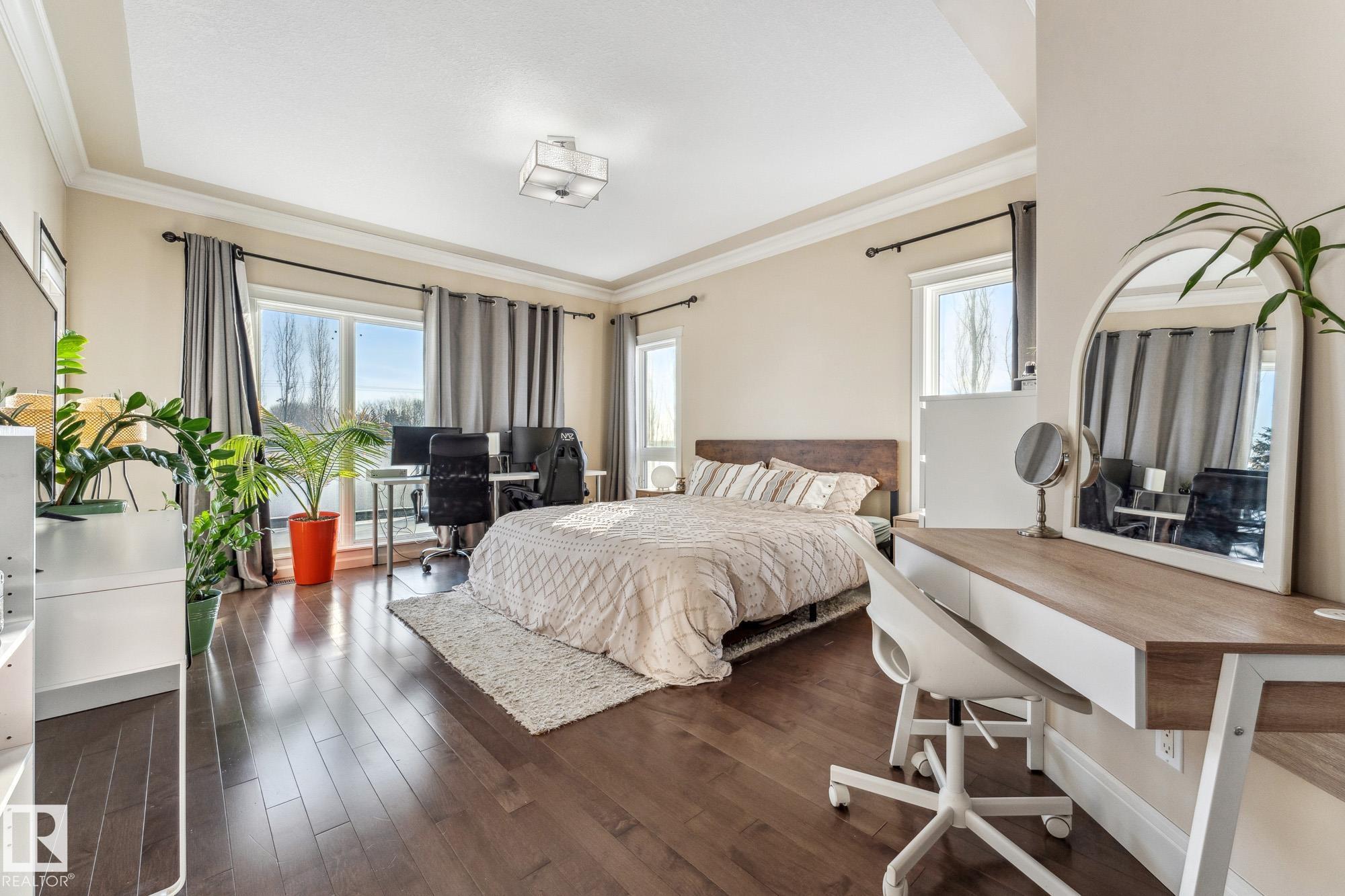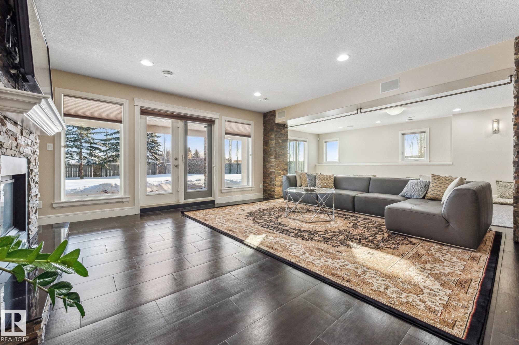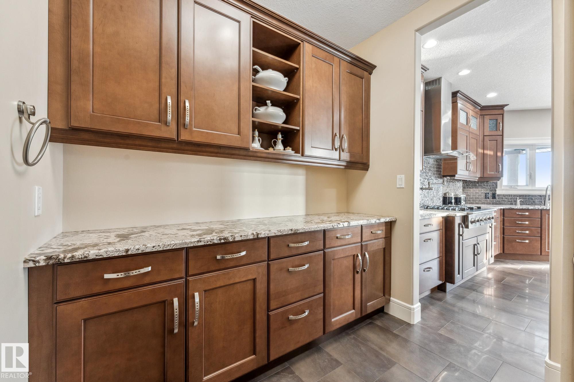 Nestled on a half-acre lot less than 5 minutes from Edmonton, this 6 bed, 7 bath home offers over 4,000 square feet of elegance and luxury! The gourmet kitchen features granite countertops, gas cooktop and double islands. Access the deck off the kitchen or the main floor bedroom, complete with a walk in closet and ensuite. A sitting area, formal dining, walk thru pantry and laundry room finish the main floor. Upstairs features a bonus room, 2 bedrooms and a 4 piece bath. The primary suite is a private retreat with a luxurious en-suite including a jacuzzi tub, dual vanities, and a spacious walk-in closet. The walkout basement is perfect for entertaining with over 2000 sq ft, a wet bar, fireplace and two bedrooms. The attached 4 car garage features in floor heat and one bay is equipped with a second kitchen, garage door screen and a 3 piece bathroom. Municipal water and sewer. Located close to Edmonton and St Albert. Country living with city amenities!