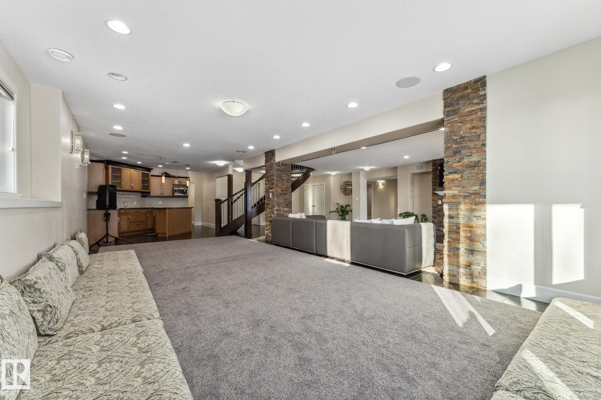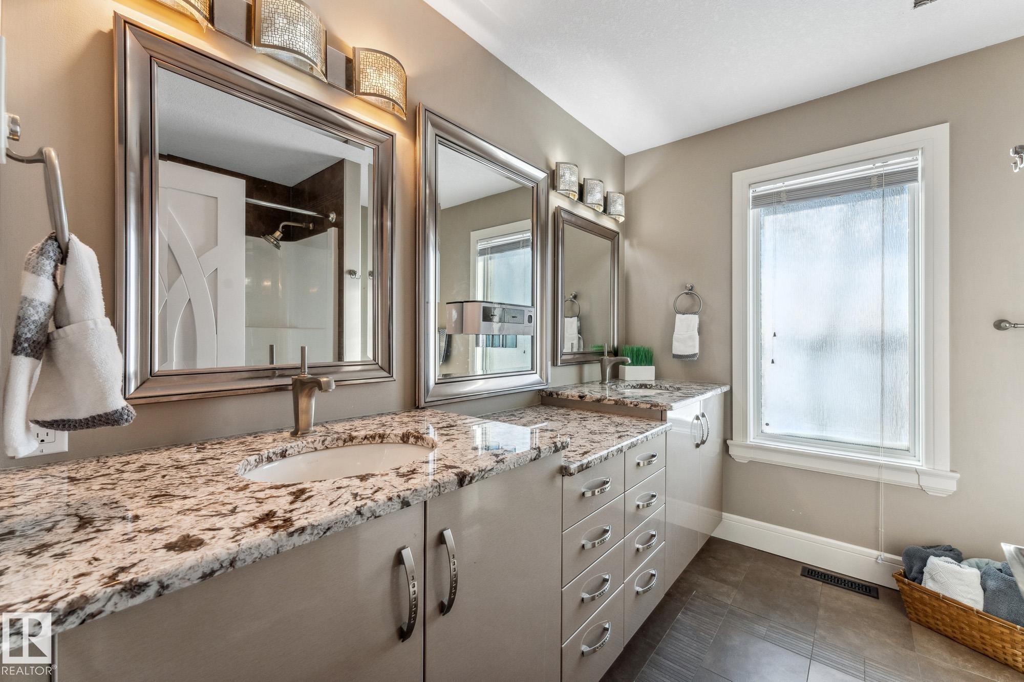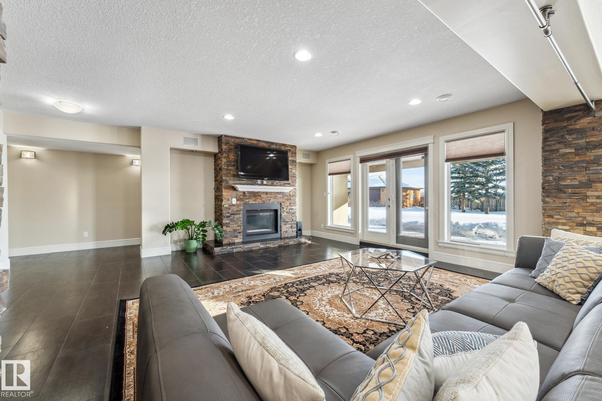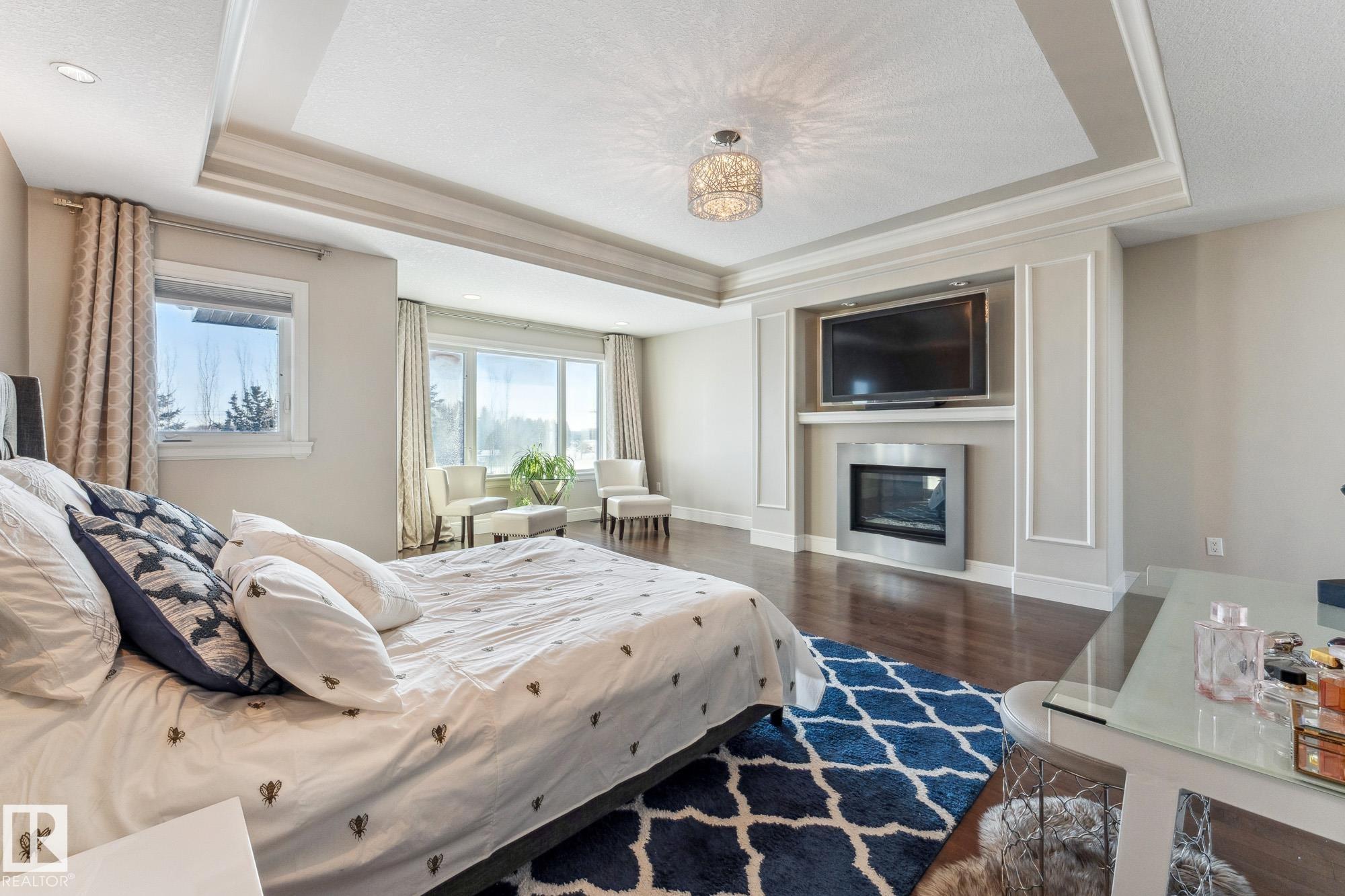 Nestled on a half-acre lot less than 5 minutes from Edmonton, this 6 bed, 7 bath home offers over 4,000 square feet of elegance and luxury! The gourmet kitchen features granite countertops, gas cooktop and double islands. Access the deck off the kitchen or the main floor bedroom, complete with a walk in closet and ensuite. A sitting area, formal dining, walk thru pantry and laundry room finish the main floor. Upstairs features a bonus room, 2 bedrooms and a 4 piece bath. The primary suite is a private retreat with a luxurious en-suite including a jacuzzi tub, dual vanities, and a spacious walk-in closet. The walkout basement is perfect for entertaining with over 2000 sq ft, a wet bar, fireplace and two bedrooms. The attached 4 car garage features in floor heat and one bay is equipped with a second kitchen, garage door screen and a 3 piece bathroom. Municipal water and sewer. Located close to Edmonton and St Albert. Country living with city amenities!