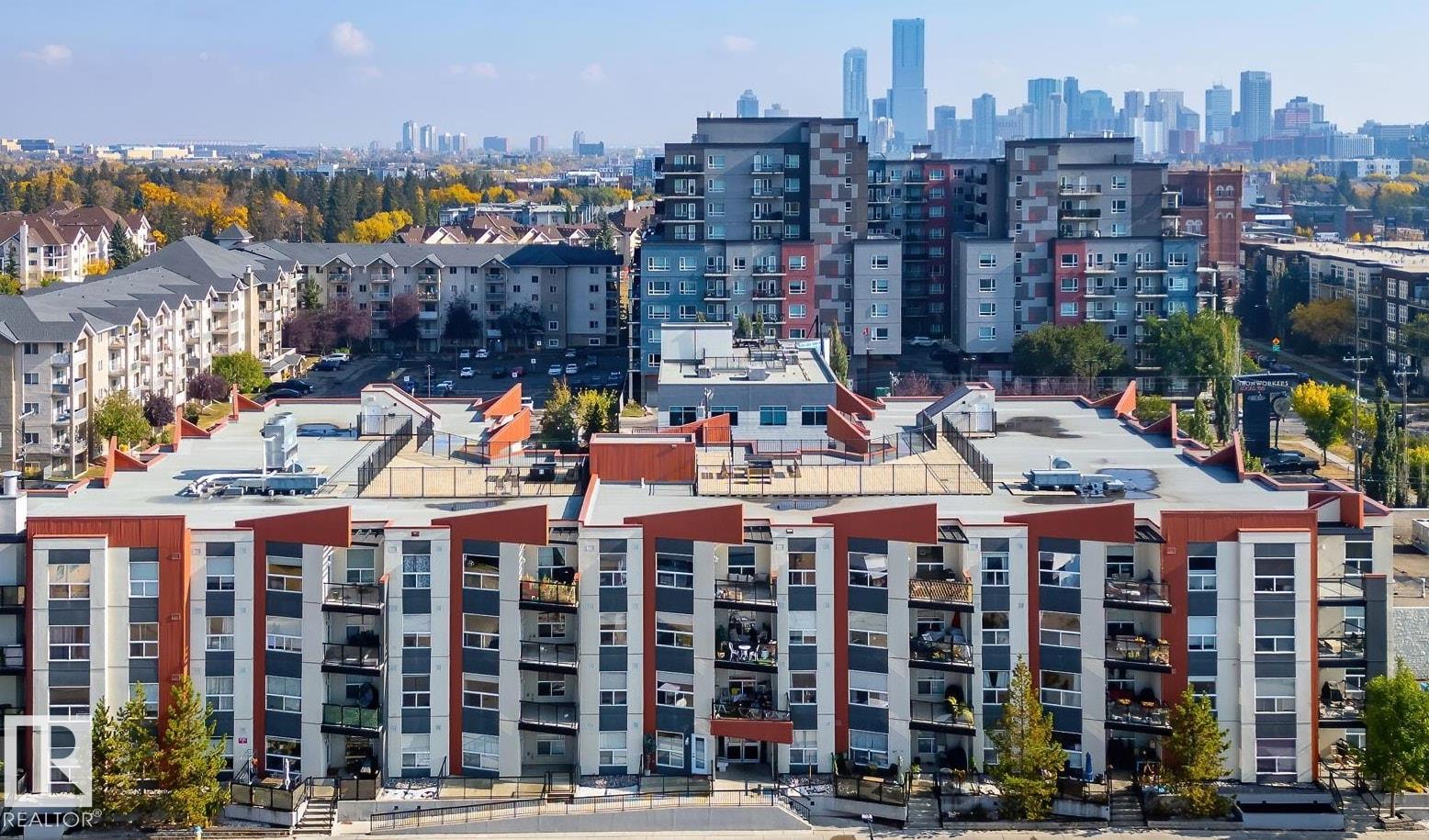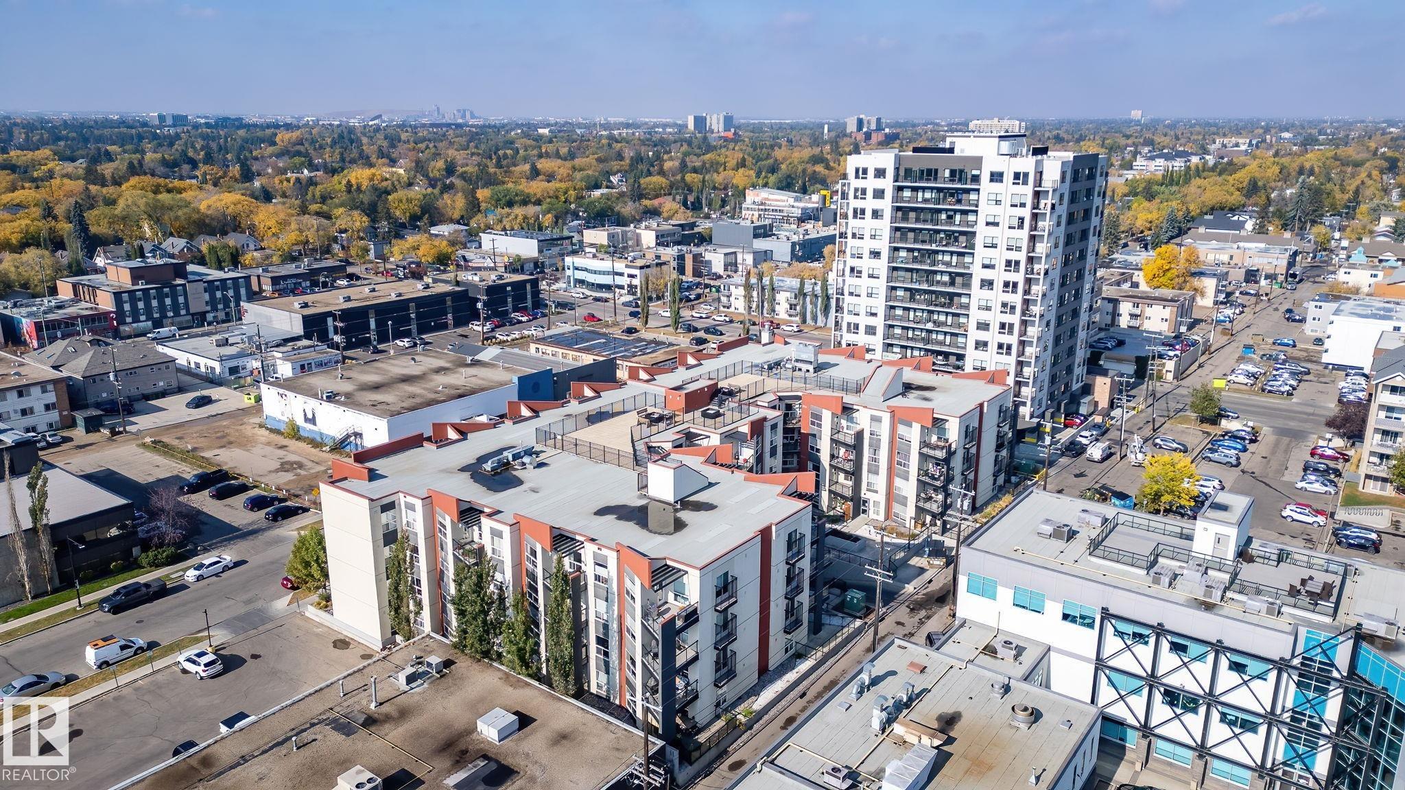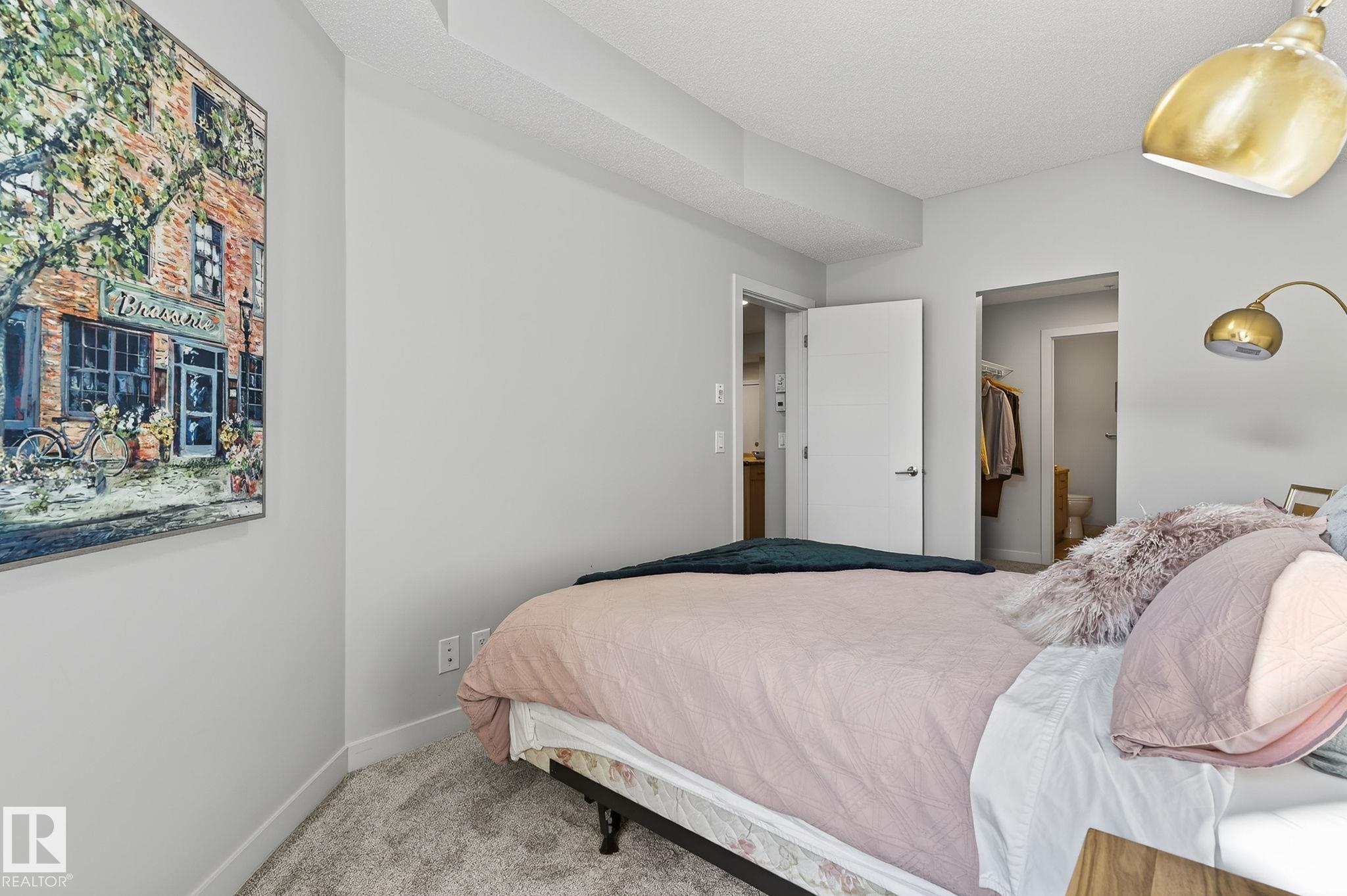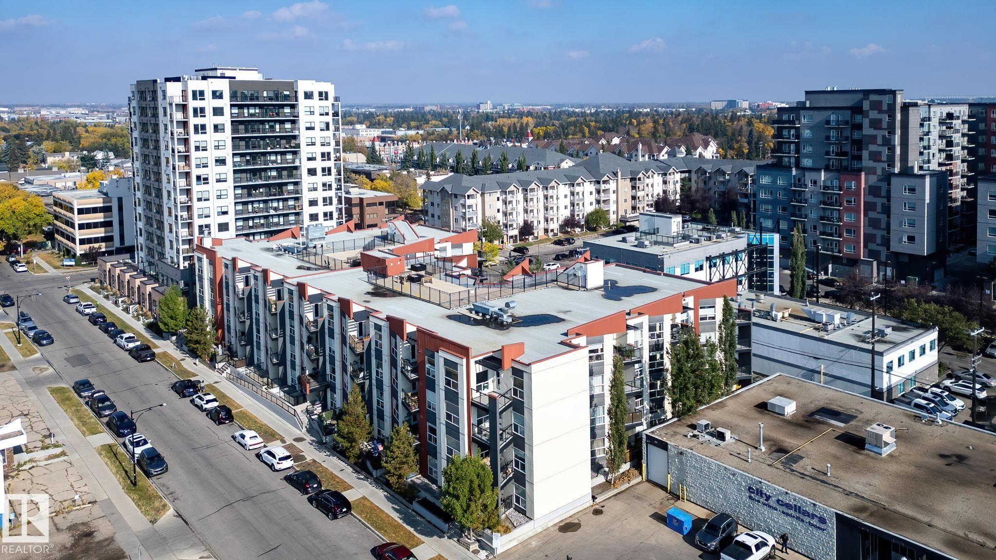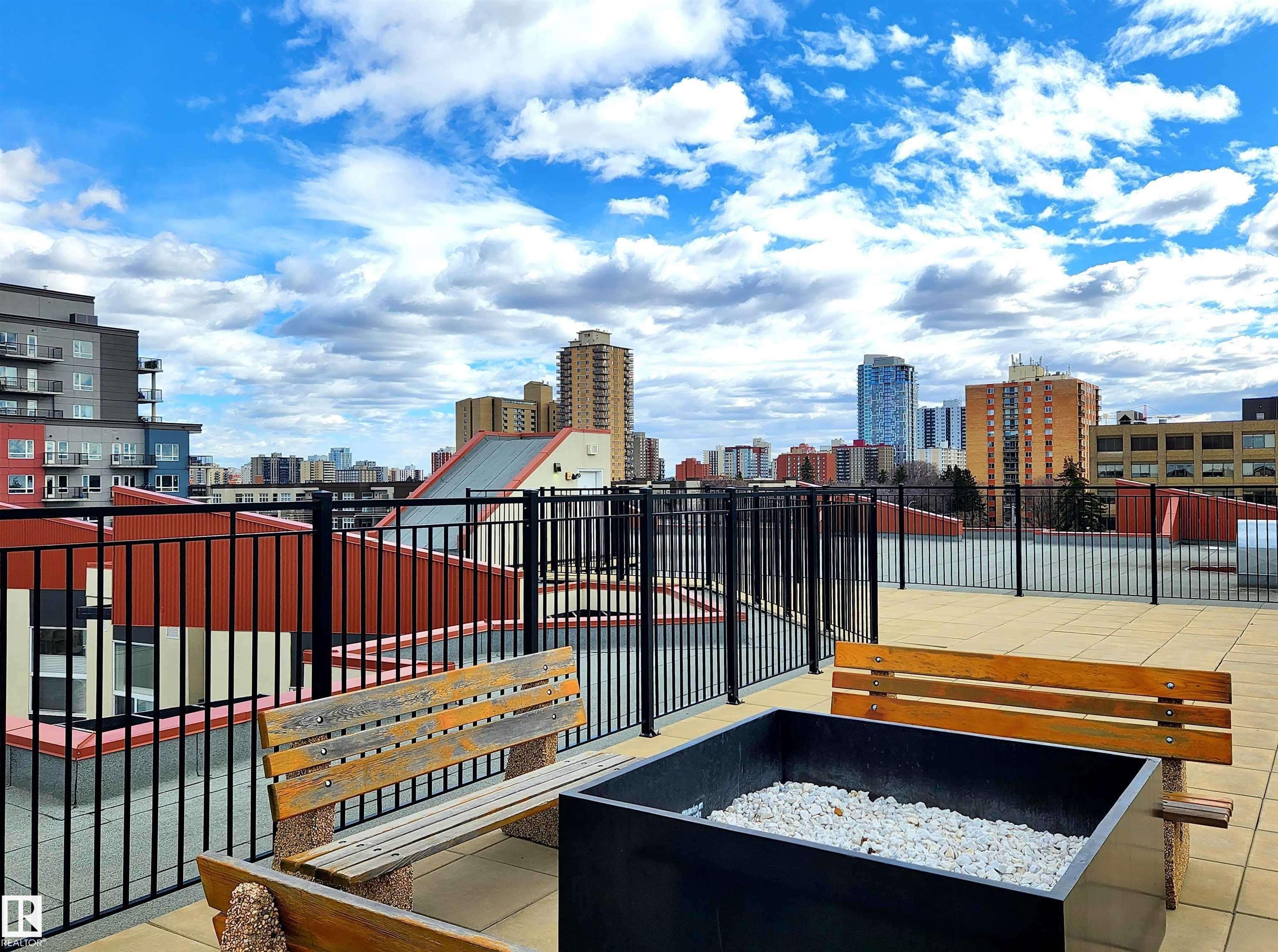 Top floor executive condo that is nestled between the vibrant High Street & the trendy Brewery District! Two bedrooms with two full baths. A hop, skip and jump or bike to your favourite coffee shops, restaurants, groceries, gym etc. 1 block from new LRT. You'd feel right at home with the great layout & relaxing ambience. New renos including contemporary paint, elegant large dark vinyl plank flooring & new carpet in master bedroom. The chef's kitchen has all new appliances except the dishwasher, beautiful tile backsplash, ample cabinets & a huge working island. Spacious living room is next to the bright & cheery dining area which has door onto the private balcony. Cozy master retreat has Pax closet organizer & a nice 4 piece ensuite. Well positioned second bedroom/den with 2 wardrobes is next to the main bath & laundry/storage. There's a stunning roof terrace with a gorgeous city view for you & your guest to enjoy year round. HVAC & A/C & gas hookup for BBQ. Secured heat underground parking stall. A 10!