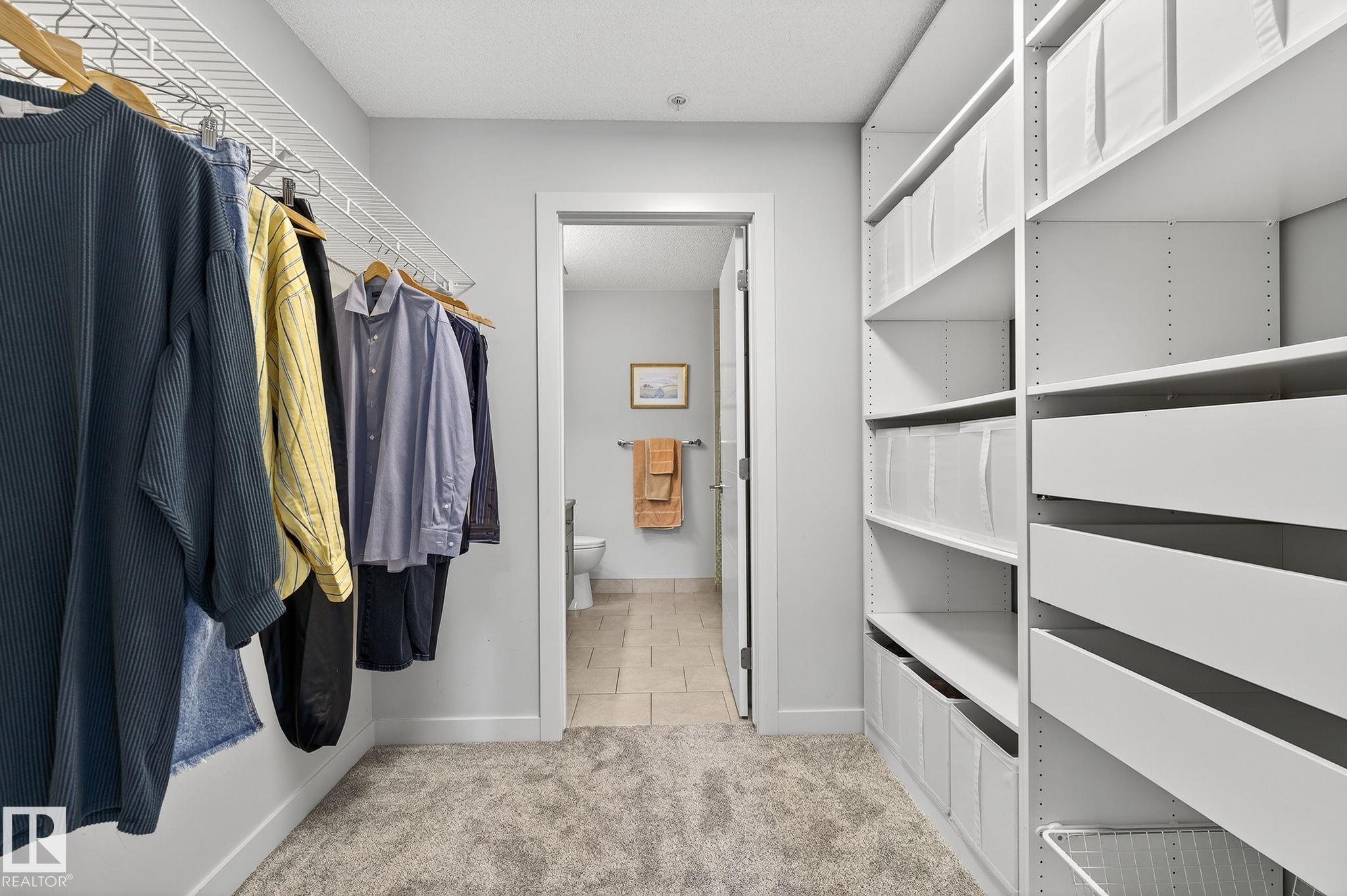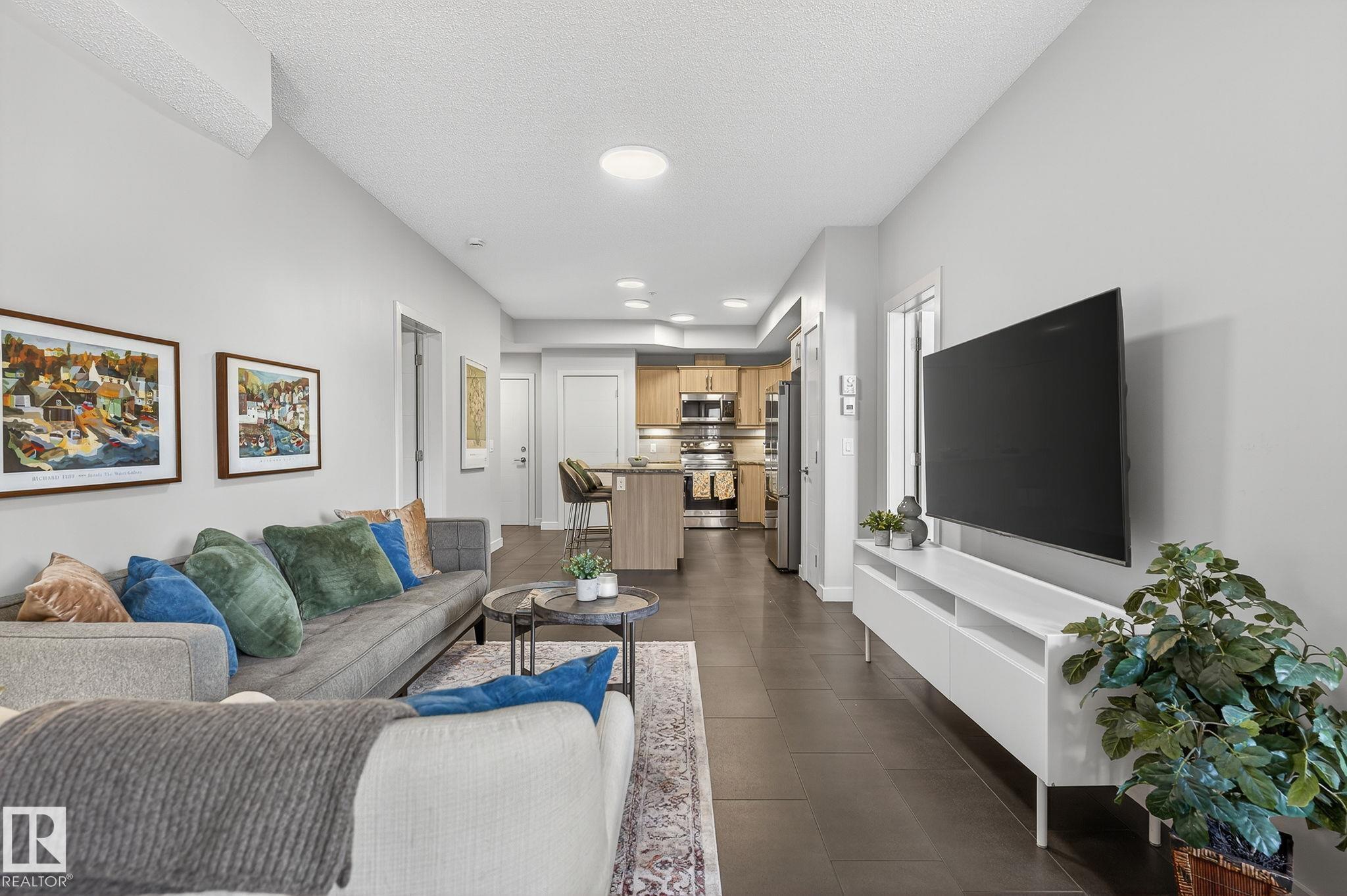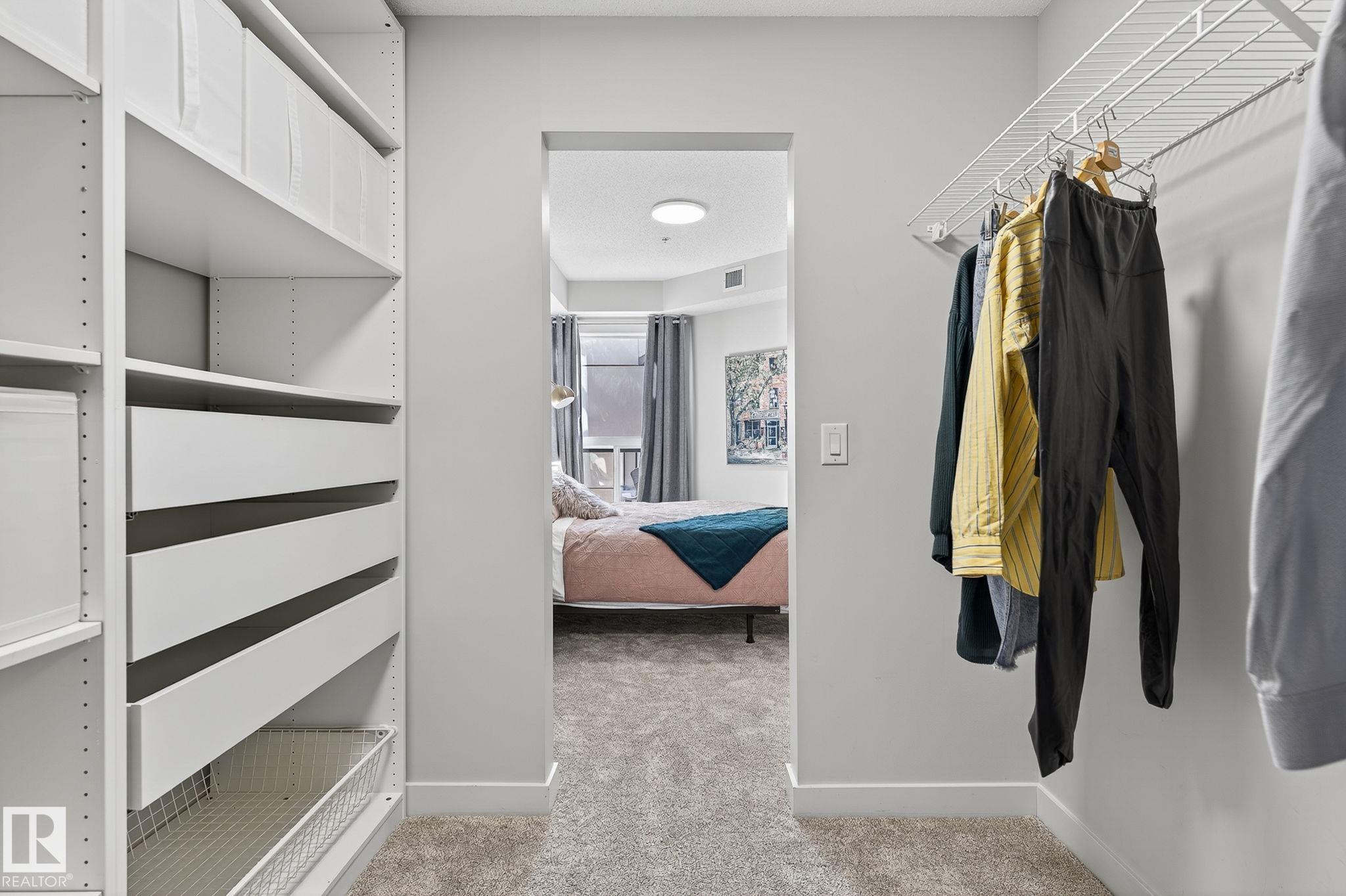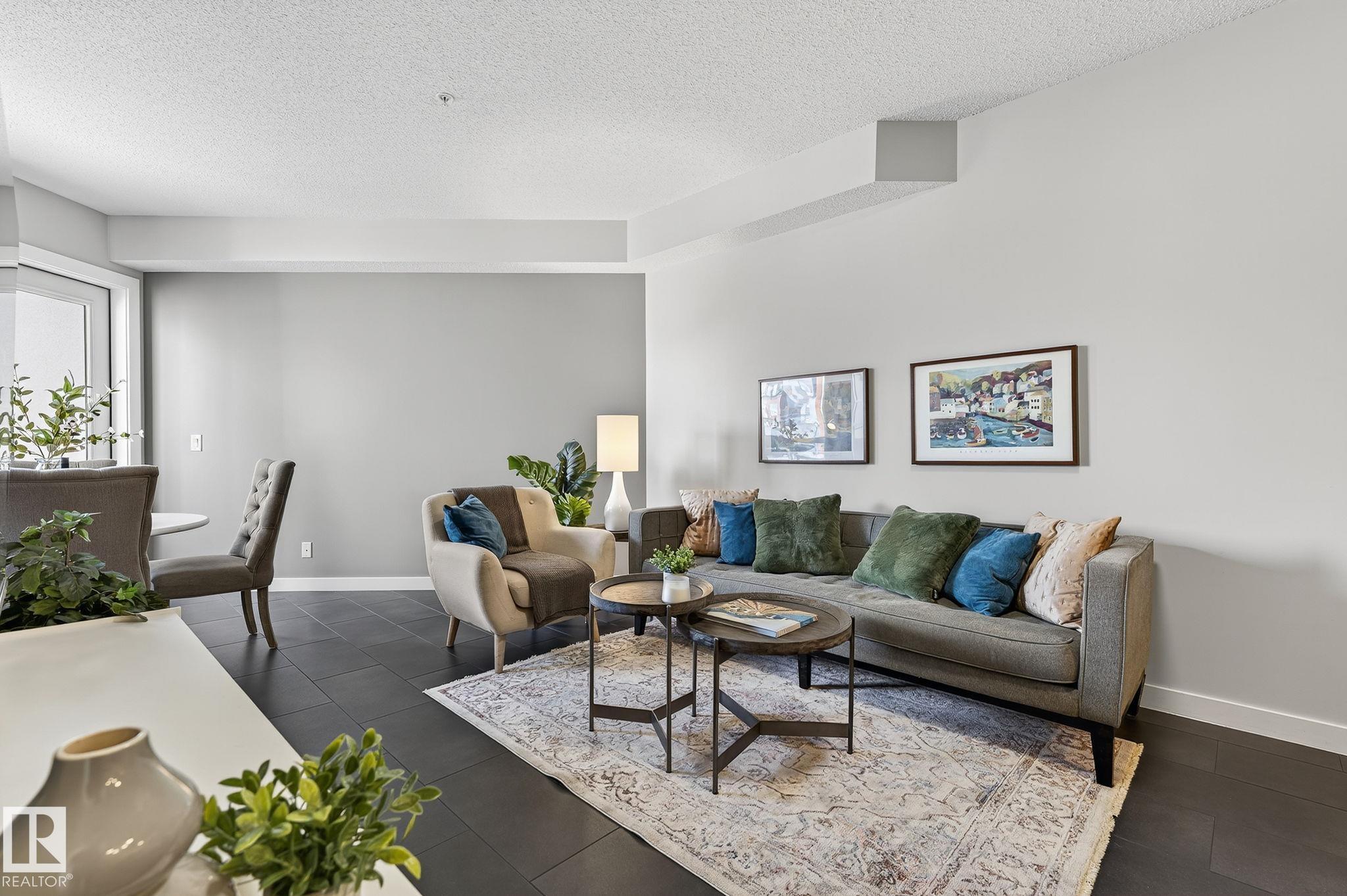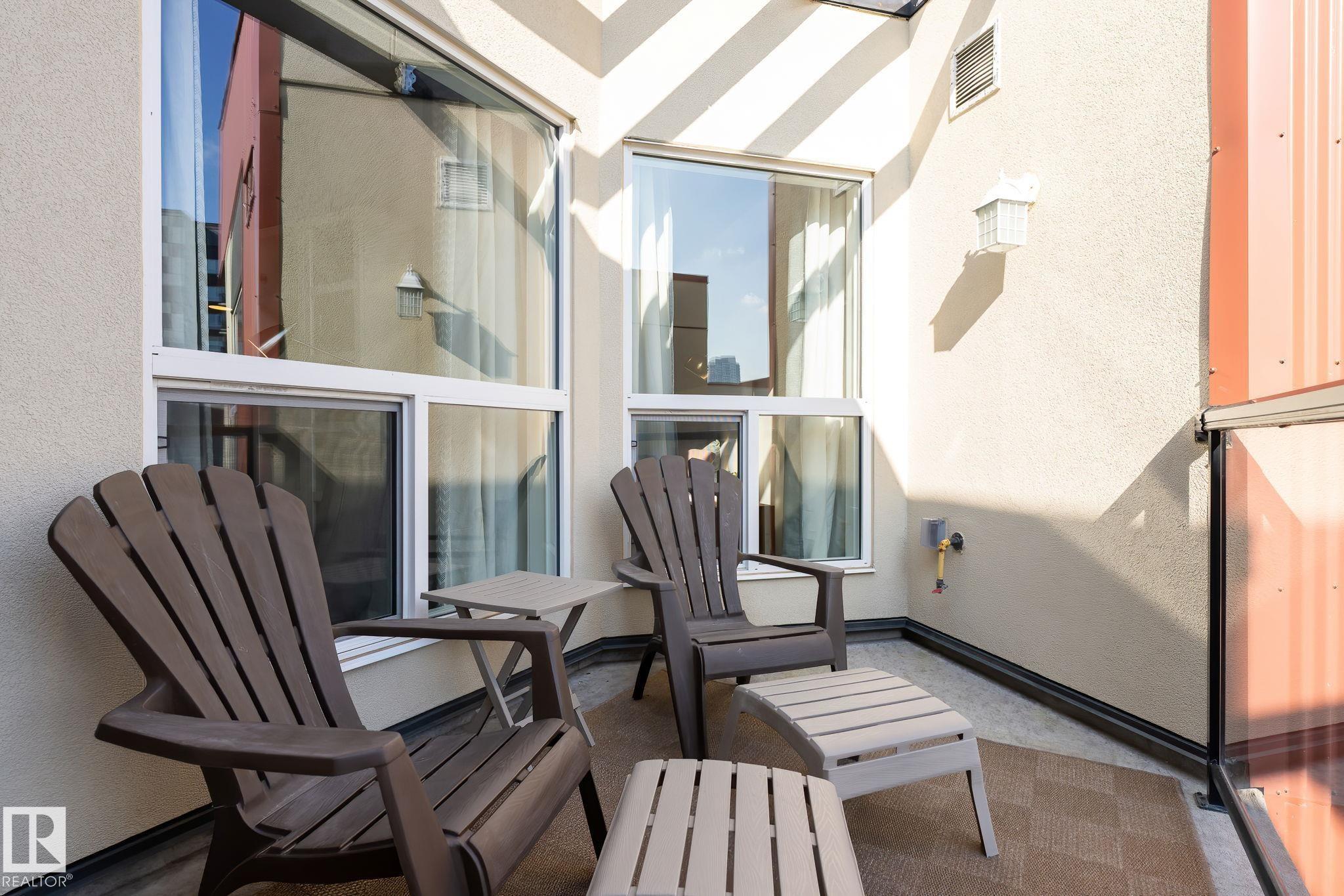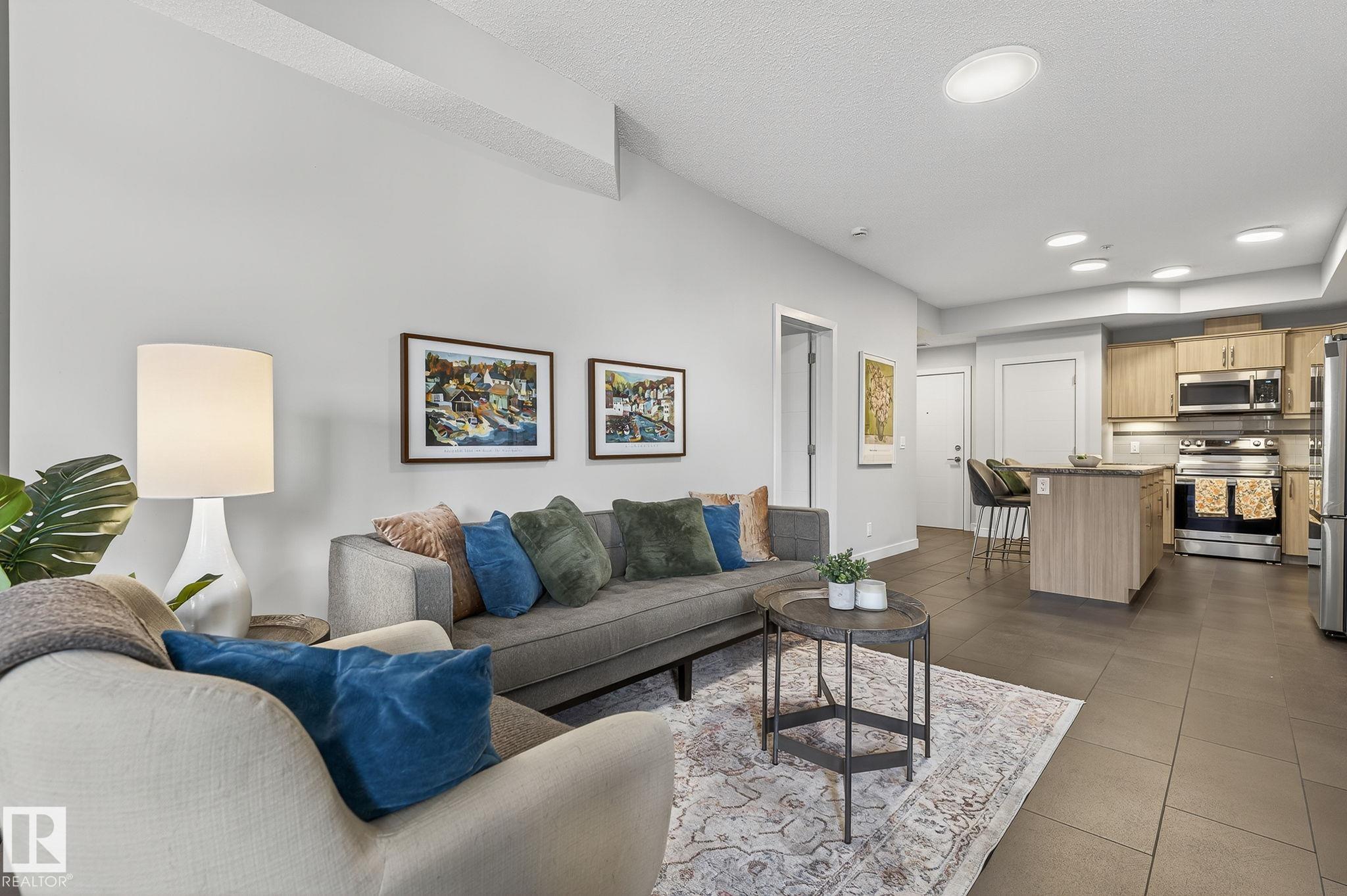 Top floor executive condo that is nestled between the vibrant High Street & the trendy Brewery District! Two bedrooms with two full baths. A hop, skip and jump or bike to your favourite coffee shops, restaurants, groceries, gym etc. 1 block from new LRT. You'd feel right at home with the great layout & relaxing ambience. New renos including contemporary paint, elegant large dark vinyl plank flooring & new carpet in master bedroom. The chef's kitchen has all new appliances except the dishwasher, beautiful tile backsplash, ample cabinets & a huge working island. Spacious living room is next to the bright & cheery dining area which has door onto the private balcony. Cozy master retreat has Pax closet organizer & a nice 4 piece ensuite. Well positioned second bedroom/den with 2 wardrobes is next to the main bath & laundry/storage. There's a stunning roof terrace with a gorgeous city view for you & your guest to enjoy year round. HVAC & A/C & gas hookup for BBQ. Secured heat underground parking stall. A 10!