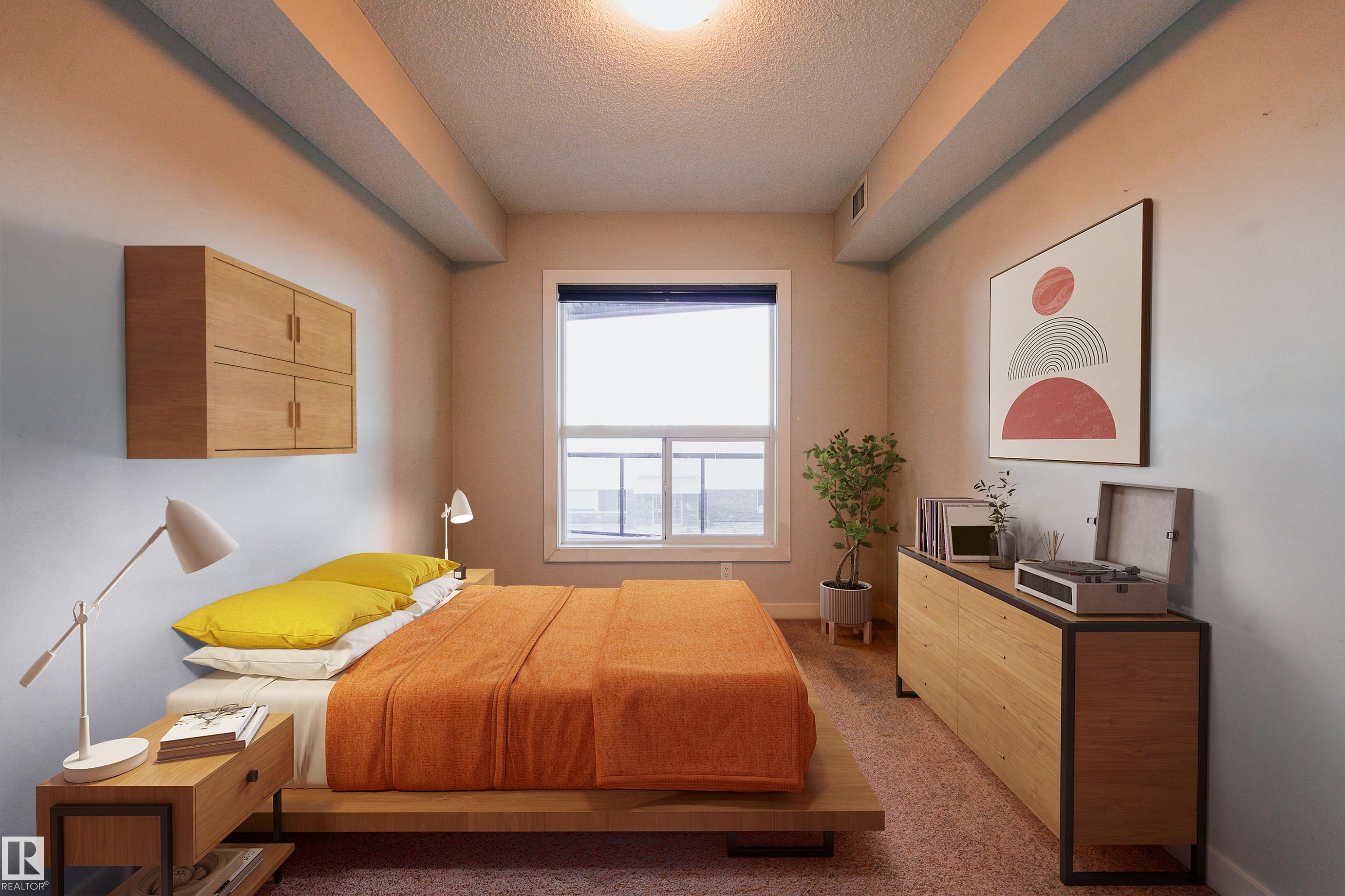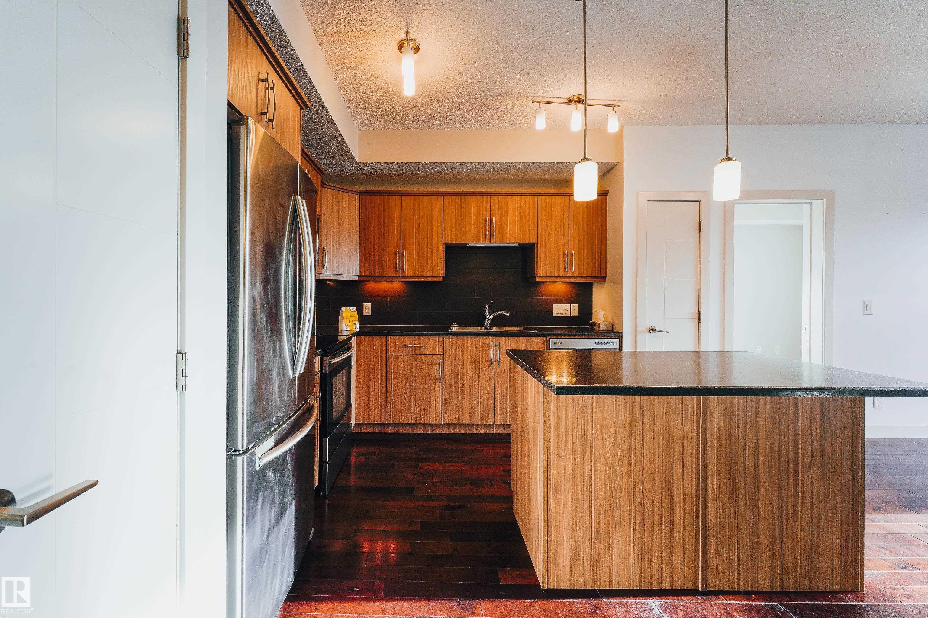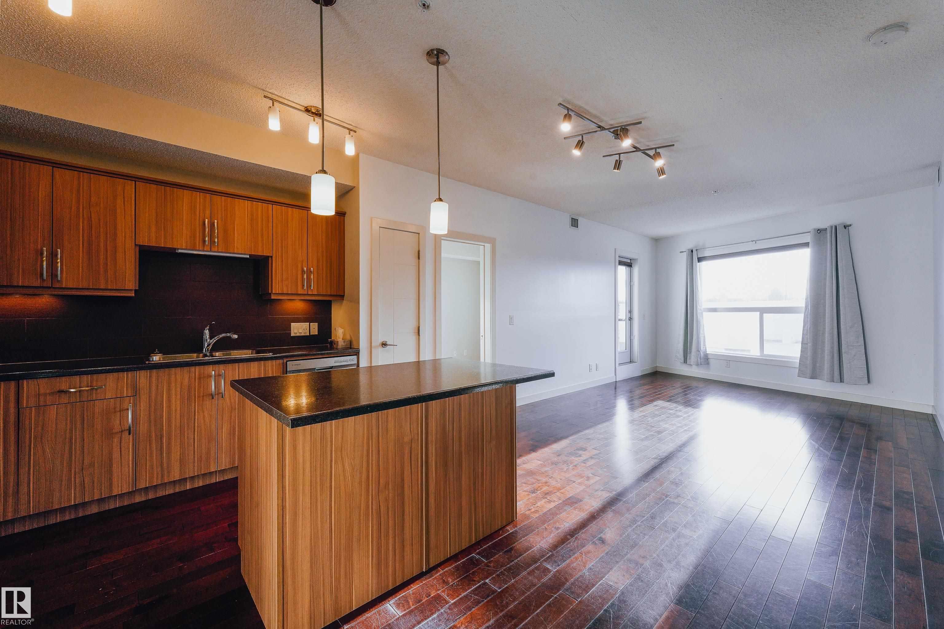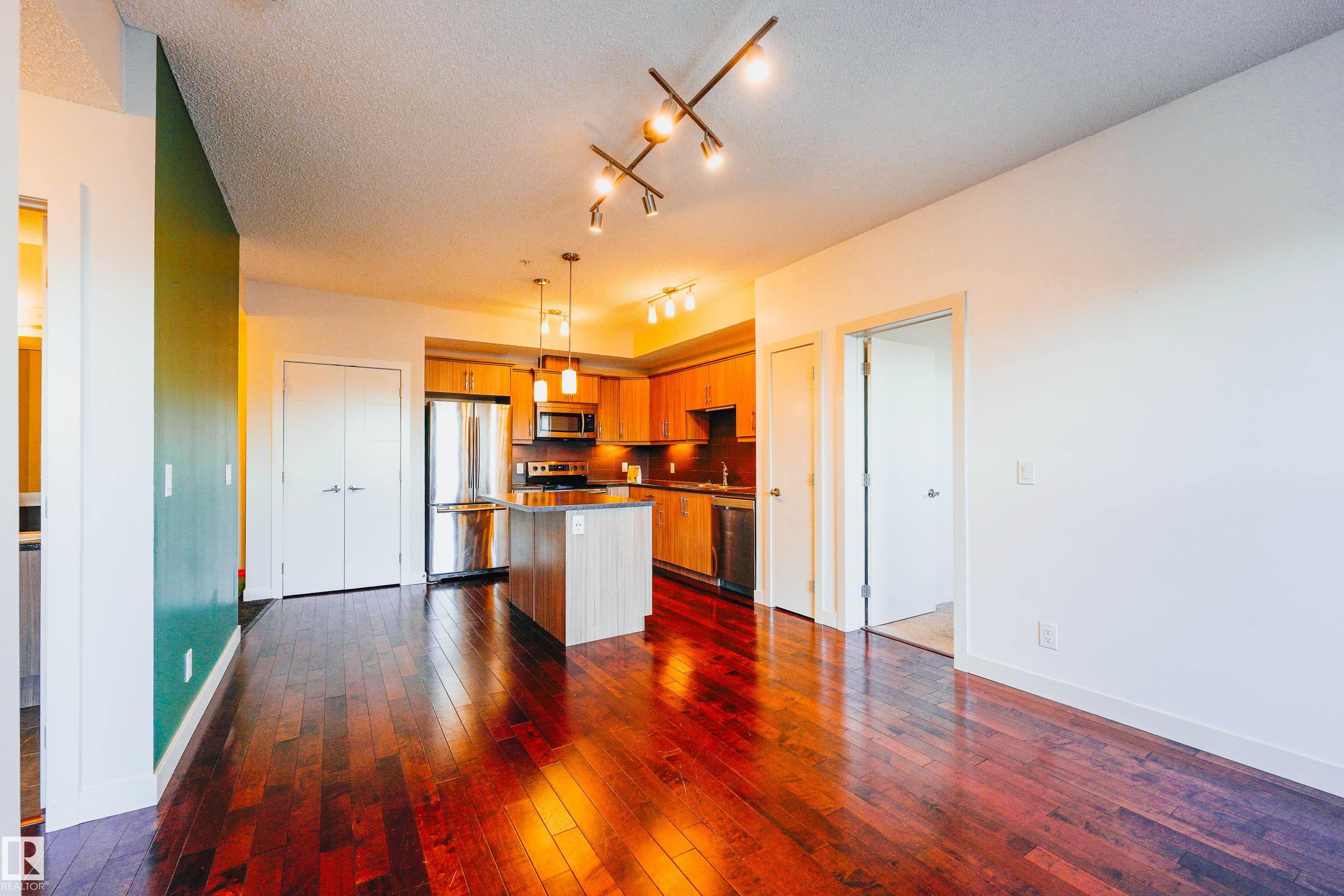 PET FRIENDLY, MODERN 2-BED, 2-BATH CONDO W/ A/C, IN-SUITE LAUNDRY & UNDERGROUND PARKING - STEPS TO 124 ST & BREWERY DISTRICT! Welcome to High Street District Properties--a stylish, centrally located home designed for the ultimate urban lifestyle. Just steps from Edmonton's best cafes, bakeries, breweries, restaurants, and cocktail bars, plus easy access to the river valley, bike paths & dog park! This bright & functional layout features 2 separated bedrooms (perfect for roommates!), an open-concept kitchen & living space with a massive island, and stunning west-facing windows for gorgeous sunset views. Enjoy summer nights on the spacious balcony w/ gas hookup! Upgrades include engineered hardwood, sleek stainless steel appliances, tile backsplash, a central heat pump w/ A/C, big windows, front-load laundry & tons of closet space. Plus, enjoy underground parking & a rooftop patio! Move-in ready--come see it today!