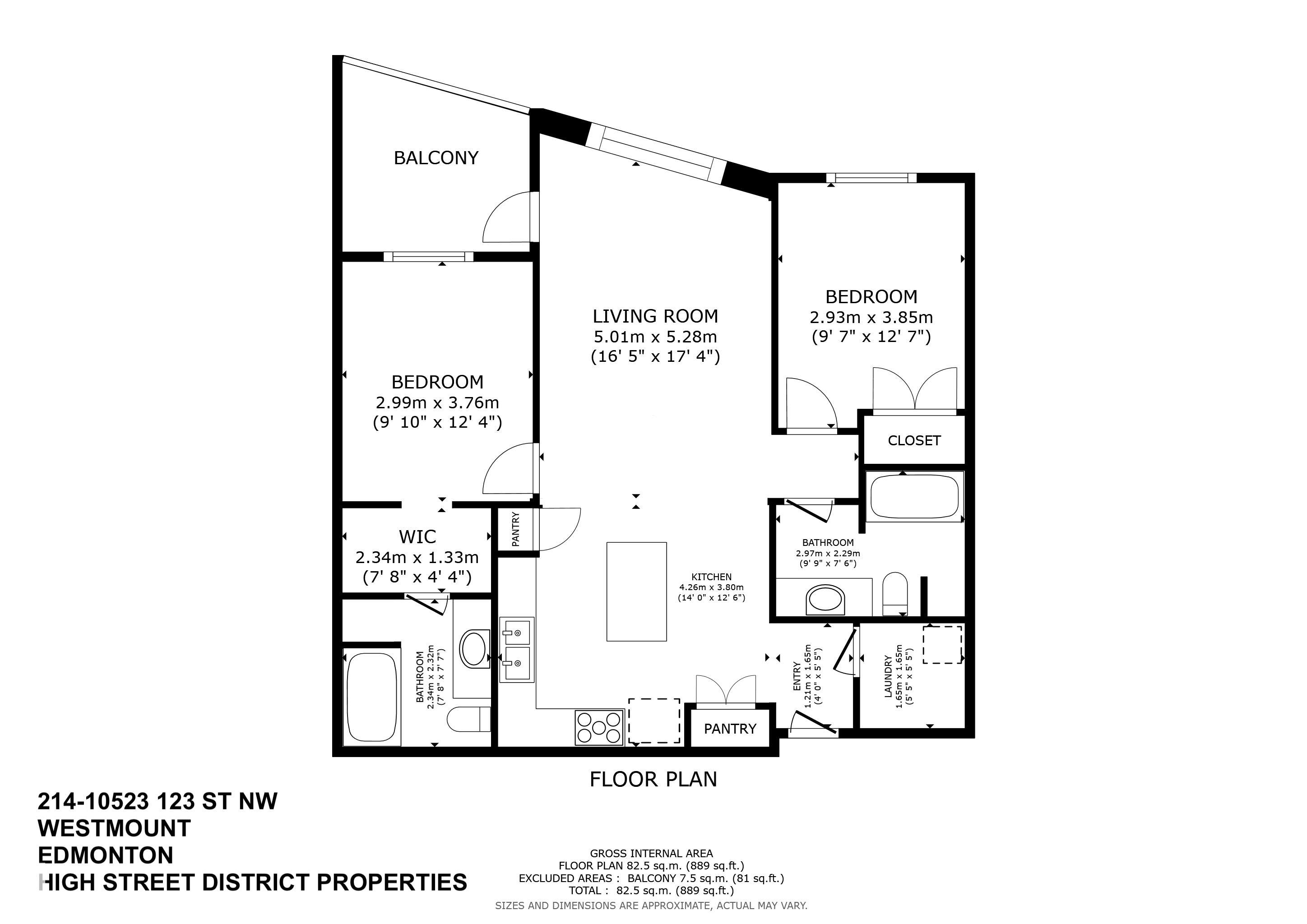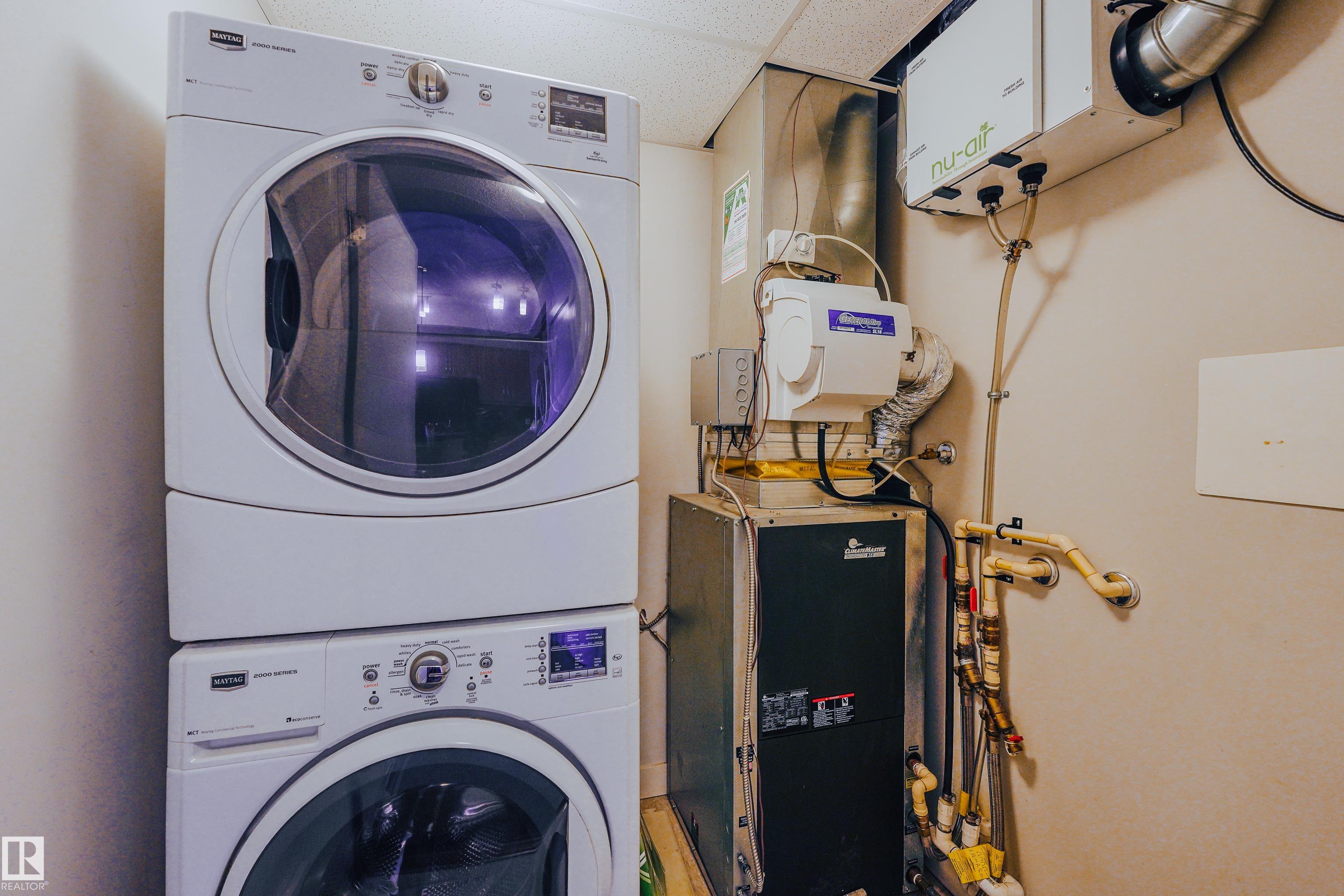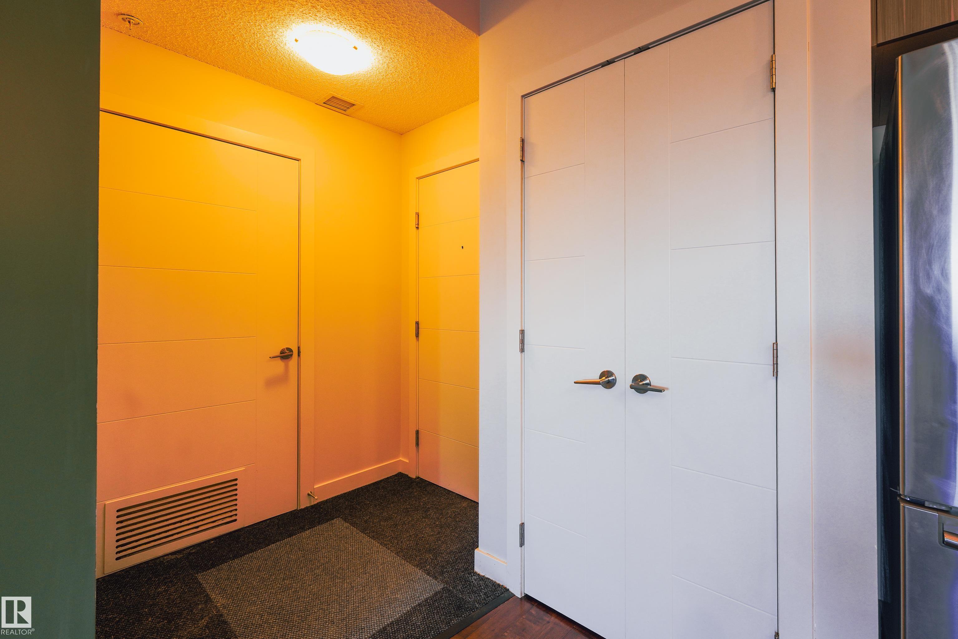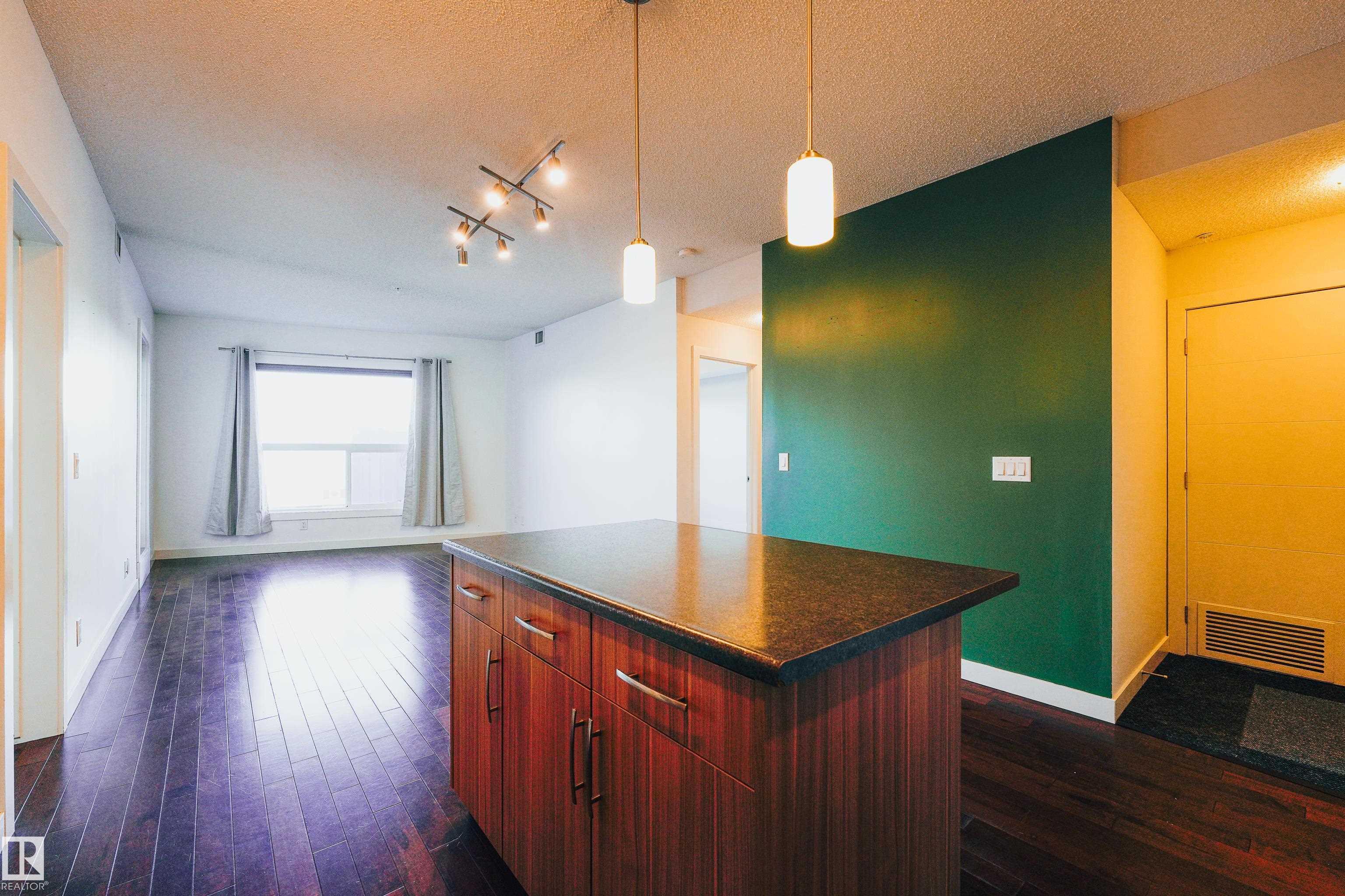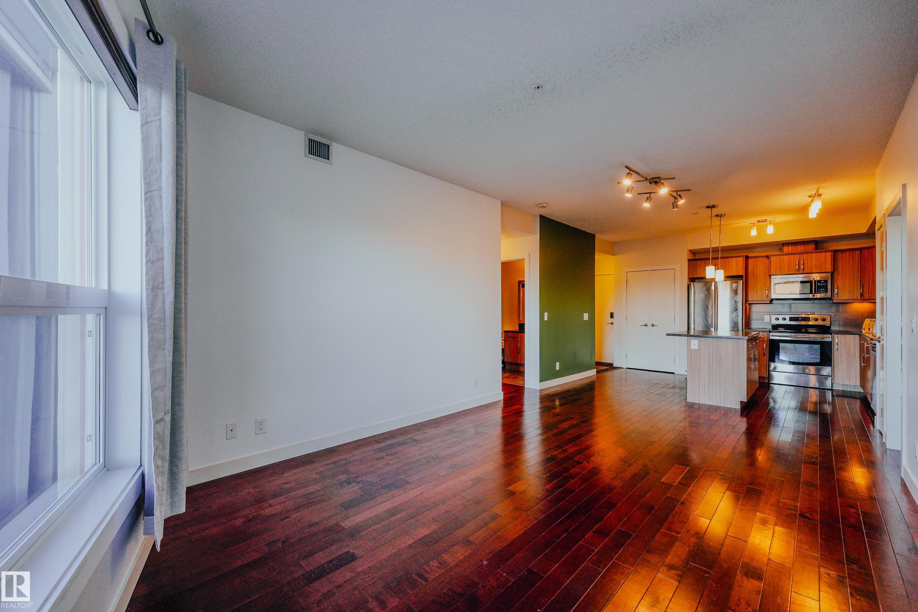 PET FRIENDLY, MODERN 2-BED, 2-BATH CONDO W/ A/C, IN-SUITE LAUNDRY & UNDERGROUND PARKING - STEPS TO 124 ST & BREWERY DISTRICT! Welcome to High Street District Properties--a stylish, centrally located home designed for the ultimate urban lifestyle. Just steps from Edmonton's best cafes, bakeries, breweries, restaurants, and cocktail bars, plus easy access to the river valley, bike paths & dog park! This bright & functional layout features 2 separated bedrooms (perfect for roommates!), an open-concept kitchen & living space with a massive island, and stunning west-facing windows for gorgeous sunset views. Enjoy summer nights on the spacious balcony w/ gas hookup! Upgrades include engineered hardwood, sleek stainless steel appliances, tile backsplash, a central heat pump w/ A/C, big windows, front-load laundry & tons of closet space. Plus, enjoy underground parking & a rooftop patio! Move-in ready--come see it today!