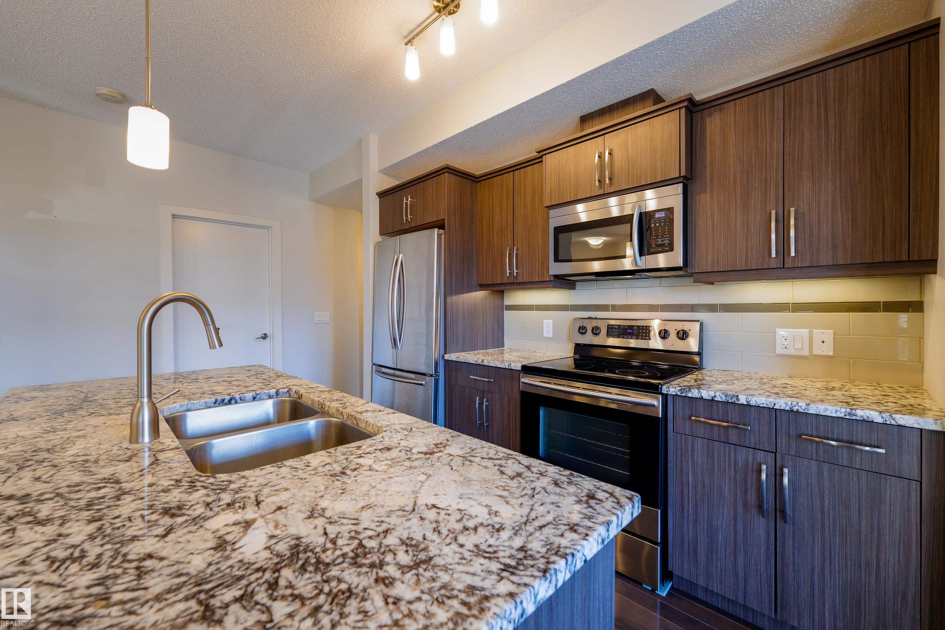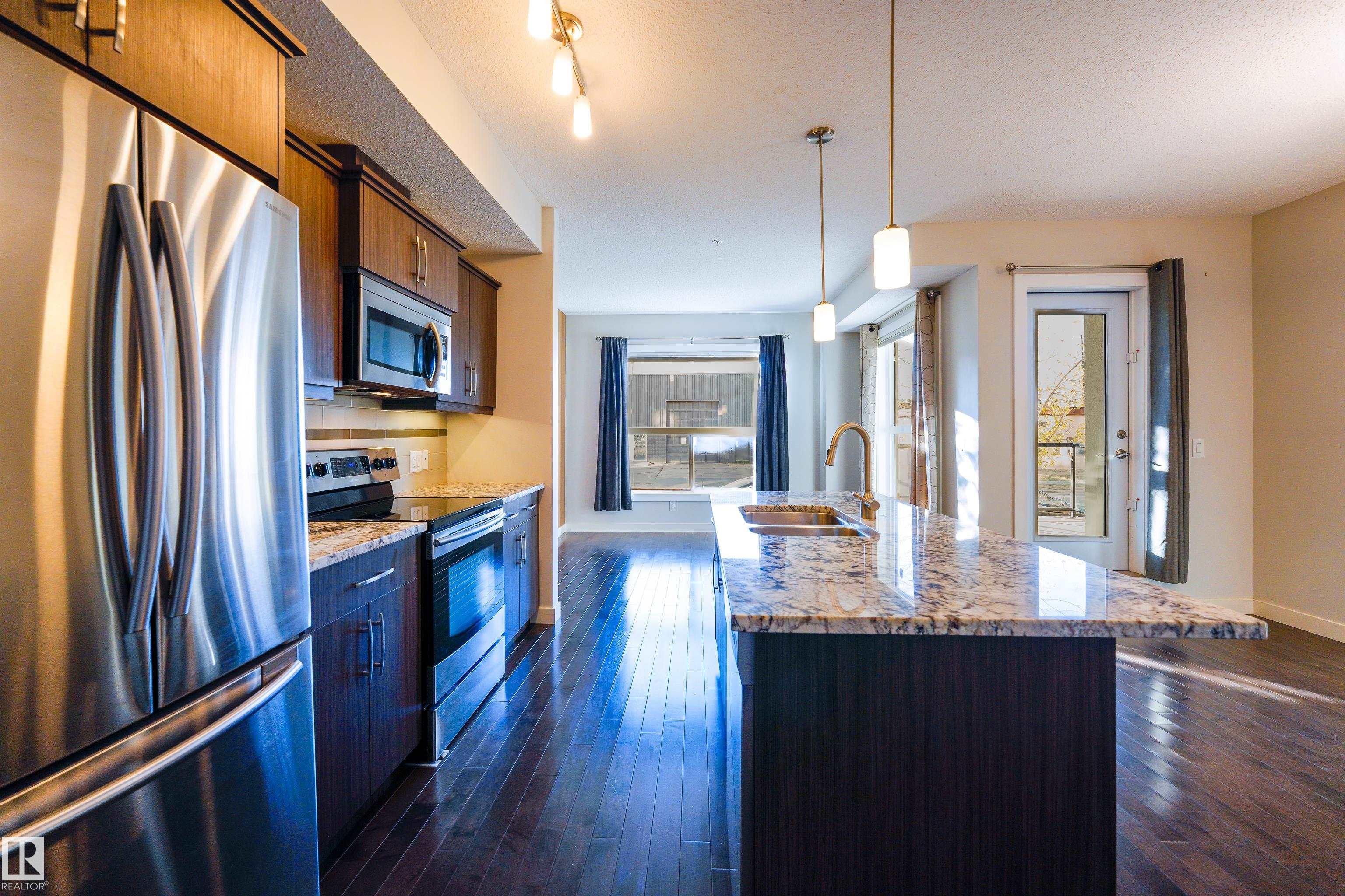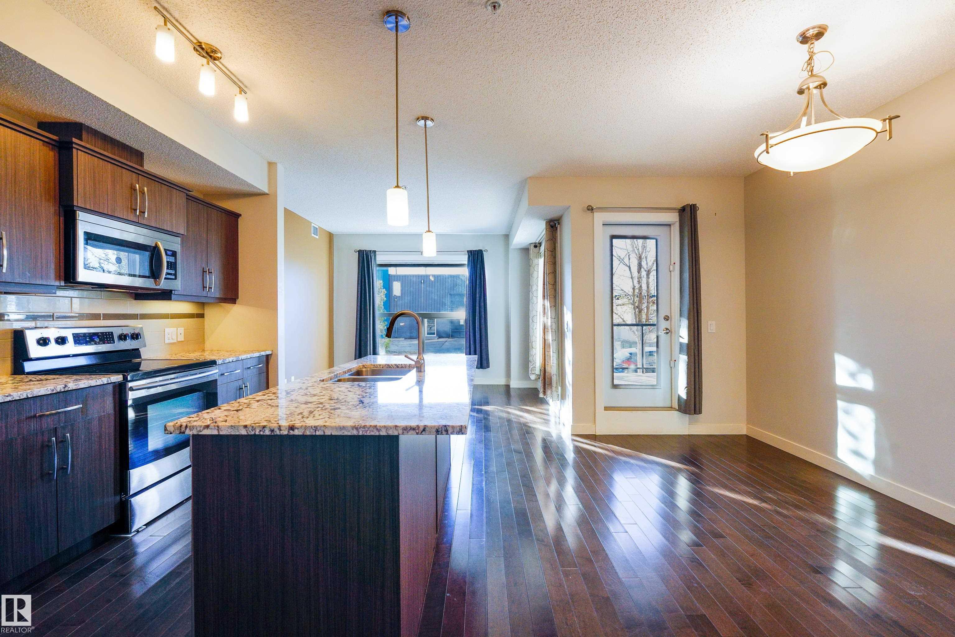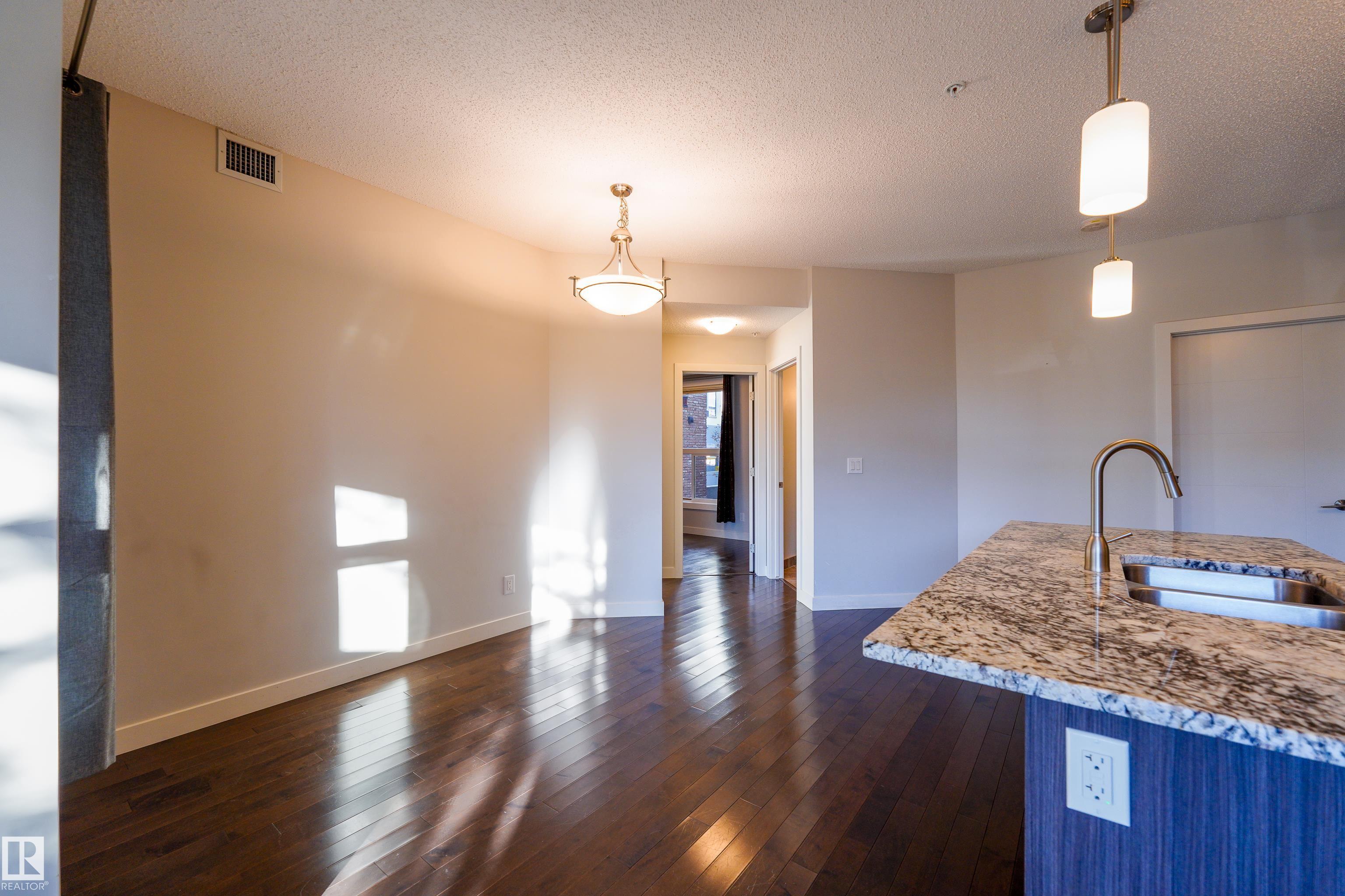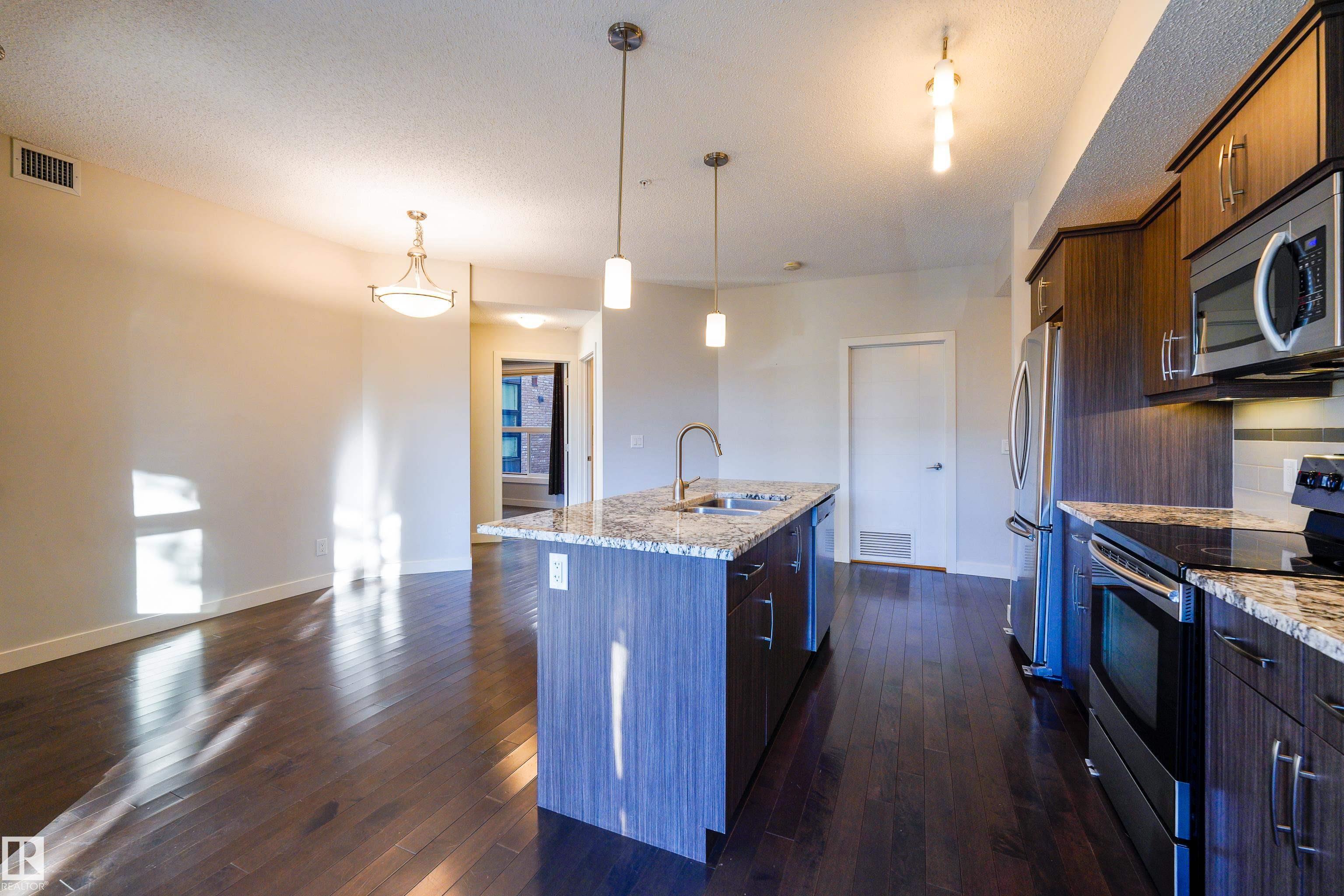 GREAT LOCATION RIGHT OFF 124TH ST -- SPACIOUS 3 BEDROOMS, 2 FULL BATHROOMS, UNDERGROUND PARKING, CENTRAL AIR CONDITIONING, PET-FRIENDLY & NEAR TWO FUTURE LRT STOPS! Welcome to condo living at its finest in the desirable High Street District Properties, steps from the Brewery District, boutiques, caf‚s, and transit. This west-facing suite features an open-concept layout with 9' ceilings, engineered wood flooring, and large vinyl windows that fill the home with natural light. The modern kitchen boasts granite countertops, stainless steel appliances, and a large central island perfect for entertaining. Enjoy two full bathrooms-- both beautifully finished--and a rare 3rd bedroom ideal for a home office or guest space. Top features include central air conditioning, in-suite laundry, and a titled heated underground parking stall. The pet-friendly building also offers a rooftop patio, secure access, and convenient proximity to two future LRT stops, adding even more value to this prime location