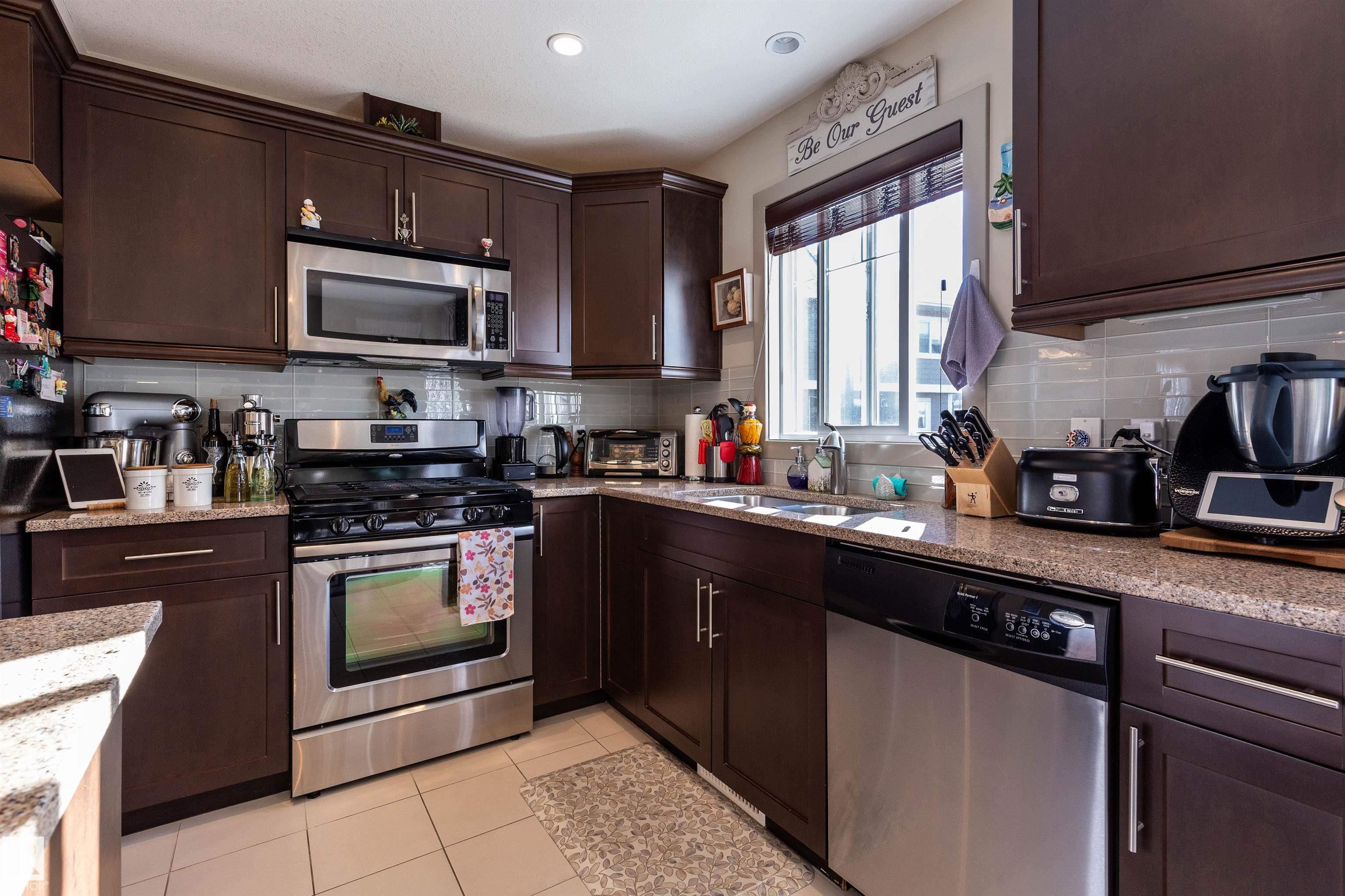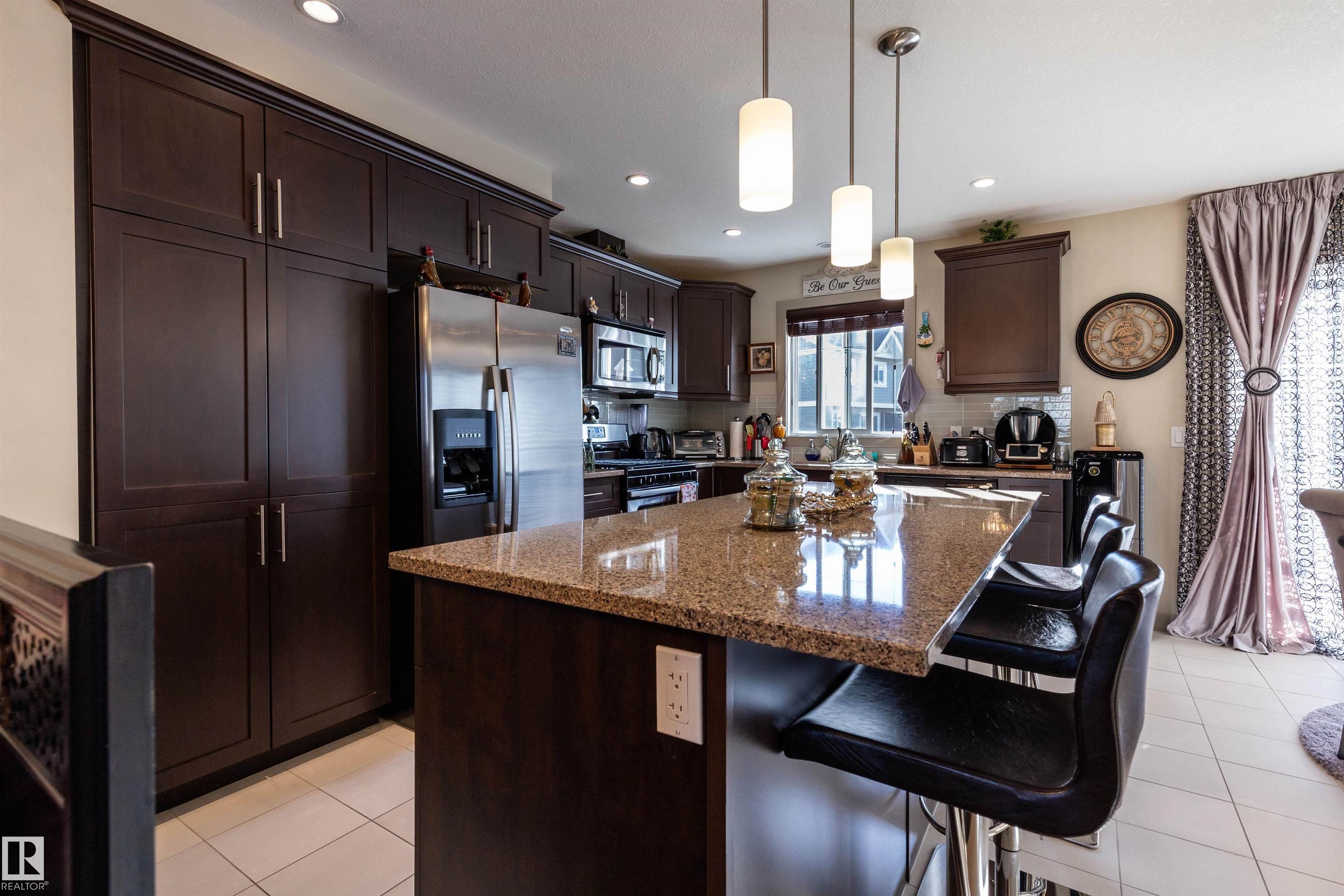 Meticulously maintained former SHOWSUITE located in the sought after complex of The Estates of Upper Windermere with UPGRADES GALORE!! Just under 1800sqft(builder plans show 1862sqft) of spacious and open floor concept living. Huge kitchen with quartz counters, glass tile backsplash, maple cabinets, crown molding, under cabinet lighting w/valance, gas stove, pot lights, B/I pantry and a huge centre island. Good size nook area leads to a oversized 11'x20' maintenance free deck with a gas line. Large LR area with a corner gas fireplace and a formal DR area. Upstairs features 2 large double MB both with huge custom(MDF) walk-in closets with fully upgraded ensuites. Upstairs laundry with built-in cabinets and a sink. Fully finished basement with an additional 2pc bathroom. This end unit features extra windows, central A/C, double attached garage, upgraded carpet, upgraed plumbing and lighting fixtures. Steps to all major amenities including schools, shopping and bus and is move-in ready!
