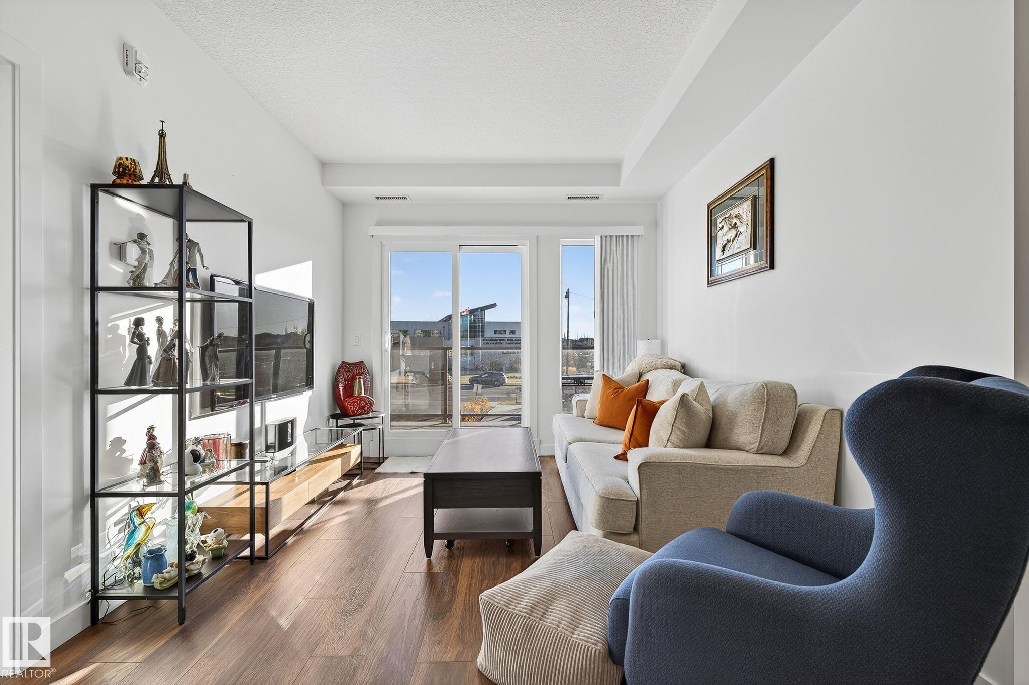 Experience luxury living in this steel & concrete 18+ residence at LUX Upper Windermere. This immaculate 2-bedroom, 2 bath + storage condo offers nearly 900 sq ft. of thoughtfully designed living space--paired with a titled underground parking stall. Enjoy east-facing views, the open-concept layout is elevated by sleek stainless steel appliances, quartz countertops & 9ft ceilings. Additional highlights include air conditioning, access to the second-floor fitness center & one of the largest patios throughout the building. Perfectly situated just minutes from The Currents of Windermere, the River Valley, and quick access to the Anthony Henday, this condo combines modern sophistication with everyday convenience in one of Edmonton's most desirable communities.