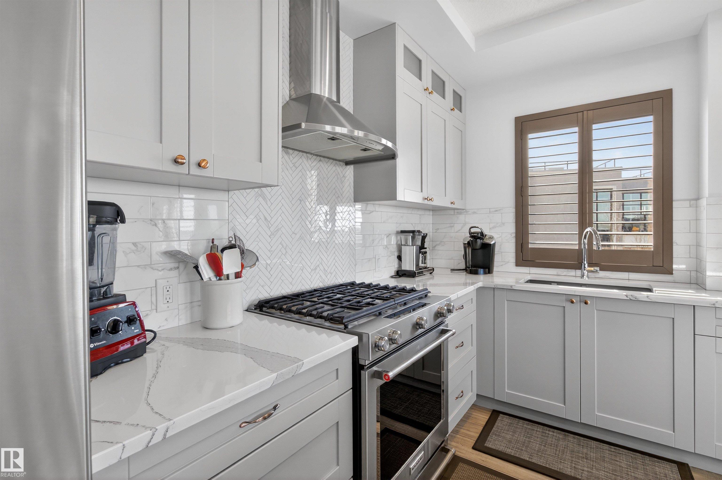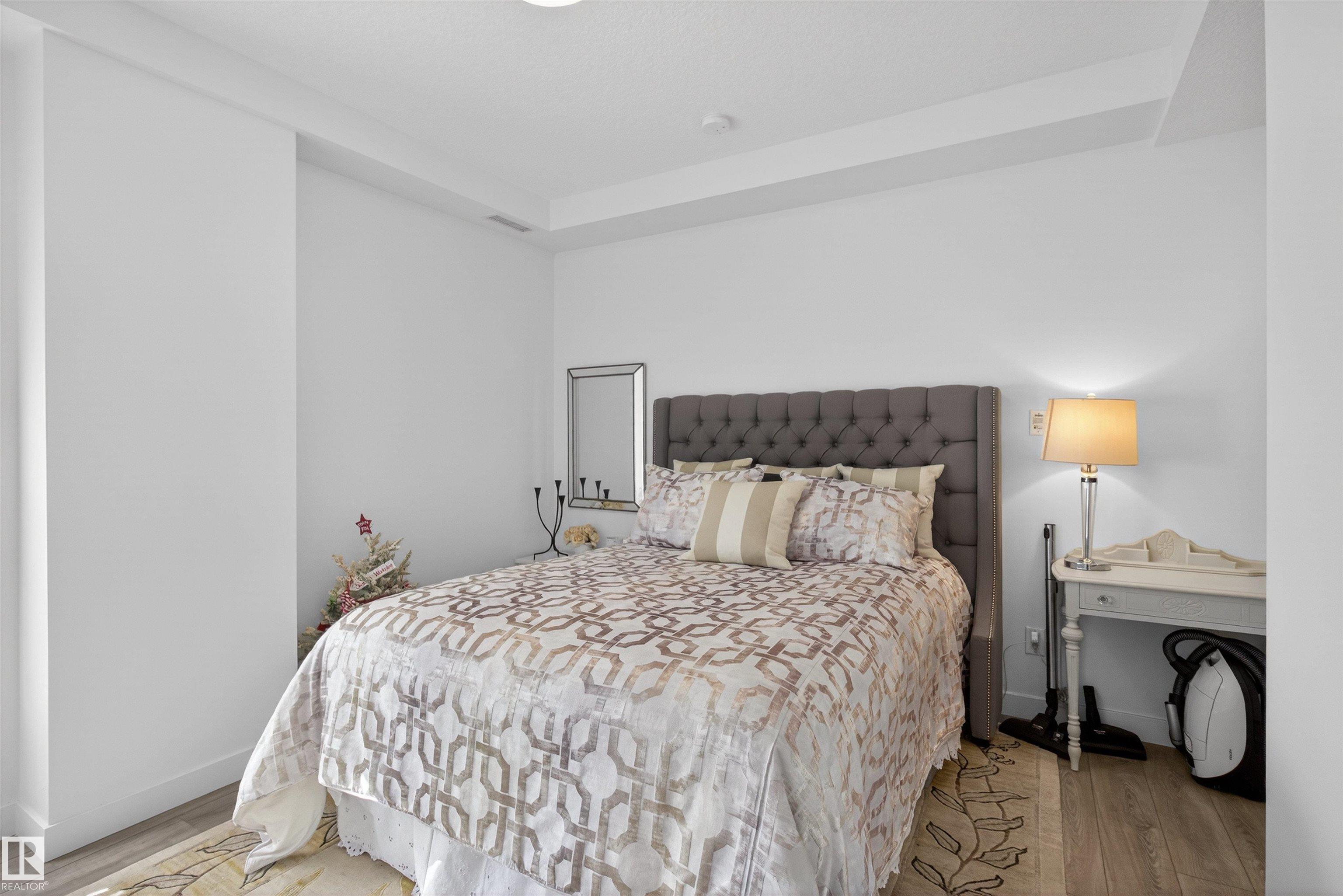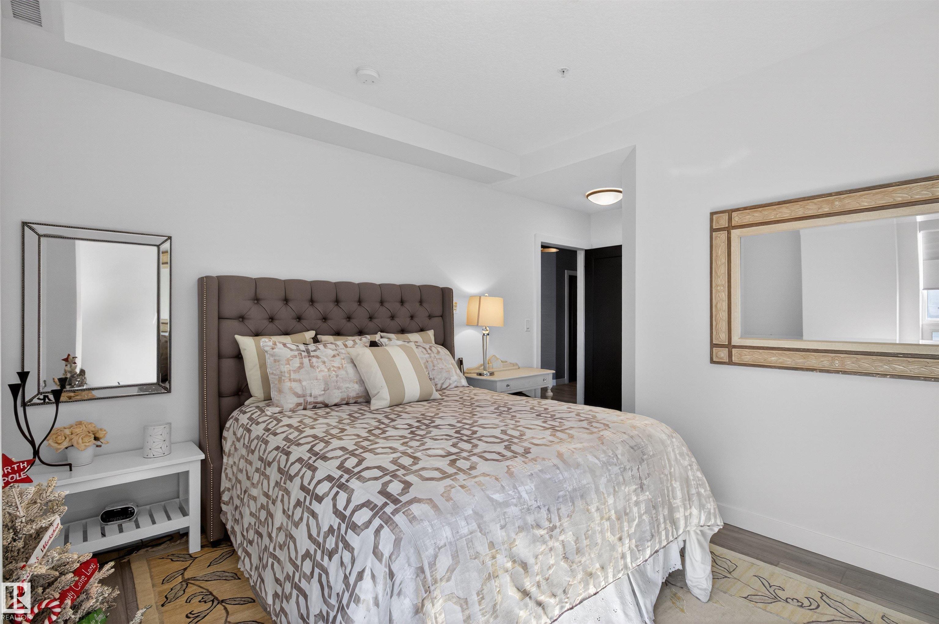 SOUTHWEST CORNER UNIT CONDO! VIEW OF THE POND & GREEN SPACE! This extensively upgraded executive style condo offers HIGH END QUALITY FINISHINGS throughout. Over $75K in professional upgrades! Featuring an open concept with 1515 sq ft and luxury vinyl plank flooring. You'll love the DREAM KITCHEN! Gorgeous Quartz countertops, beautiful cabinetry, pantry & all appliances including a 5 burner gas stove. Generous dining area and a large living room. Patio doors lead to the WRAP AROUND BALCONY to enjoy the views! Fire table and BBQ gas hookup. TWO LARGE BEDROOMS WITH WALK-IN CLOSETS & LUXURIOUS ENSUITES! DEN/OFFICE or potential 3rd bedroom. Powder room for guests. Convenient in-suite laundry. TWO UNDERGROUND TITLED PARKING STALLS PLUS STORAGE CAGE! Awesome fitness room is on the second level. Fabulous and secure building located in one of south Edmonton's most sought after communities. Close to major amenities, parks, transit & shopping. 18+ building. Enjoy the best of condo living at Lux At Upper Windermere!