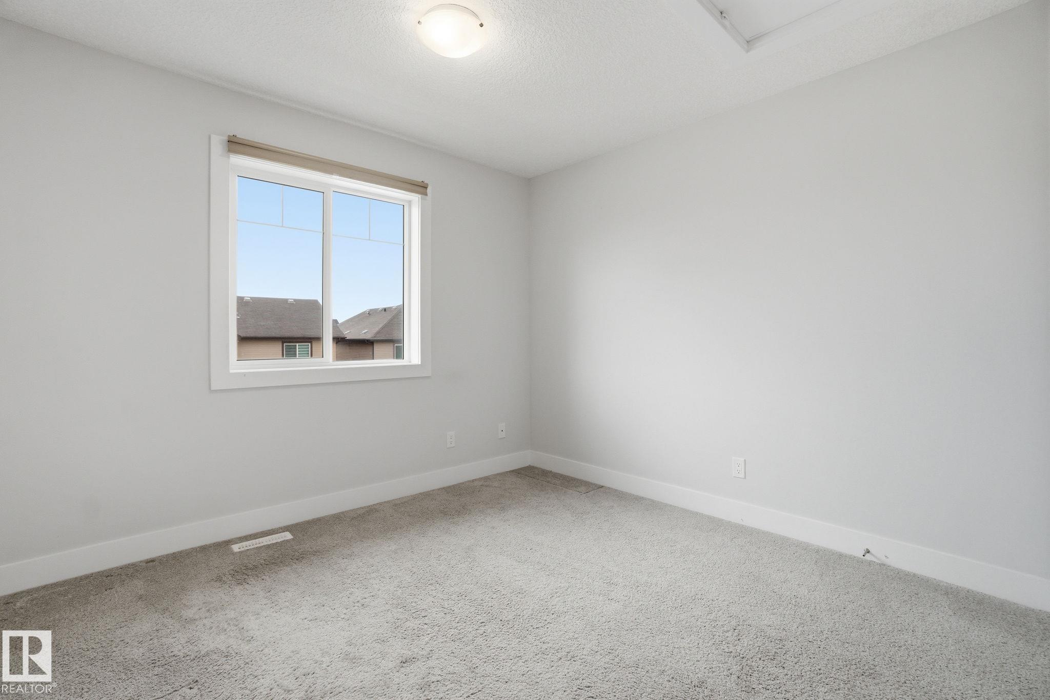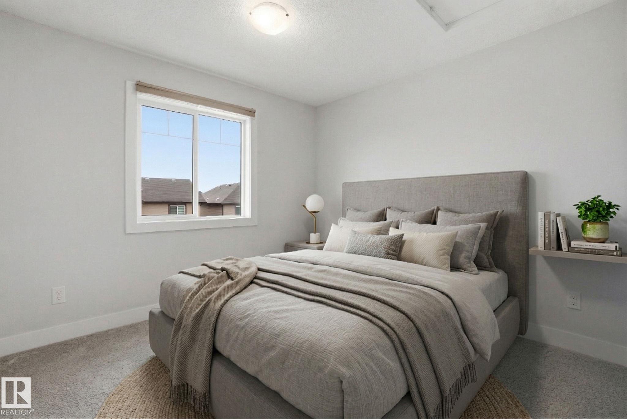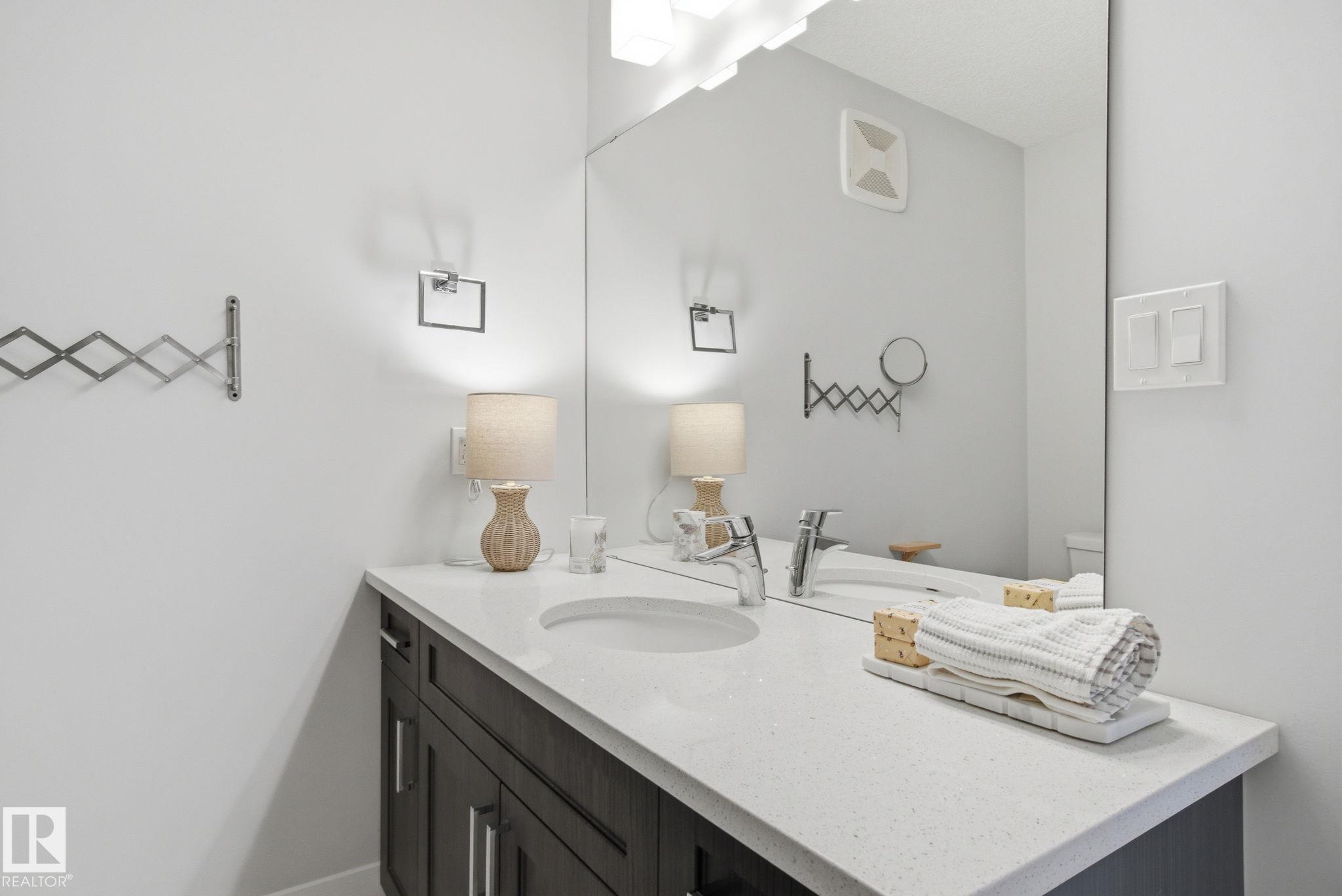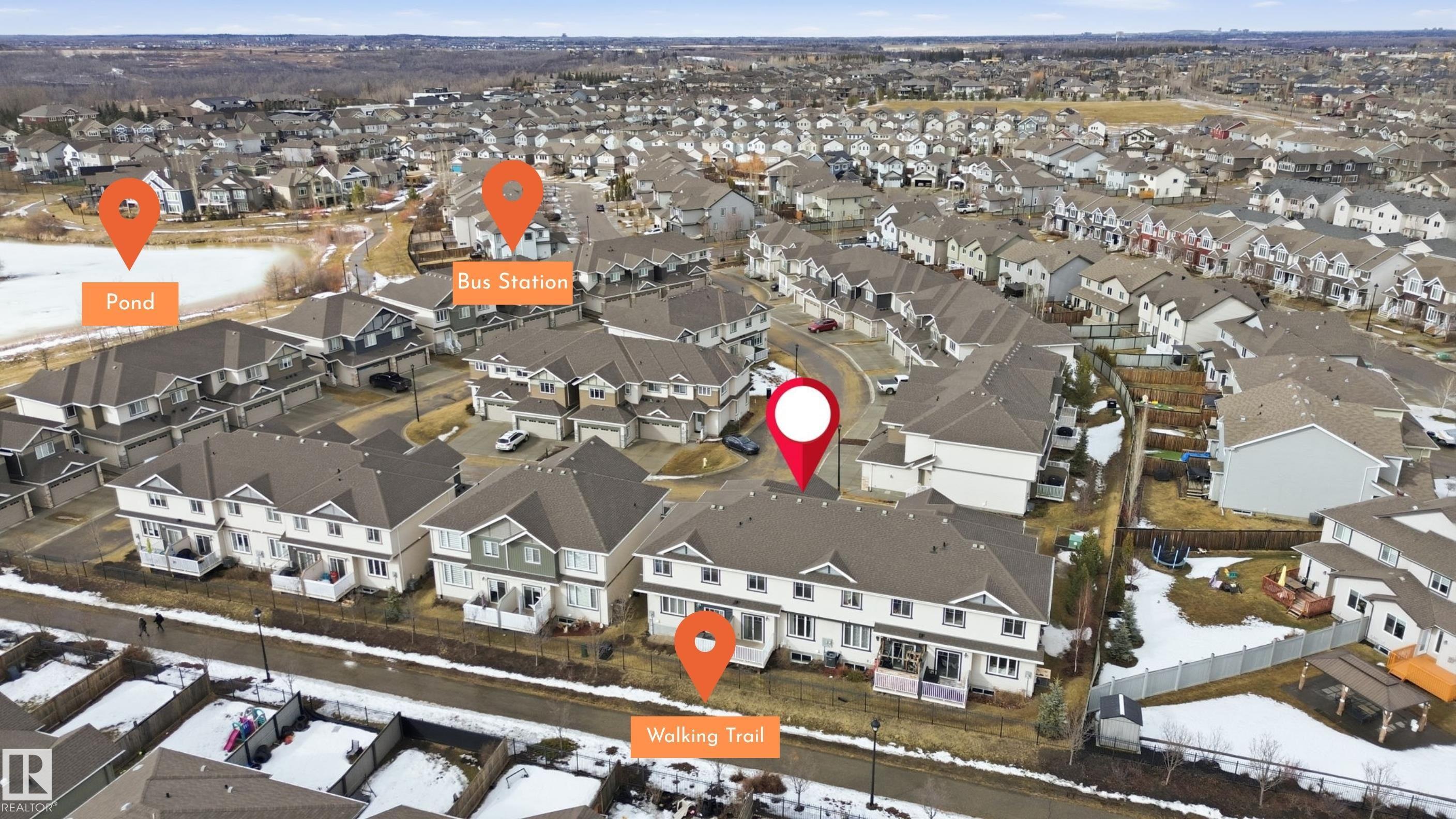 BACKS ONTO WALKING TRAIL, SOUTH-FACING YARD, STEPS TO POND! Welcome to this beautifully maintained, original-owner home offering the perfect blend of comfort and functionality. Bright, open main floor with soaring 9' ceilings and a grand entry. Durable laminate flooring throughout, plus ceramic tile mudroom and convenient half bath. The kitchen features quartz countertops, undermount sink, Whirlpool appliances, Vesta hood fan, and 2 pantry closets. Upstairs offers 3 spacious bedrooms, 2 full baths with matching quartz finishes, and laundry with front-load washer/dryer and floor drain. The primary suite includes a walk-in closet with window. Enjoy a sunny south-facing backyard with private deck and low-maintenance finish. Condo fees $265/month include snow removal and lawn care. Double attached garage, security system, and unfinished basement ready for your vision.