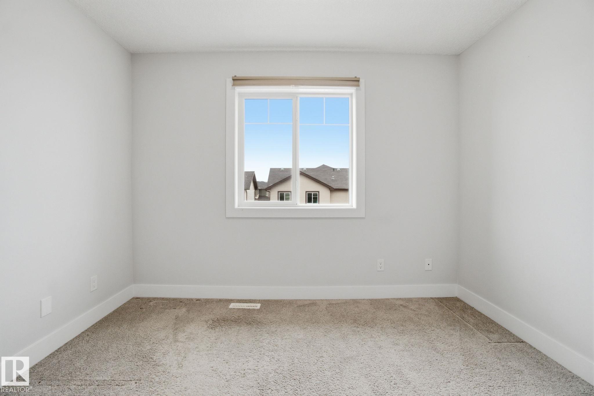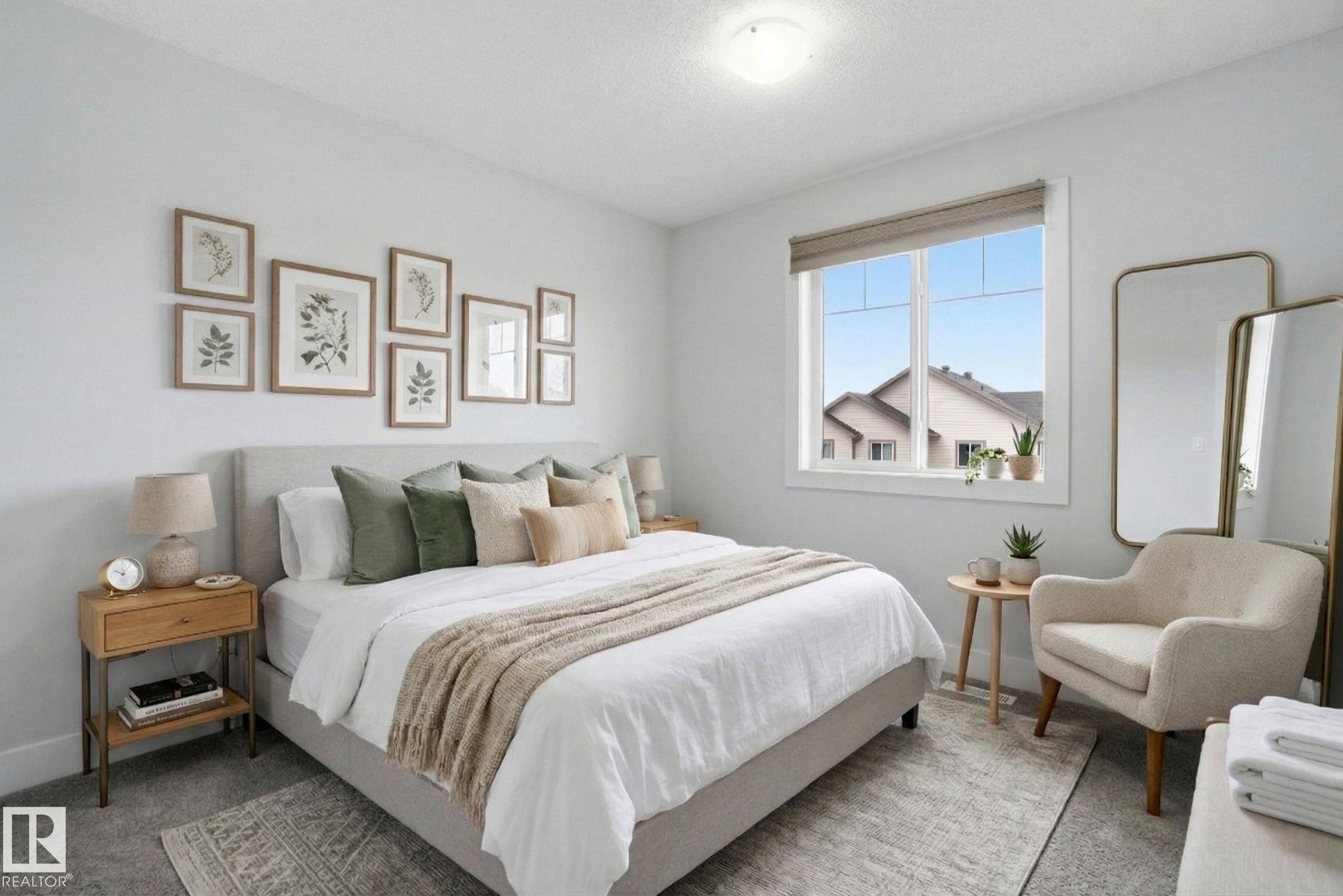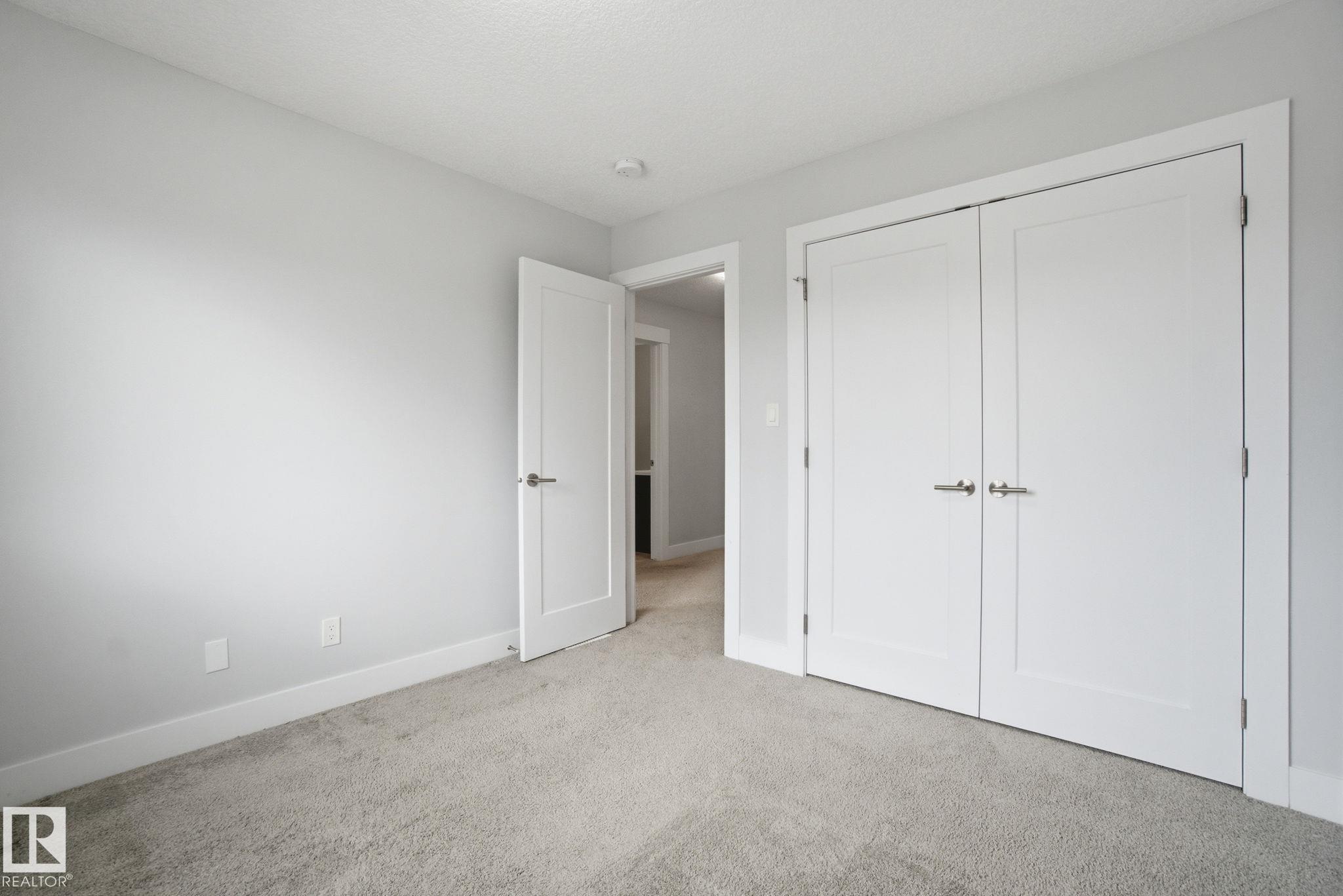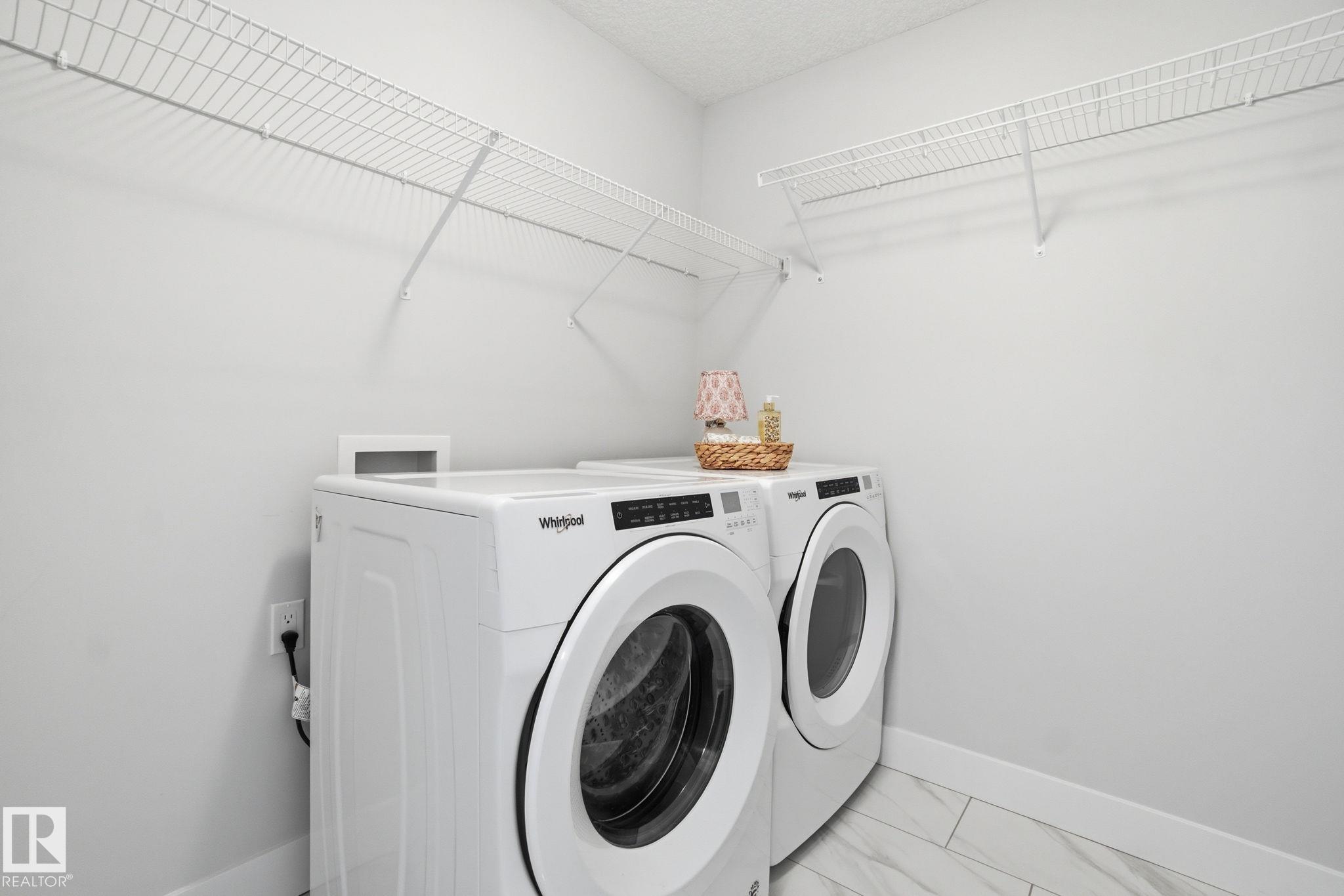 BACKS ONTO WALKING TRAIL, SOUTH-FACING YARD, STEPS TO POND! Welcome to this beautifully maintained, original-owner home offering the perfect blend of comfort and functionality. Bright, open main floor with soaring 9' ceilings and a grand entry. Durable laminate flooring throughout, plus ceramic tile mudroom and convenient half bath. The kitchen features quartz countertops, undermount sink, Whirlpool appliances, Vesta hood fan, and 2 pantry closets. Upstairs offers 3 spacious bedrooms, 2 full baths with matching quartz finishes, and laundry with front-load washer/dryer and floor drain. The primary suite includes a walk-in closet with window. Enjoy a sunny south-facing backyard with private deck and low-maintenance finish. Condo fees $265/month include snow removal and lawn care. Double attached garage, security system, and unfinished basement ready for your vision.