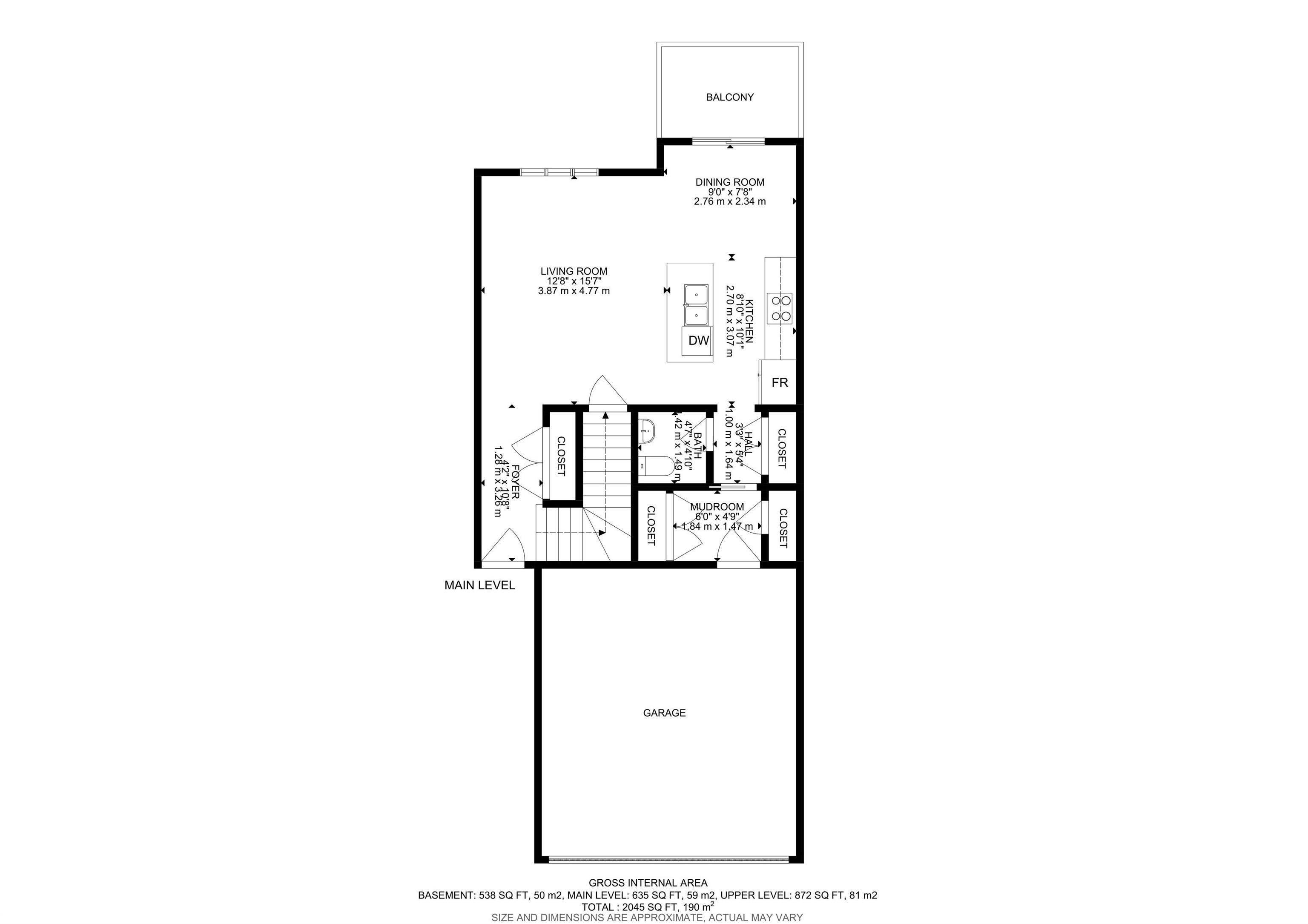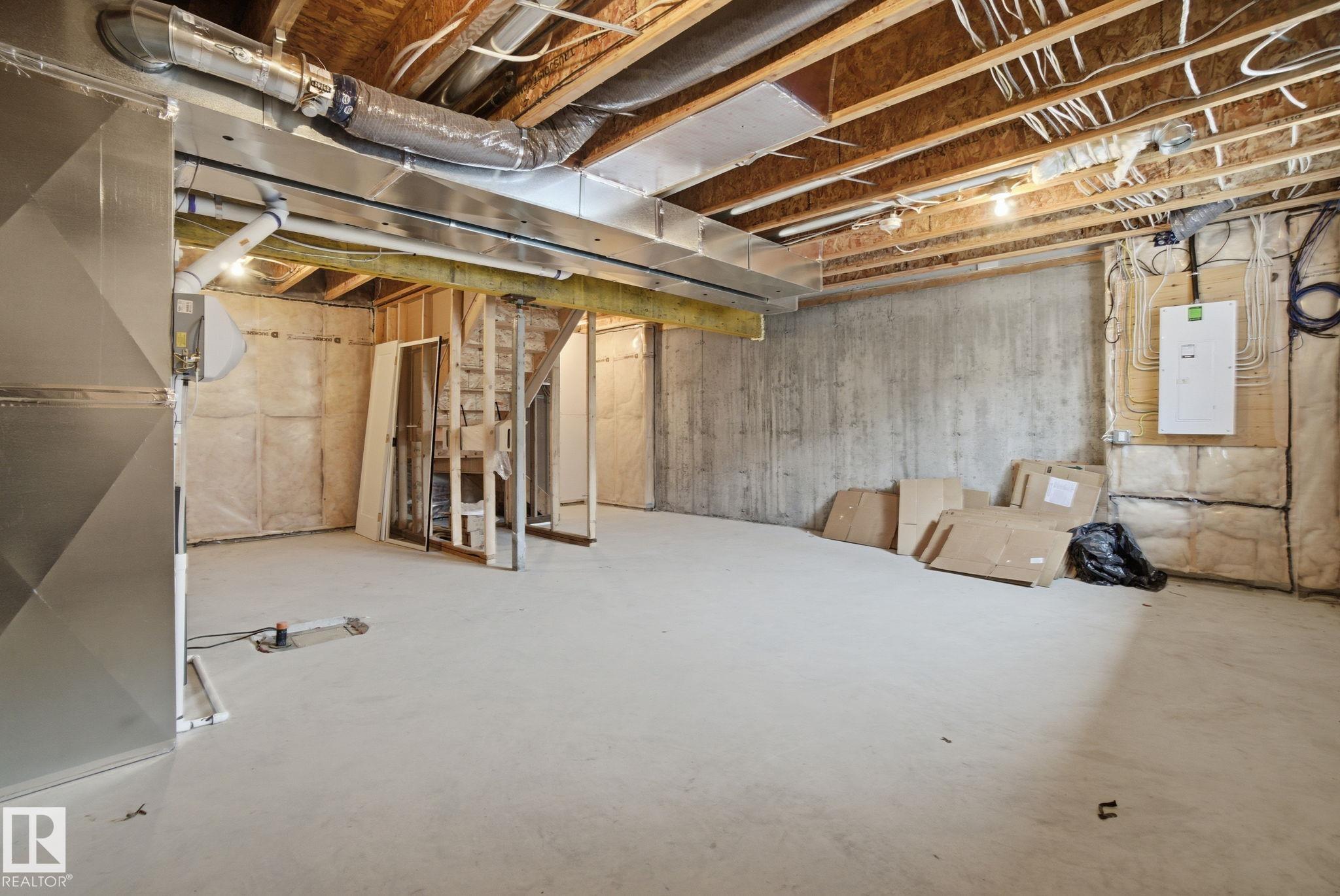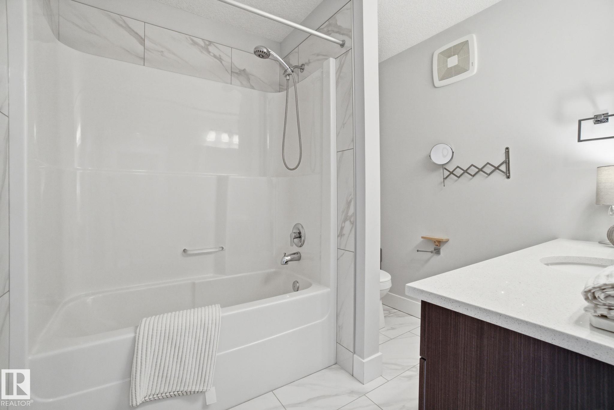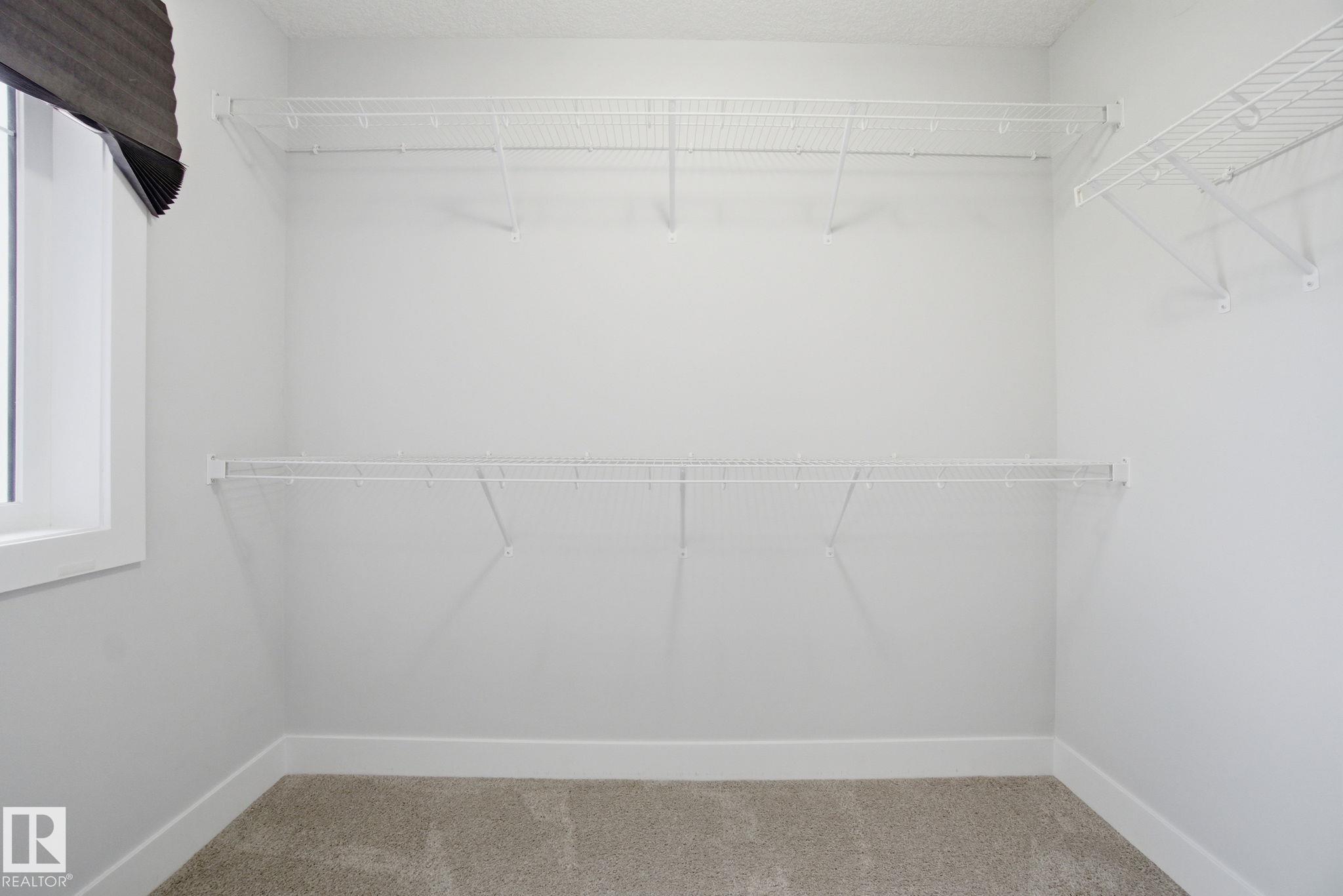 BACKS ONTO WALKING TRAIL, SOUTH-FACING YARD, STEPS TO POND! Welcome to this beautifully maintained, original-owner home offering the perfect blend of comfort and functionality. Bright, open main floor with soaring 9' ceilings and a grand entry. Durable laminate flooring throughout, plus ceramic tile mudroom and convenient half bath. The kitchen features quartz countertops, undermount sink, Whirlpool appliances, Vesta hood fan, and 2 pantry closets. Upstairs offers 3 spacious bedrooms, 2 full baths with matching quartz finishes, and laundry with front-load washer/dryer and floor drain. The primary suite includes a walk-in closet with window. Enjoy a sunny south-facing backyard with private deck and low-maintenance finish. Condo fees $265/month include snow removal and lawn care. Double attached garage, security system, and unfinished basement ready for your vision.