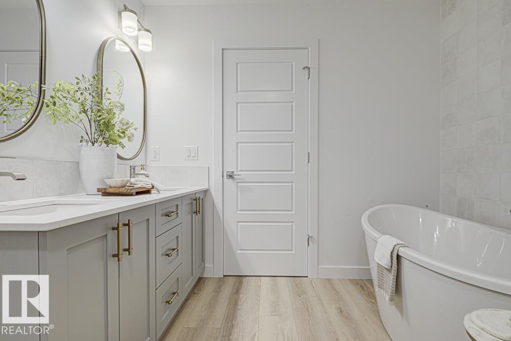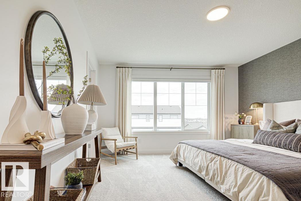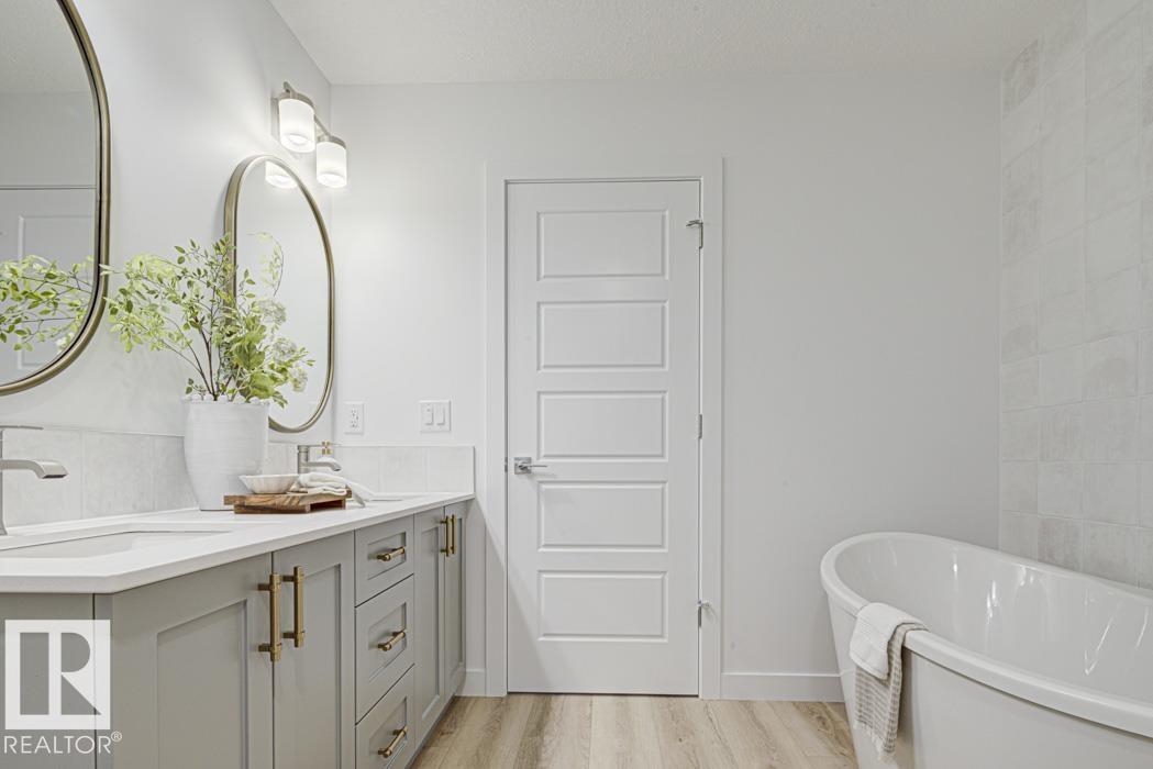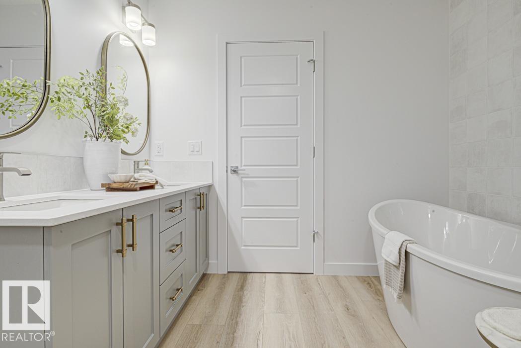 Built by Sterling Homes, this front-attached home in Forest Ridge blends striking design with everyday comfort. Triple pane windows and 9' ceilings brighten the main floor, where a welcoming foyer leads to a flex room and half bath. The mudroom connects to a walk-through spice kitchen, offering added prep space beside the main kitchen with quartz countertops, upgraded cabinetry, a custom hood fan, a Silgranit sink, and a large island for hosting. The great room features a dramatic 17-ft fireplace wall, oversized windows, and a garden door to the backyard. Upstairs, the primary suite offers walk-in closets and a 5-piece ensuite with a freestanding tub, double sinks, and a shower. A bright bonus room, two bedrooms, a full bath, and an upper laundry complete the level. Finished with luxury vinyl plank flooring, upgraded railings, side entrance, double attached garage, and basement rough-ins.