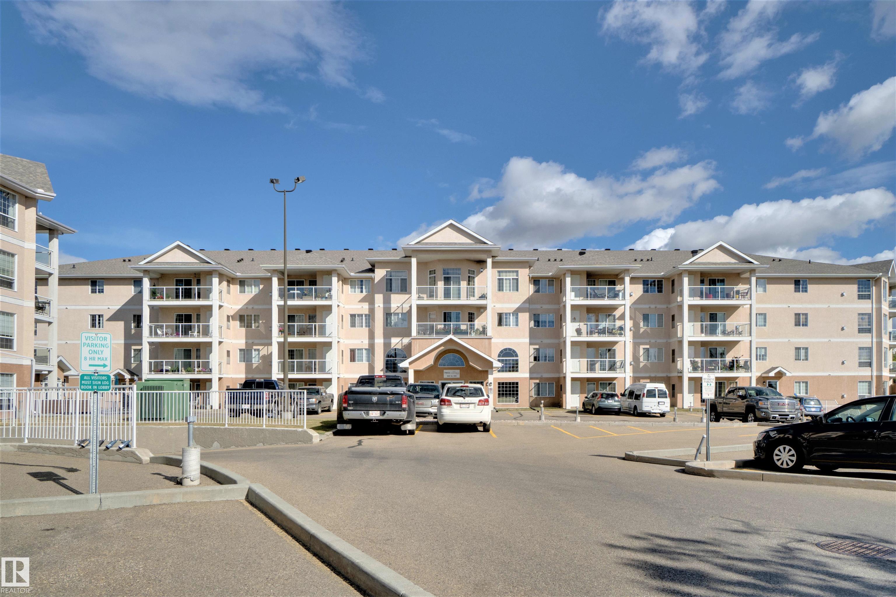 Live the relaxed and easy life here in Stony Plain!!! 35+ age restriction in this 2 bedroom, 2 bathroom condo is over 1000 sq ft. Beautiful 2nd floor CORNER unit with wrap around balcony! Great kitchen with loads of space including extra pantry room. Moveable island can be right in the kitchen or pushed off to the wall to give you some extra room. Bright living room with tons of windows and corner fireplace to cozy around on a cool fall evening! Master bedroom is a great space with separate entrance to the balcony. Walk in closet and 3pc ensuite. 2nd bedroom is perfect for guests or a home office. Additional 3pc bathroom with walk in shower too! UNDERGROUND PARKING with bonus storage cage! Tons of social opportunities in this close community with rec room, gym equipment, social spaces, amenities building! Close to golf and walking paths!!!