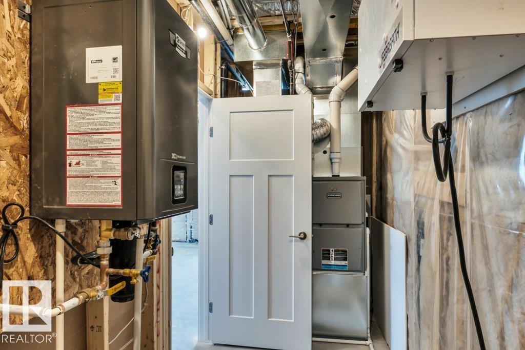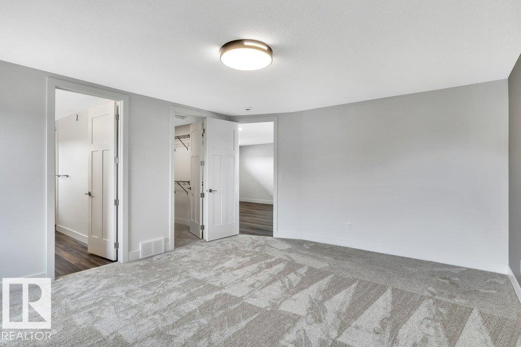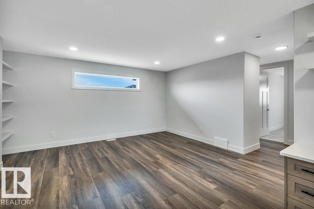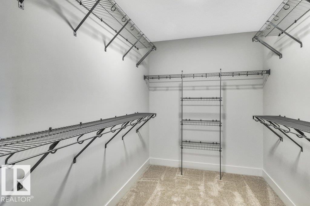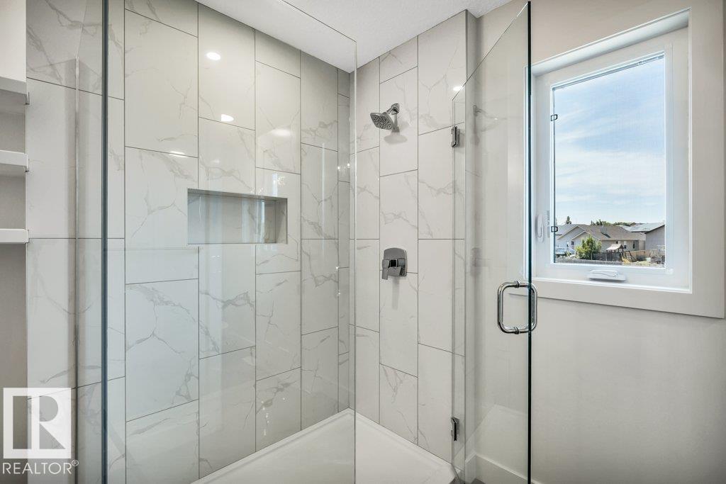 Immediate possession available. Welcome to this beautifully built home by Stonegate Developments, where exceptional craftsmanship and attention to detail are evident from the moment you step through the grand entrance. The open-concept main floor is perfect for entertaining, featuring a stylish kitchen with full-height cabinetry and access to a deck with aluminum railings, while upstairs offers three bedrooms, two bathrooms, a convenient walk-in laundry room, and a spacious family room with a built-in desk. The primary suite provides a relaxing retreat with a spa-inspired ensuite and custom tiled shower. Additional highlights include quartz countertops, 8-foot solid core doors, stainless steel appliances, a built-in electric fireplace, modern glass stair panels and luxury vinyl plank flooring. Situated on a pie-shaped lot in a quiet cul-de-sac, this home also features a double attached garage with a floor drain and side entry, and comes complete with full Alberta New Home Warranty for added peace of mind.