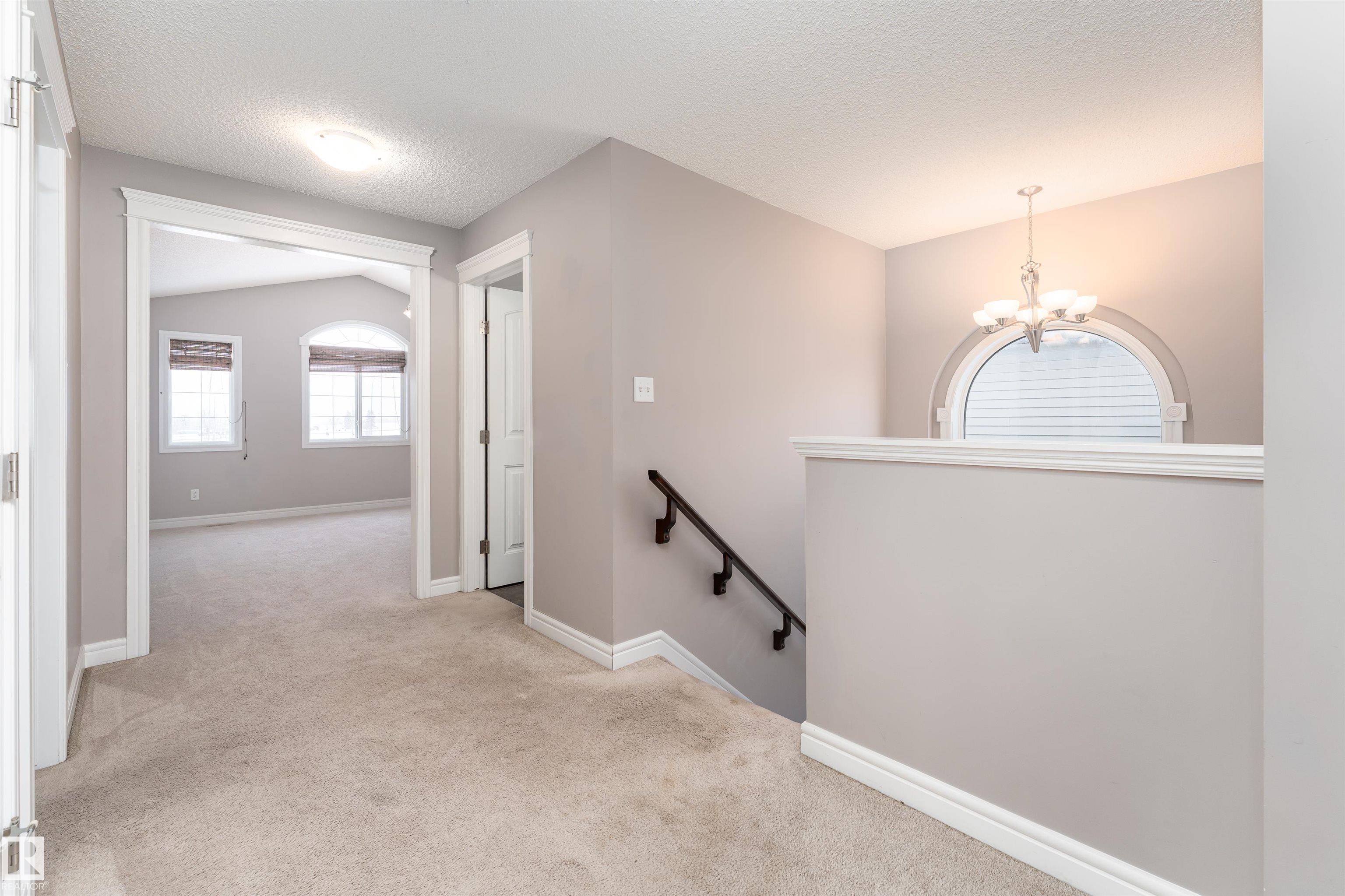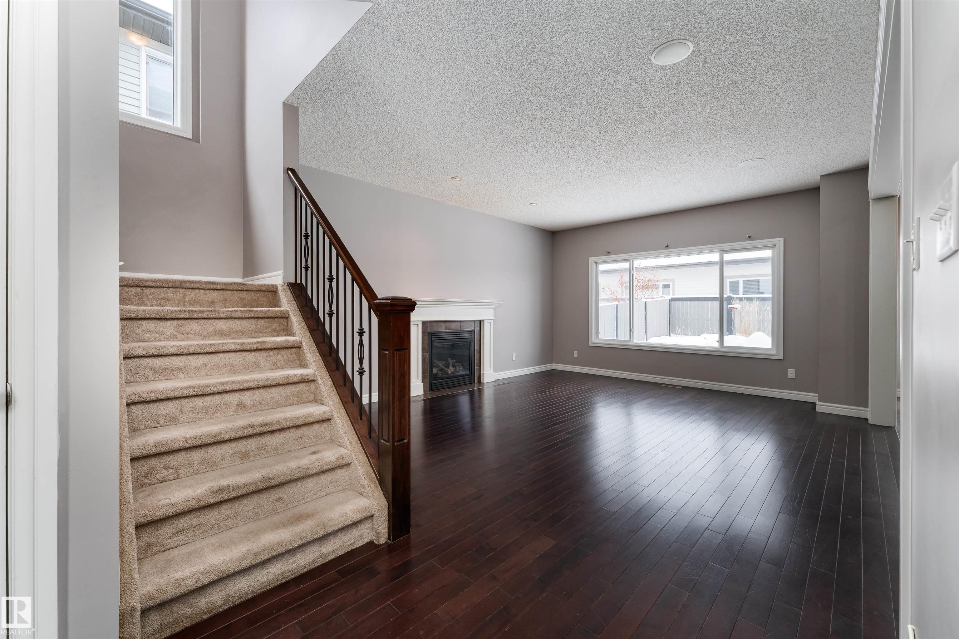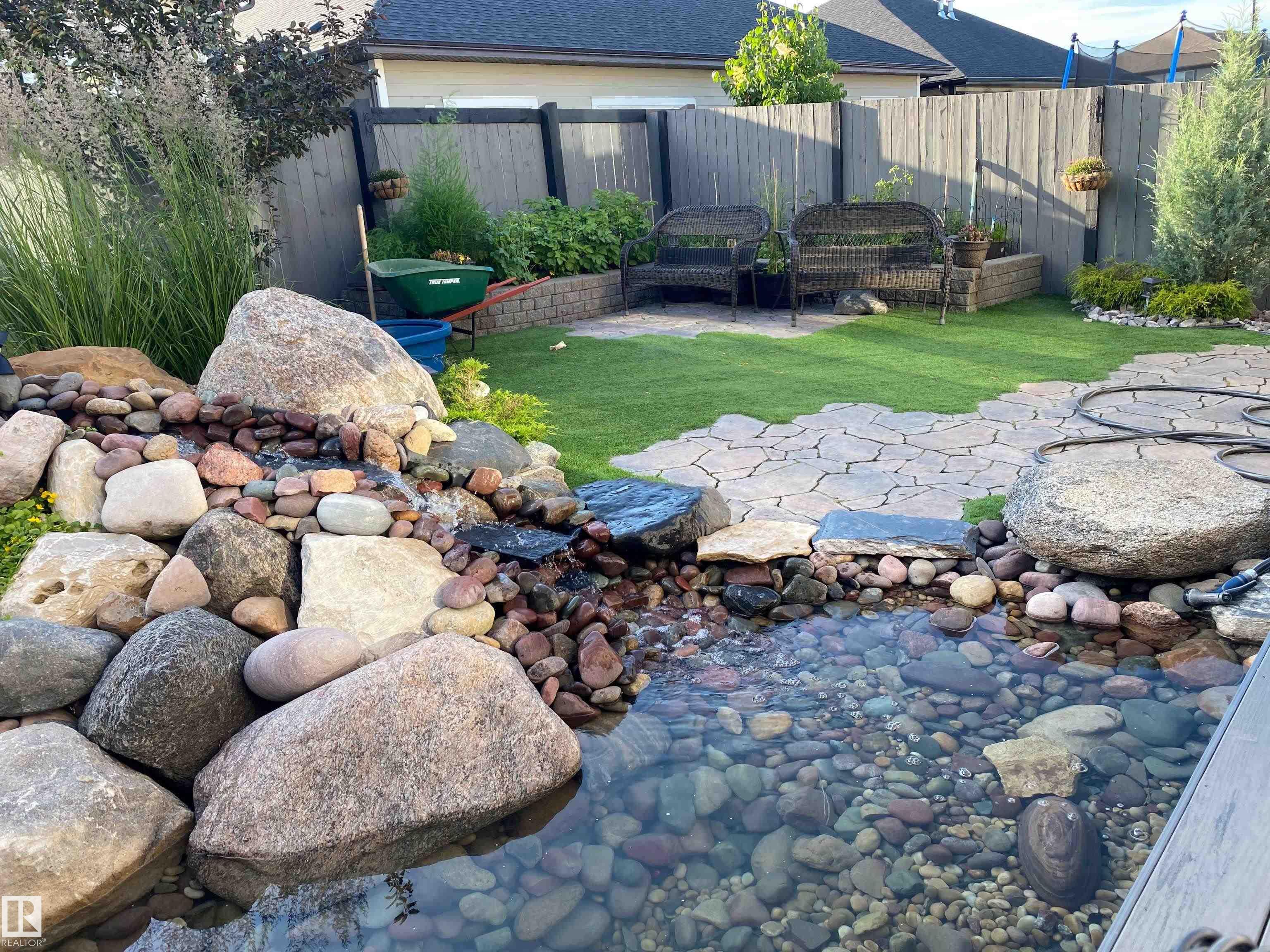 Nestled on a quiet cul-de-sac, this southeast-facing Summerwood home offers over 2,100sqft of bright, open living with style, comfort, and family functionality at every turn. The main floor features rich hardwood, a cozy gas fireplace, & a spacious living area filled with natural light. The kitchen impresses with granite countertops, stainless steel appliances, gas stove, and a corner pantry, flowing seamlessly into the dining area. A versatile open flex area adds room for a den or extra dining, alongside main floor laundry and a convenient 2-piece bath. Upstairs, enjoy a large family room with surround sound, three bedrooms including a generous primary with ensuite, plus an additional full bathroom. The fully fenced backyard boasts a composite deck and a water feature, complemented by another water feature at the front. Recent updates: hot water tank, water softener, garage door, and A/C for year-round comfort. Bright, spacious, and perfectly located--this home has it all. Some photos are virtually staged