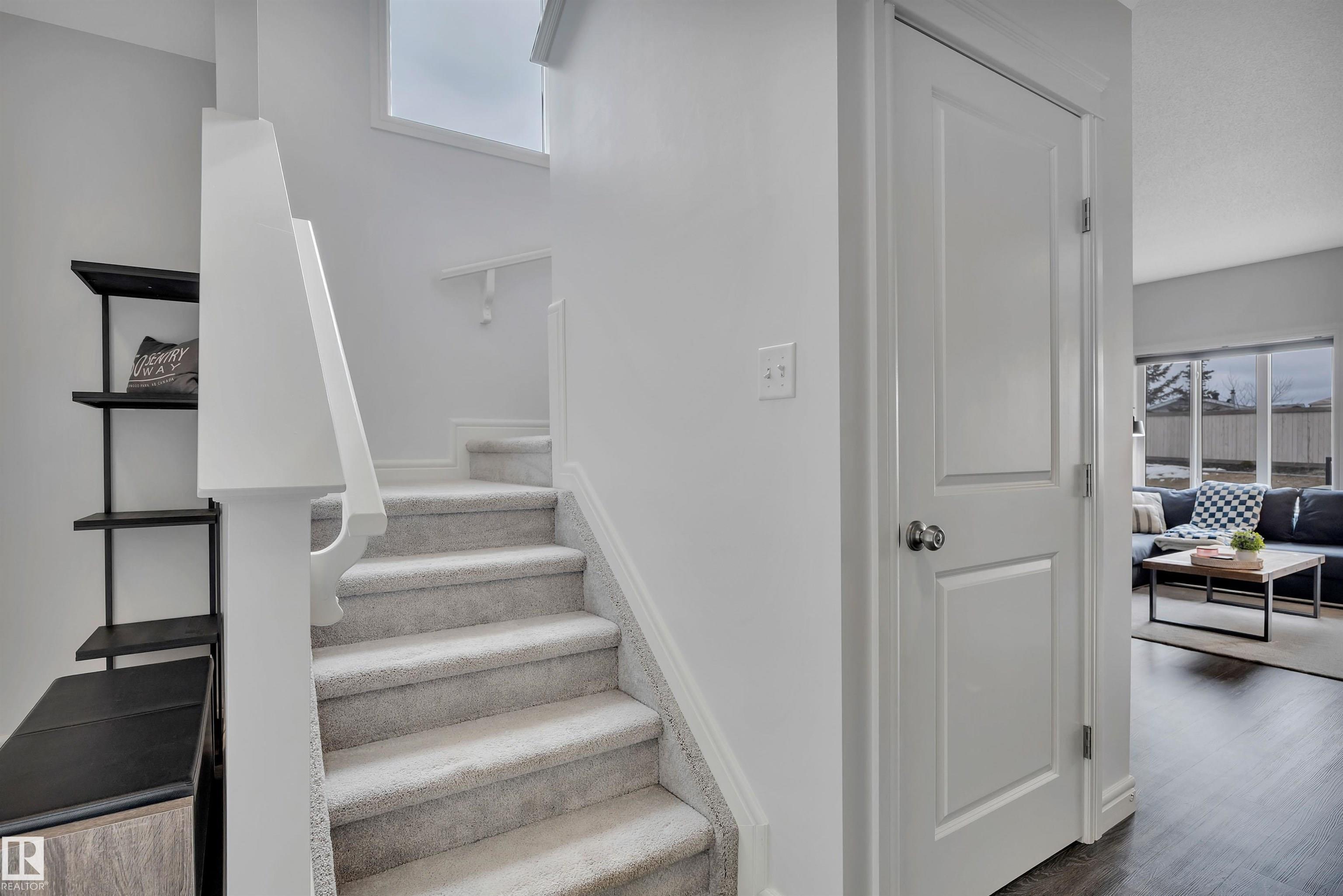 RARE FIND! Don't miss out on this 1,620 sq.ft. 2-storey 3 bedroom duplex situated on a massive 6,425sq.ft pie shape lot in the heart of Summerwood. Main floor features include 9' ceilings & vinyl plank flooring thru-out; spacious entryway; main floor laundry room; 2pc. bathroom; open concept livingroom & kitchen w/ stainless appliances, quartz countertops, work island, corner pantry closet & adjoining dinette. The upper level offers a bonus room & den area with vaulted ceilings, 2 childrens bedrooms; 4pc. main bath and a primary suite with walk-in closet & 4pc. ensuite bath. The unfinished basement awaits your finishing touch along with a hi-efficiency furnace and central A/C. Exterior amenities include a double attached garage; fenced and landscaped southwest exposure pie shaped backyard w/ an entertainment sized (20'x38') maintenance free composite deck. All this is located in a quiet crescent location with easy access for your work commute on HWY 21 and Yellowhead Highway. SIMPLY PUT...GREAT VALUE!