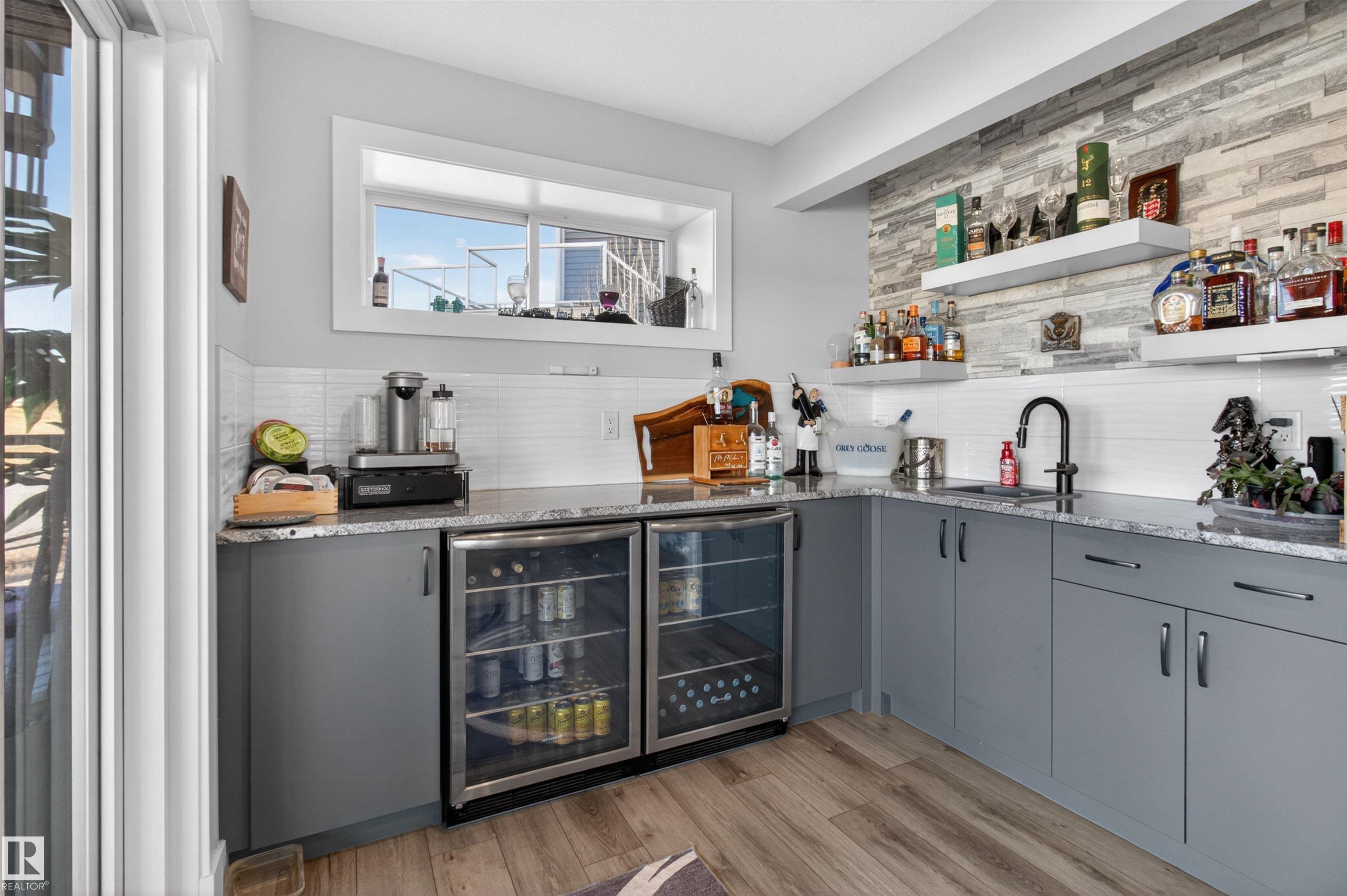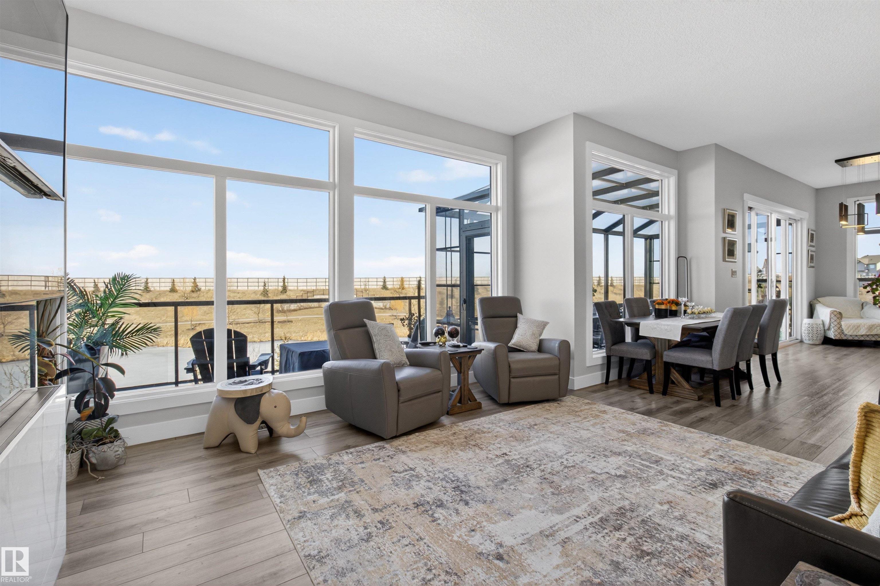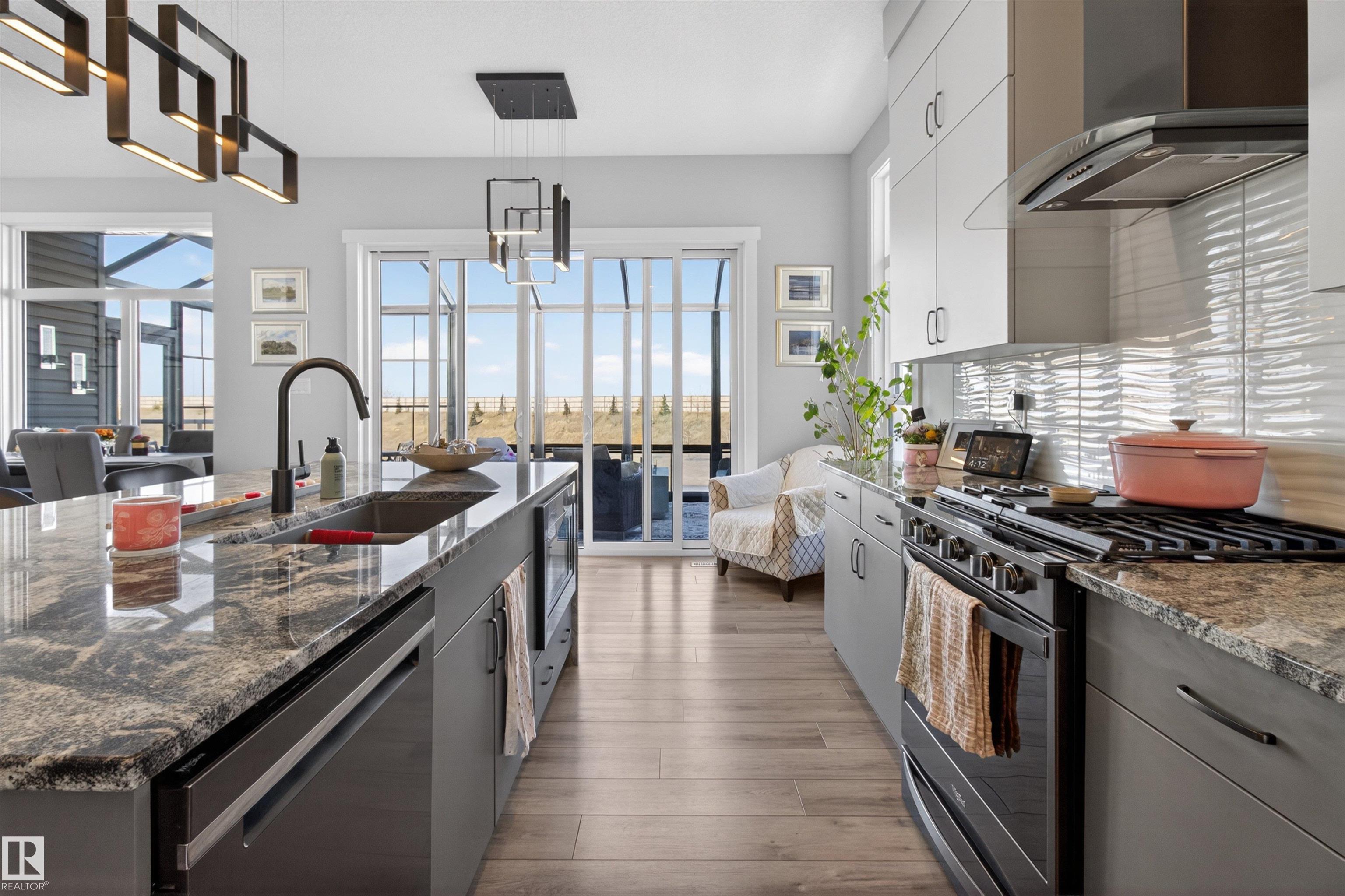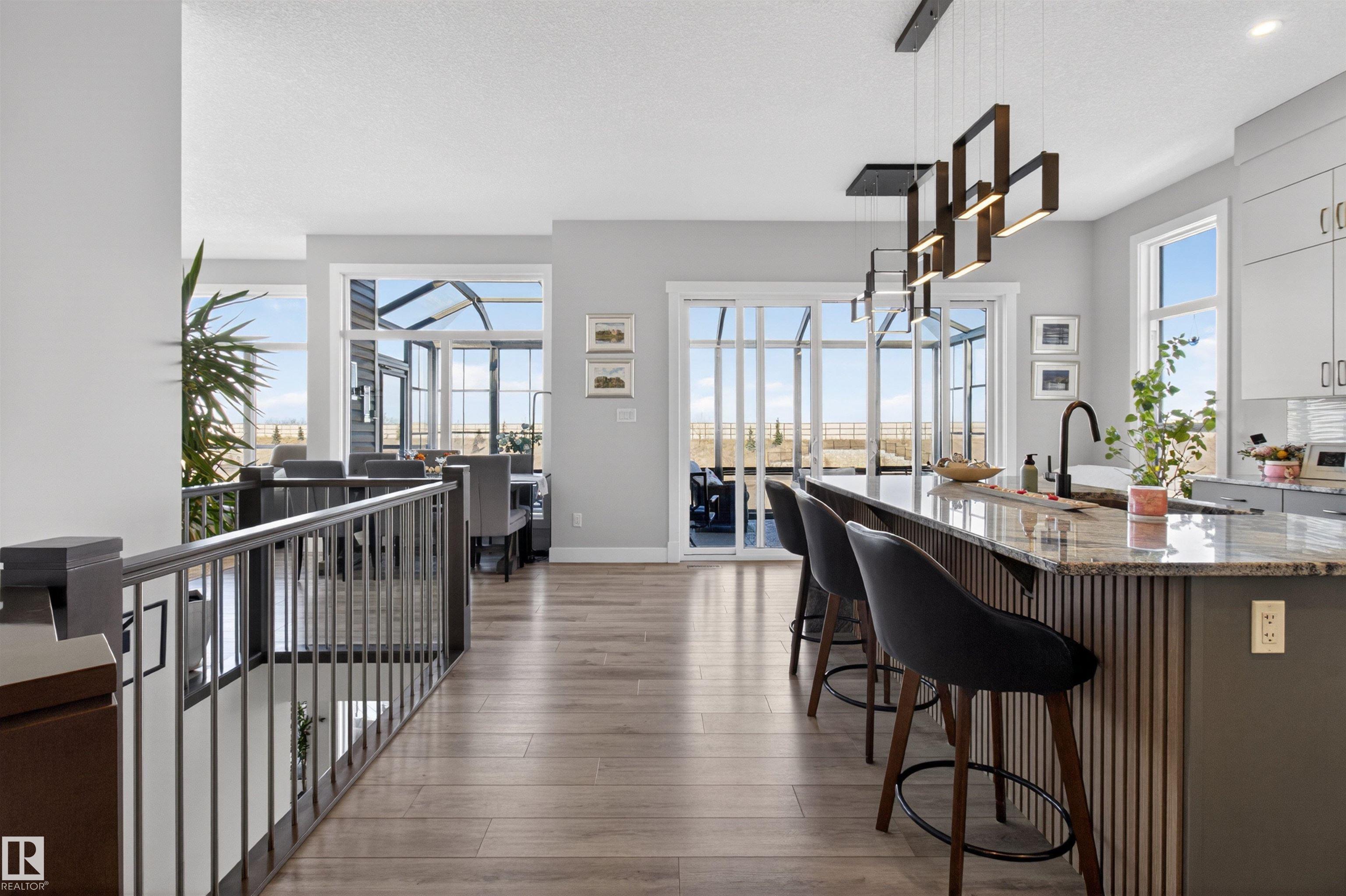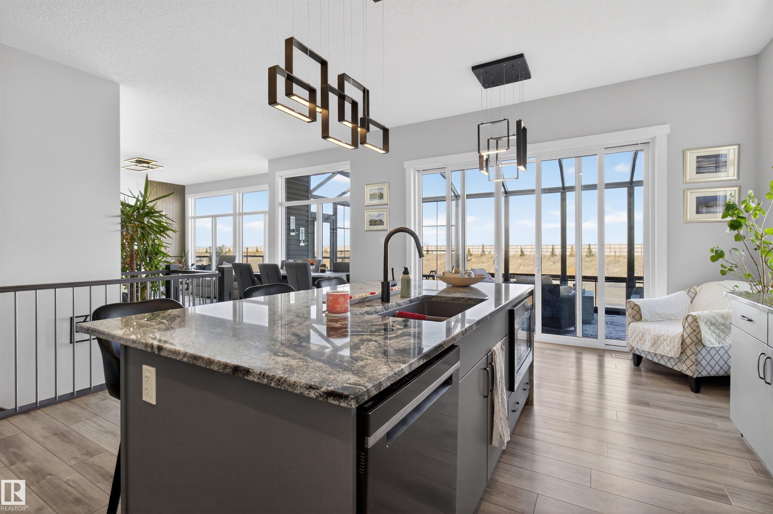 GORGEOUS WALKOUT BUNGALOW! BACKING THE POND & TREED SETTING! Open concept with 10ft ceilings on the main, high end quality finishings, and an abundance of windows throughout. Over 2700 sq ft of total living space including a FULLY FINISHED walkout basement. STUNNING KITCHEN! Gorgeous granite countertops, waterfall island, pantry, stainless steel appliances, gas stove & beautiful cabinetry. Generous dining area, luxury vinyl plank flooring, spacious living room & electric fireplace. HUGE UPPER DECK & BEAUTIFUL 3 SEASON SUN ROOM! Enjoy the amazing views! Primary Bedroom with luxurious 5-piece ensuite & walk-in closet. Flex room/den, laundry & powder room. Central A/C & hot water on demand. The basement offers a family room, games area, wet bar & wine feature wall, 2 bedrooms, gorgeous 3 piece bathroom, utility room, & storage space. FABULOUS COMPOSITE DECK! Maintenance-free backyard with artificial turf & bubble rock. OVERSIZED & HEATED double attached garage with epoxy flooring. You'll LOVE this home!