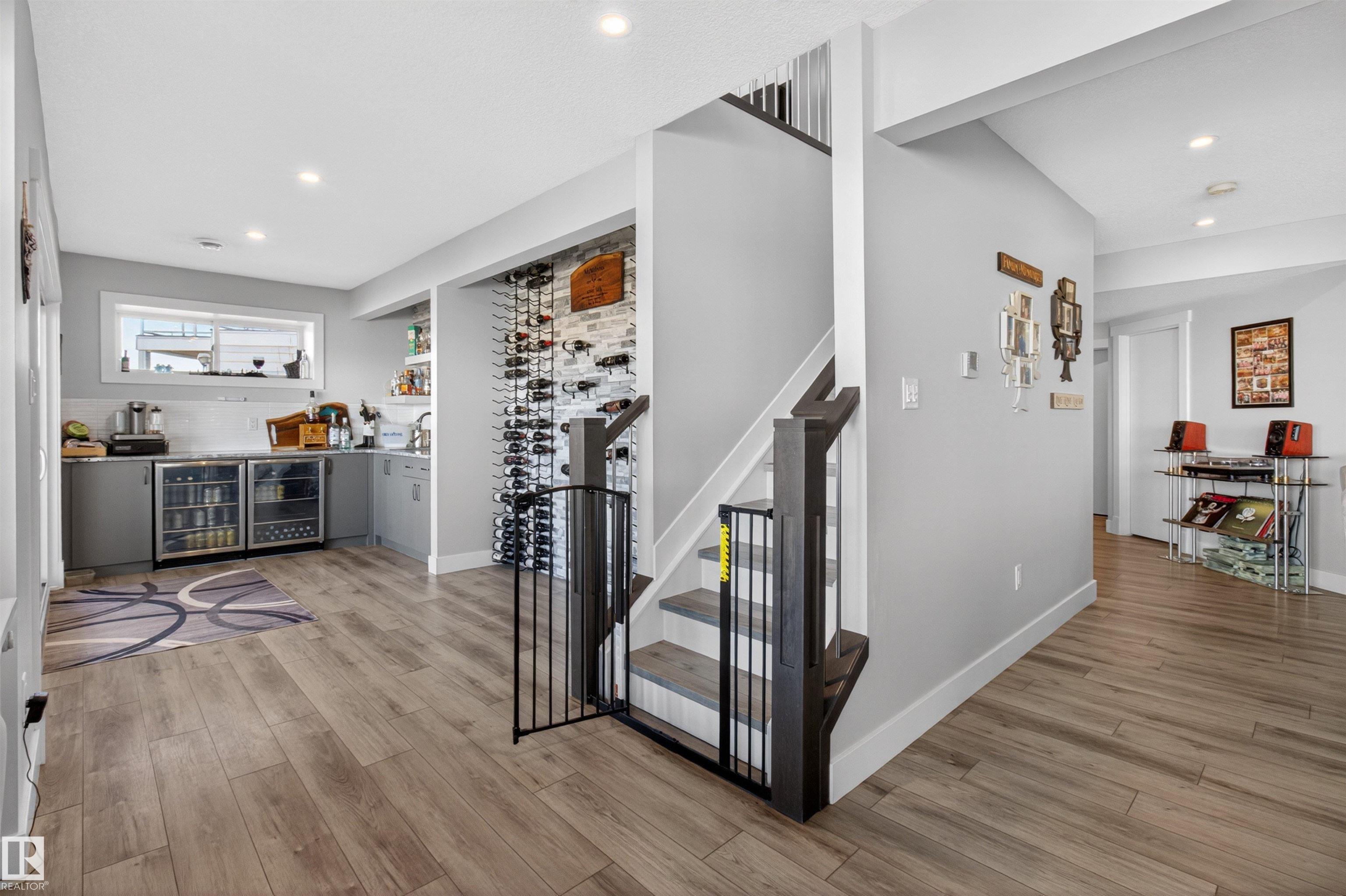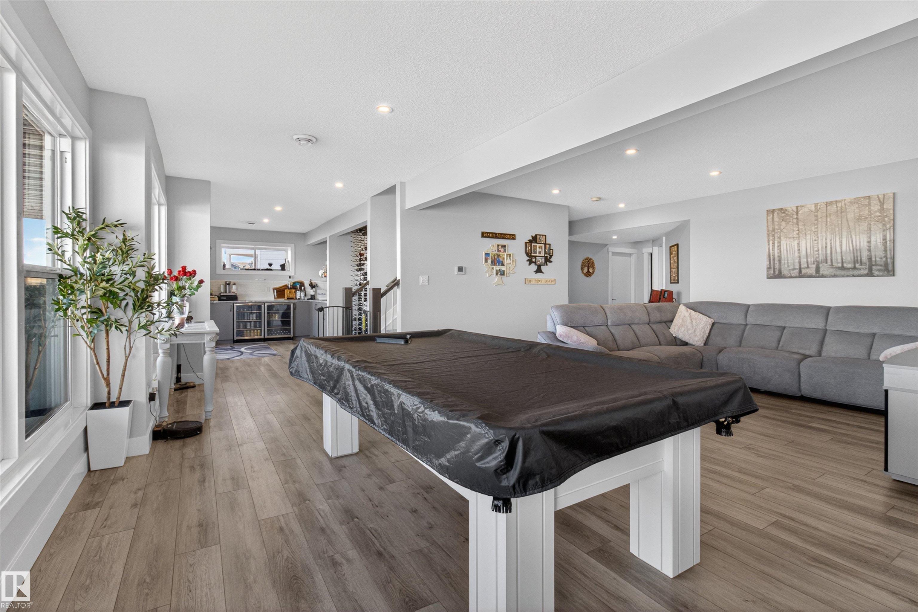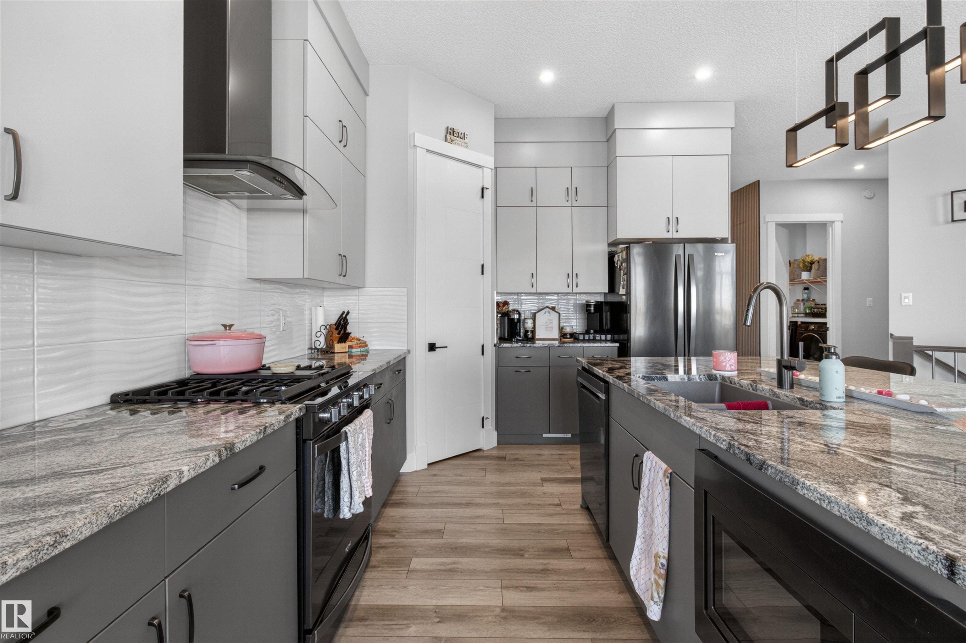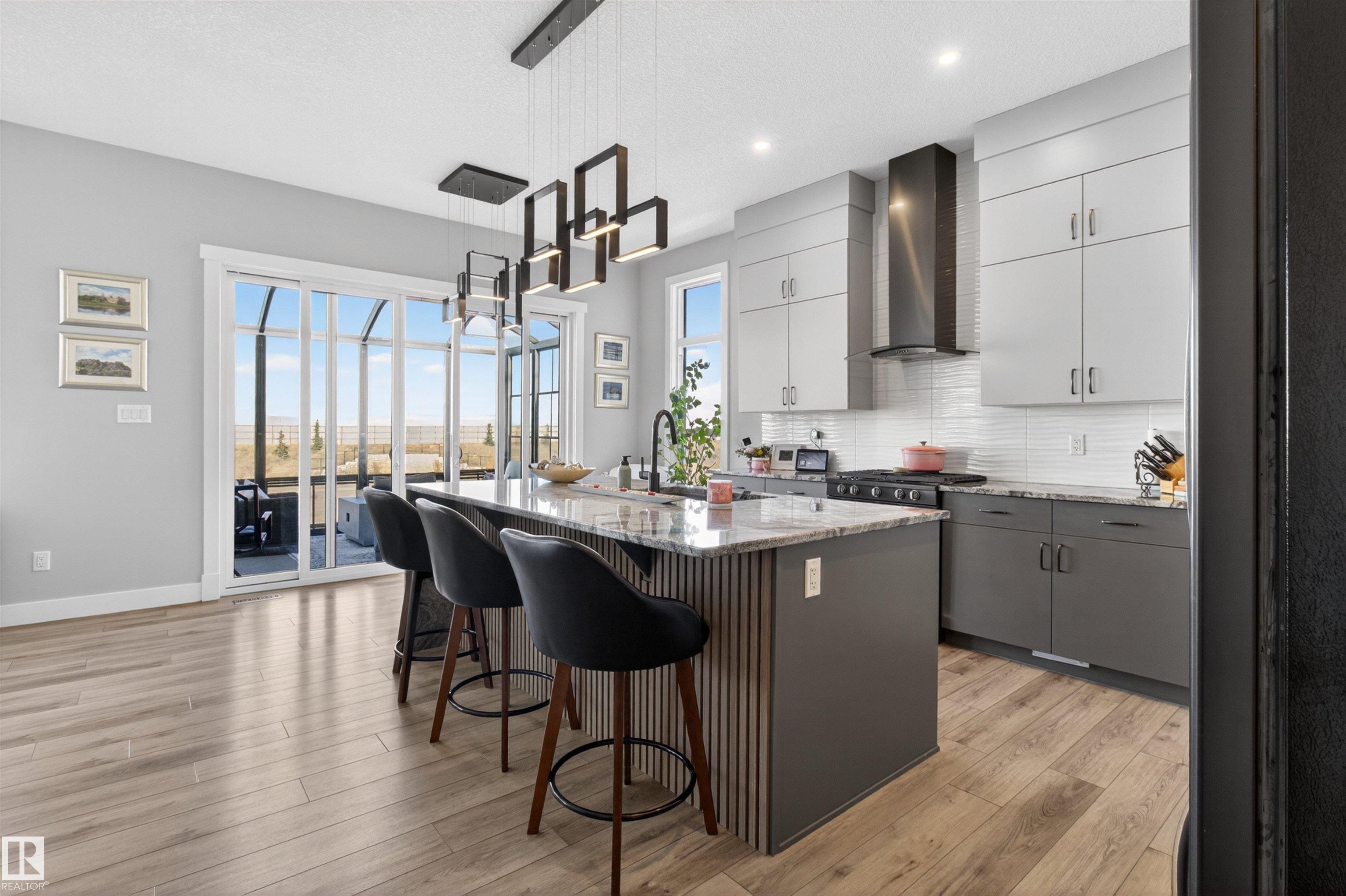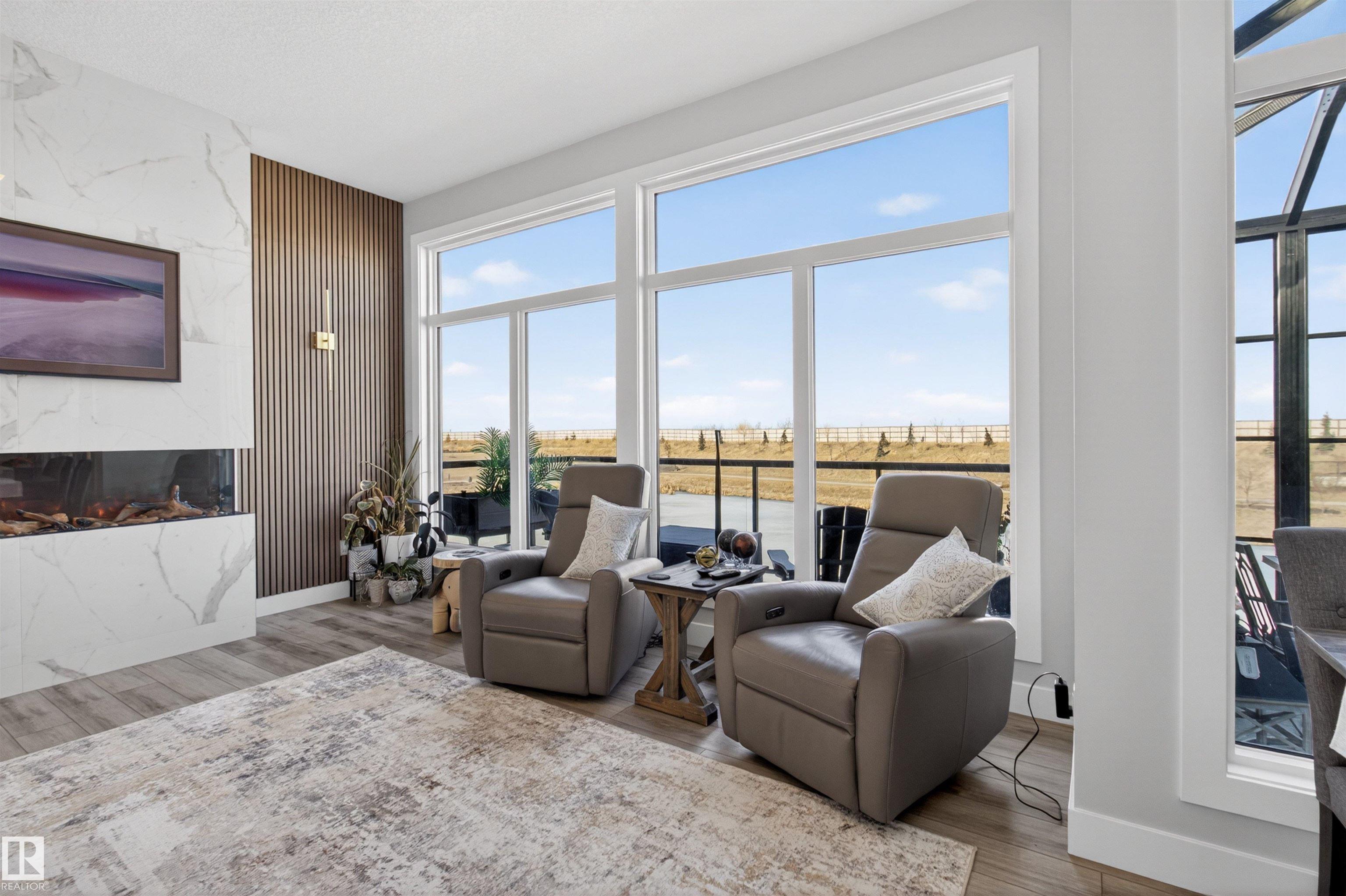 GORGEOUS WALKOUT BUNGALOW! BACKING THE POND & TREED SETTING! Open concept with 10ft ceilings on the main, high end quality finishings, and an abundance of windows throughout. Over 2700 sq ft of total living space including a FULLY FINISHED walkout basement. STUNNING KITCHEN! Gorgeous granite countertops, waterfall island, pantry, stainless steel appliances, gas stove & beautiful cabinetry. Generous dining area, luxury vinyl plank flooring, spacious living room & electric fireplace. HUGE UPPER DECK & BEAUTIFUL 3 SEASON SUN ROOM! Enjoy the amazing views! Primary Bedroom with luxurious 5-piece ensuite & walk-in closet. Flex room/den, laundry & powder room. Central A/C & hot water on demand. The basement offers a family room, games area, wet bar & wine feature wall, 2 bedrooms, gorgeous 3 piece bathroom, utility room, & storage space. FABULOUS COMPOSITE DECK! Maintenance-free backyard with artificial turf & bubble rock. OVERSIZED & HEATED double attached garage with epoxy flooring. You'll LOVE this home!