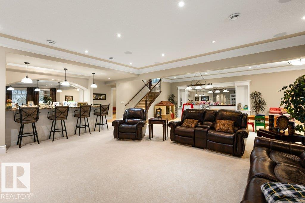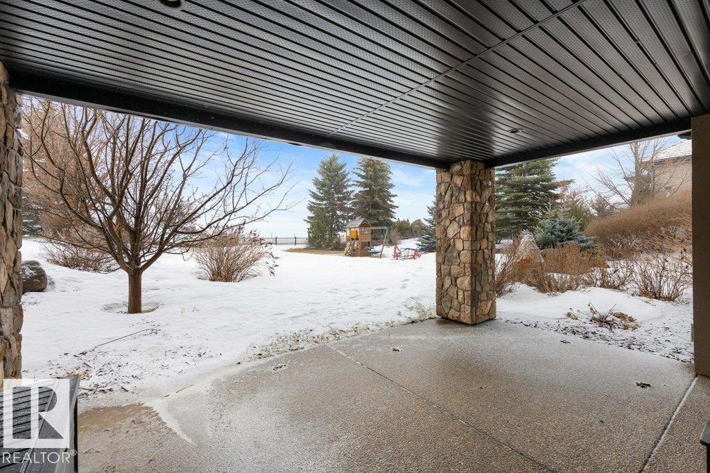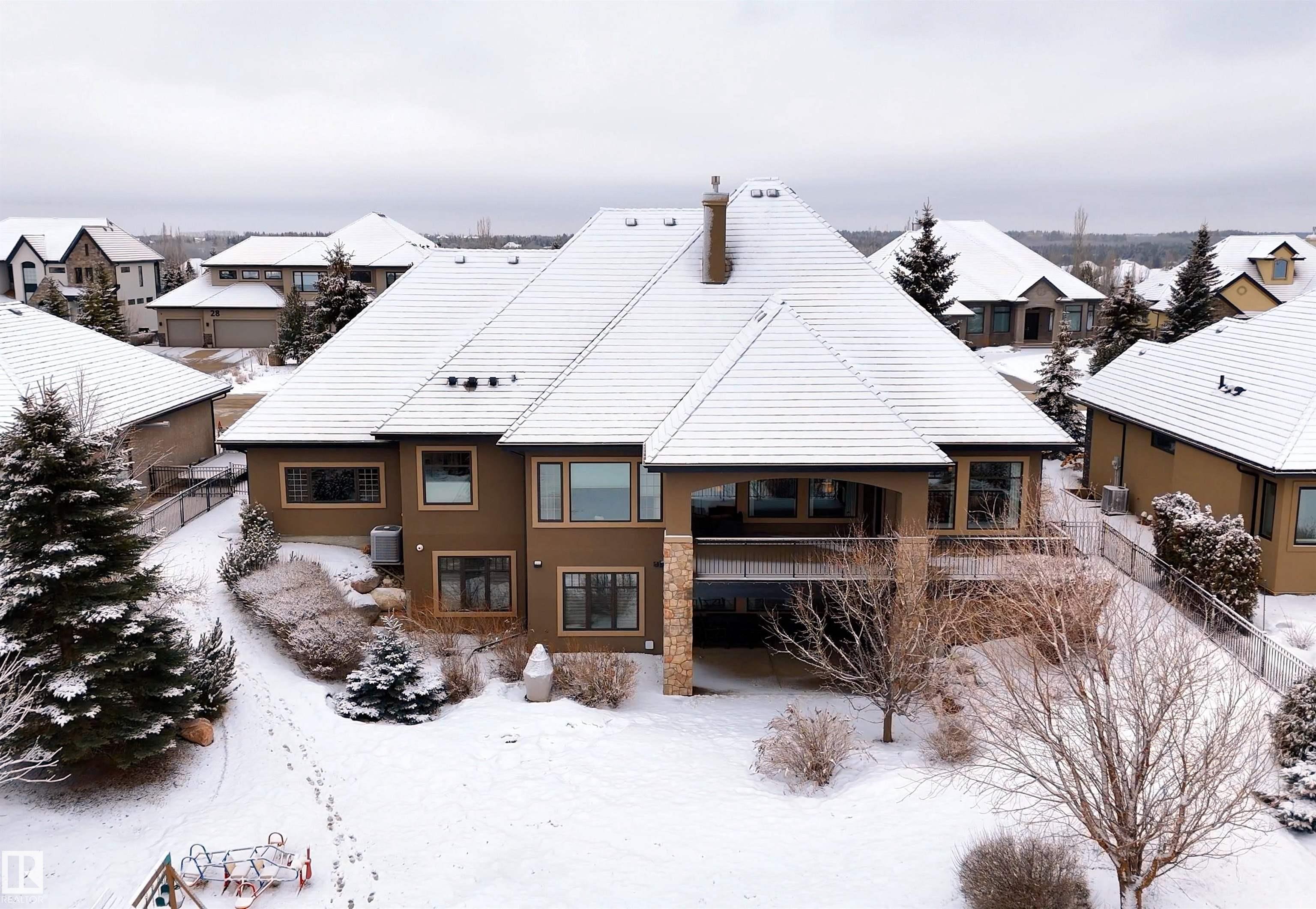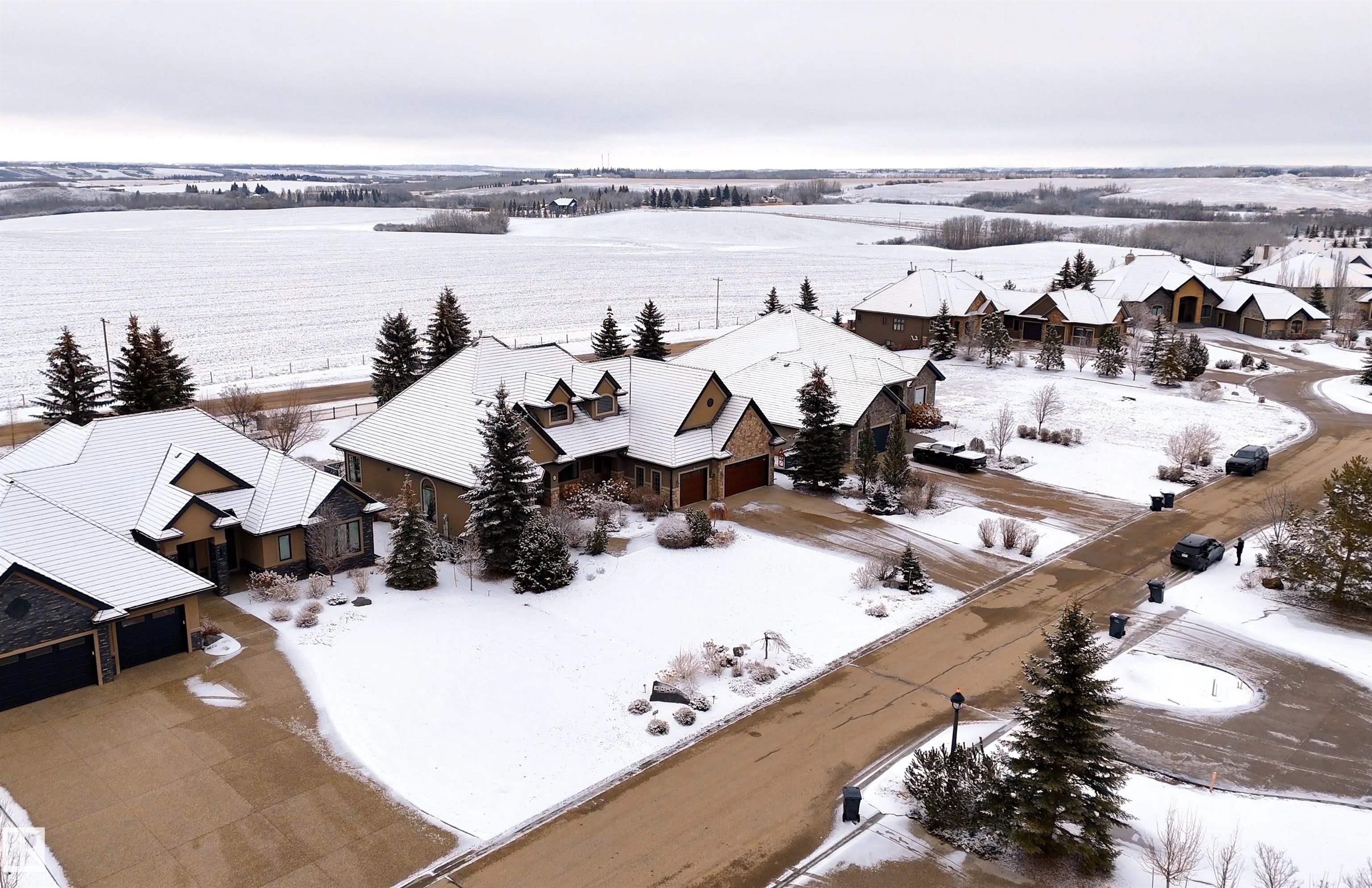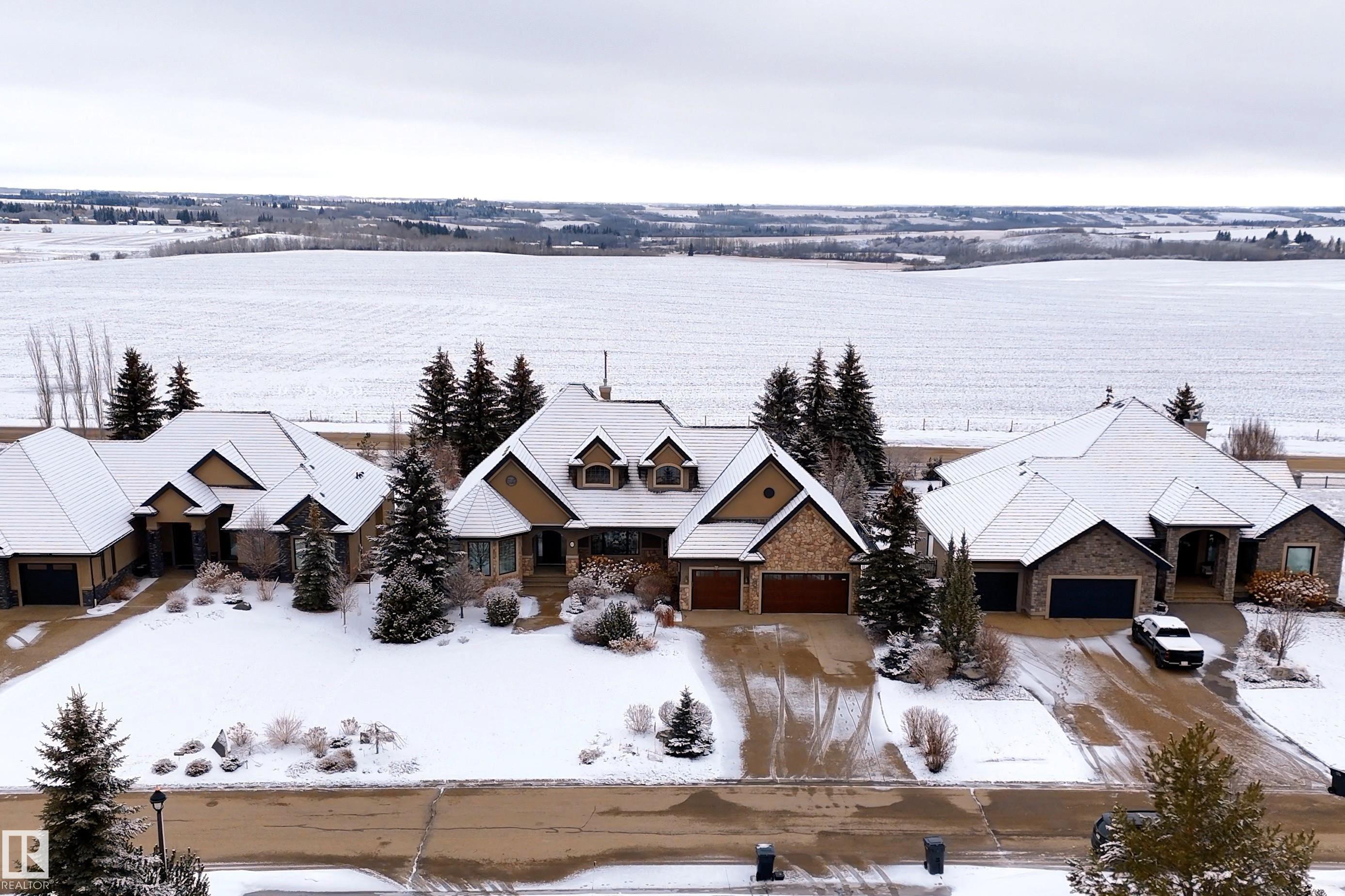Welcome to this exceptional 2,300 sq ft walk-out bungalow by Audie Benson Estate Homes, ideally nestled in the prestigious community of Riverstone Pointe. Showcasing breathtaking views, it offers the ultimate blend of luxury, tranquility, and acreage-style living--just minutes to St. Albert and the Henday. Built to the highest standards of quality and craftsmanship, every detail has been thoughtfully curated. The main floor features a stunning primary retreat with a spa-inspired 5-piece ensuite and expansive walk-in closet, along with a private den. The open-concept living space is rich in natural light and anchored by a beautifully appointed, chef-inspired kitchen designed for both elevated entertaining and everyday living. The fully finished walk-out lower level offers 3 spacious bedrooms and an impressive family rm/games area & wet bar creating the perfect setting for hosting family and guests. A heated quad garage completes this extraordinary home--where timeless design meets an exceptional lifestyle.