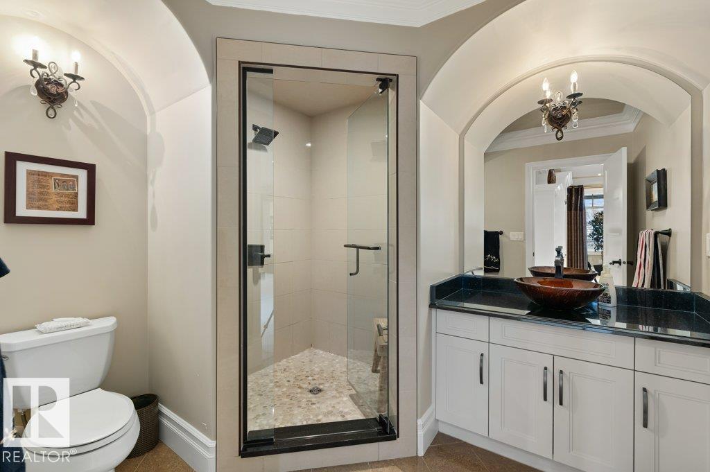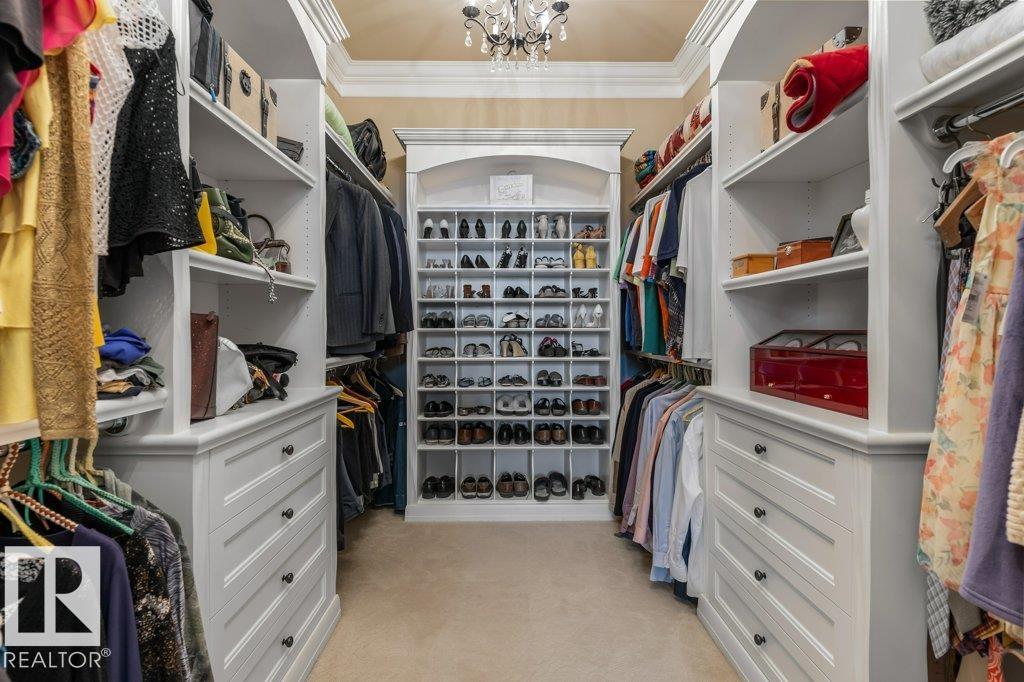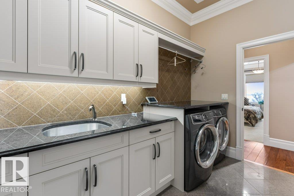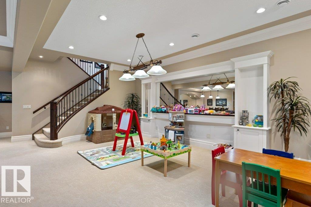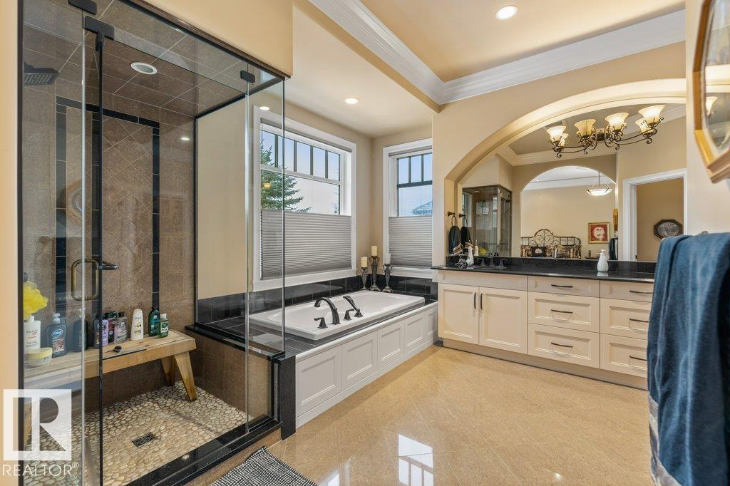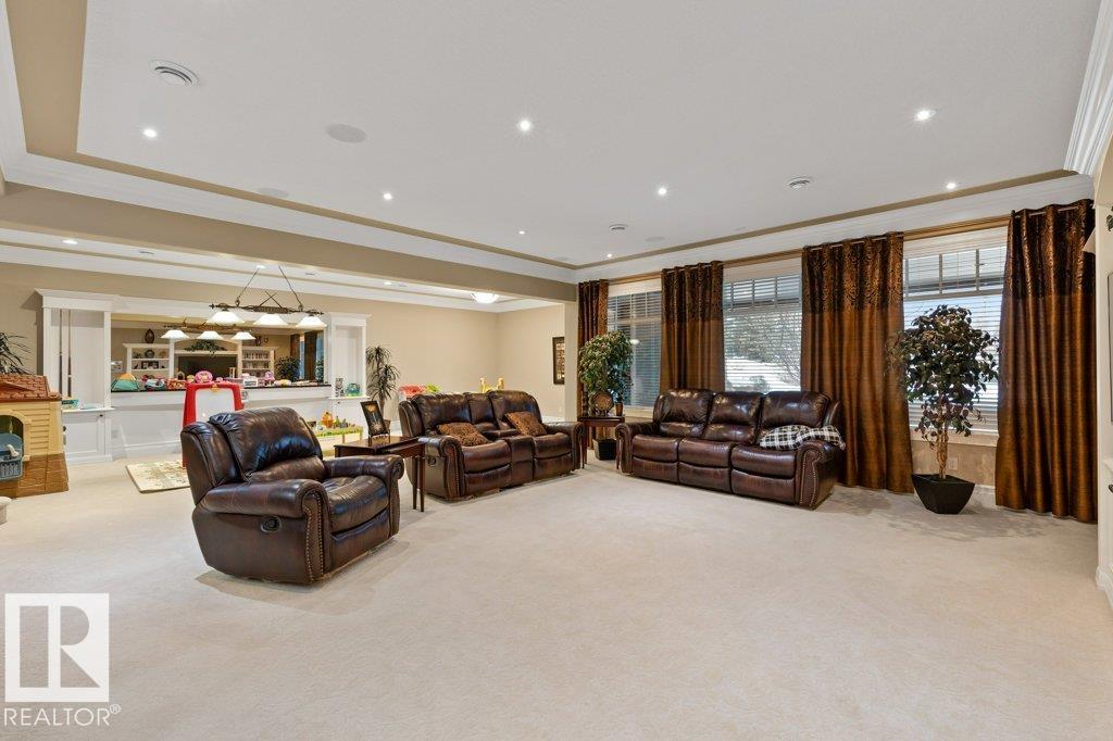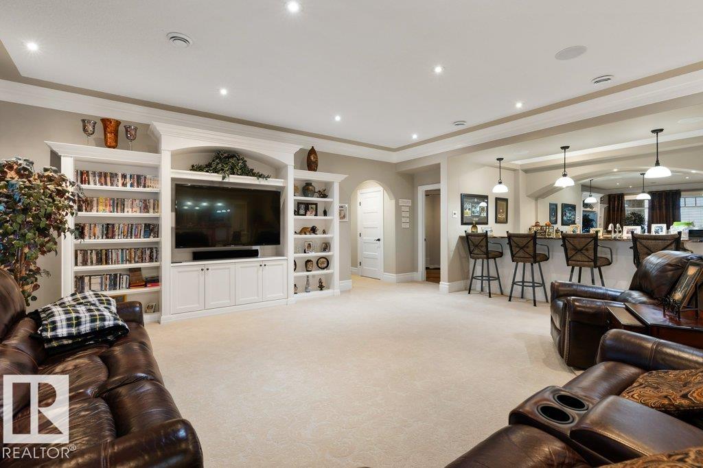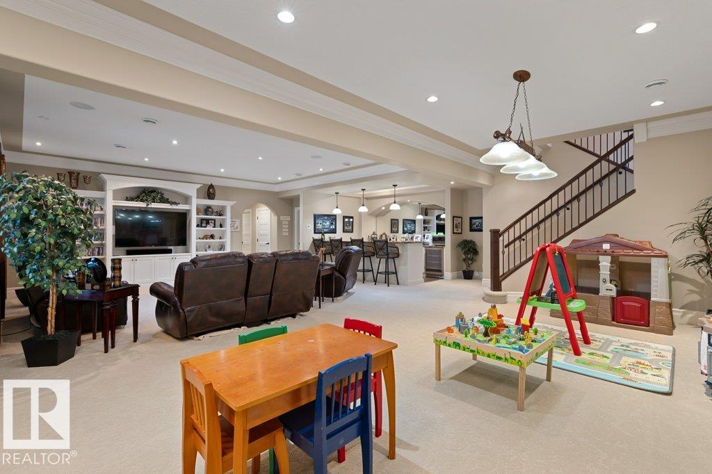 Welcome to this exceptional 2,300 sq ft walk-out bungalow by Audie Benson Estate Homes, ideally nestled in the prestigious community of Riverstone Pointe. Showcasing breathtaking views, it offers the ultimate blend of luxury, tranquility, and acreage-style living--just minutes to St. Albert and the Henday. Built to the highest standards of quality and craftsmanship, every detail has been thoughtfully curated. The main floor features a stunning primary retreat with a spa-inspired 5-piece ensuite and expansive walk-in closet, along with a private den. The open-concept living space is rich in natural light and anchored by a beautifully appointed, chef-inspired kitchen designed for both elevated entertaining and everyday living. The fully finished walk-out lower level offers 3 spacious bedrooms and an impressive family rm/games area & wet bar creating the perfect setting for hosting family and guests. A heated quad garage completes this extraordinary home--where timeless design meets an exceptional lifestyle.