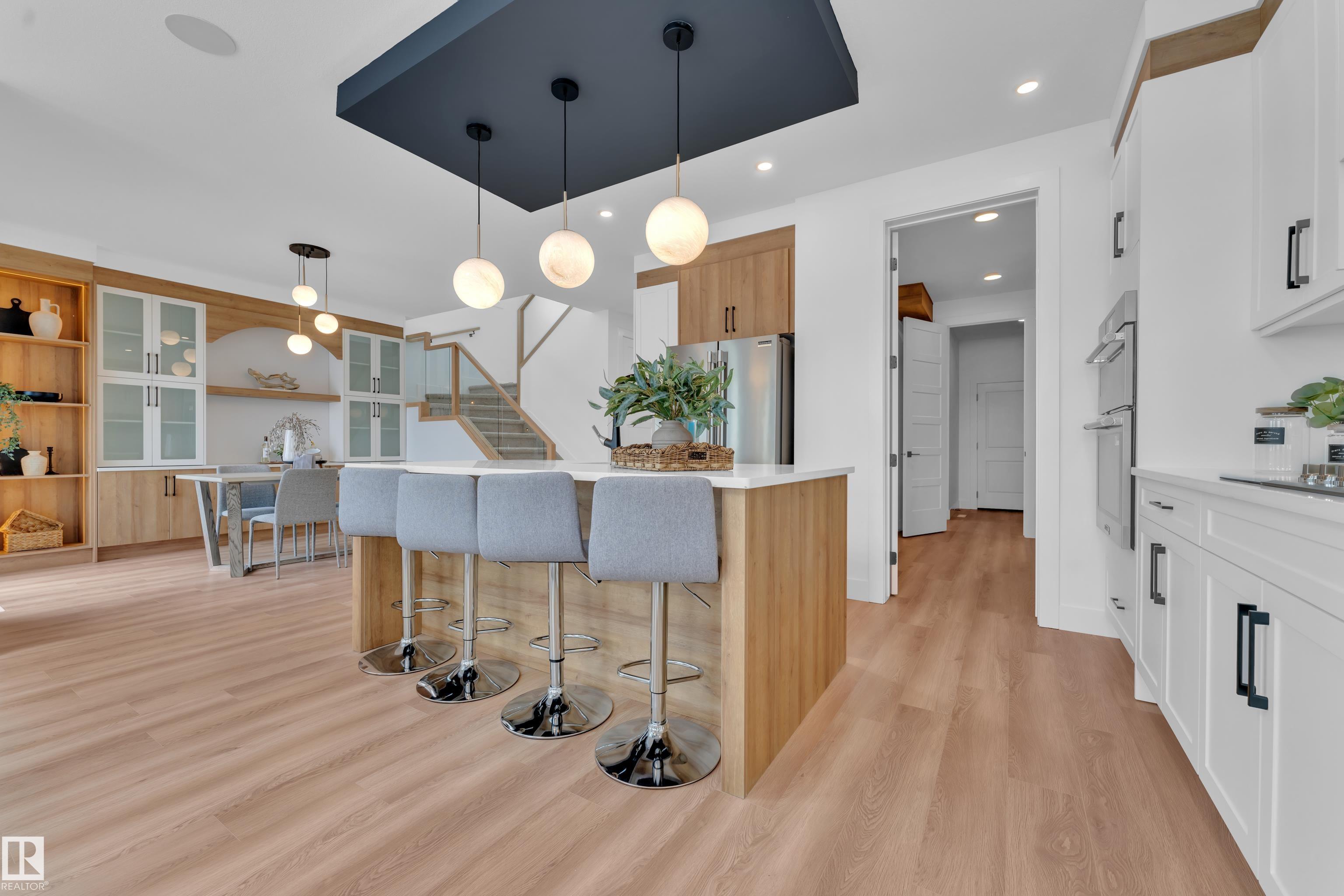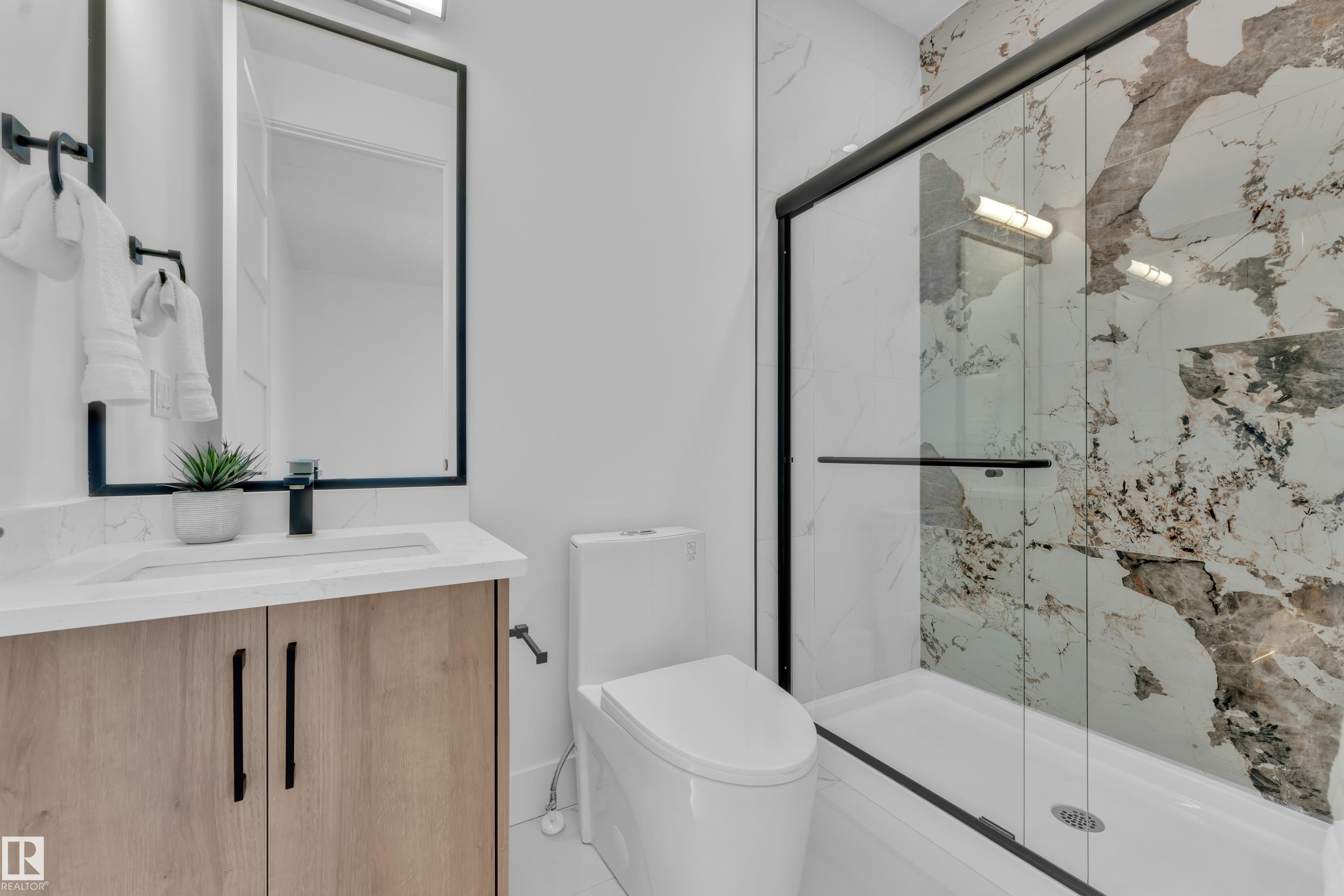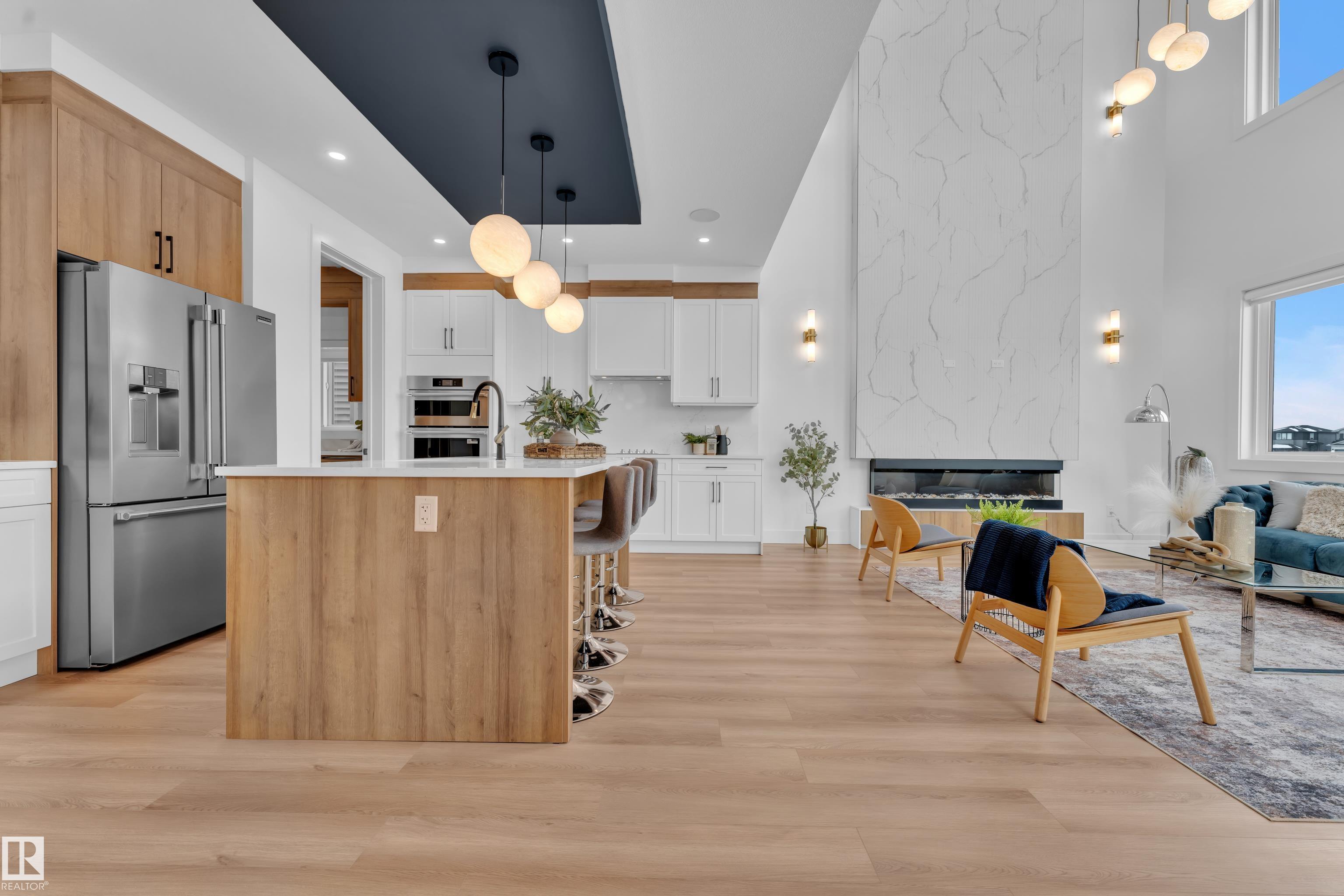 Backing onto park, stunning 2-storey home on a 28 Pkt REGULAR LOT offers 2666 SF of modern living. Beautifully designed open to above LIVING AREA WRAPPED WITH 8 MASSIVE WINDOWS, filling the home with natural light. MAIN FLOOR FULL BED & BATH, MASSIVE SPICE KITCHEN, large island and elegant cabinetry flows into a spacious living area OVERLOOKING GREEN SPACE. Upstairs features 2 MASTER BEDROOMS with luxurious ensuites, bonus room overlooking main living area and park, plus 2 additional bedrooms. Other feature include Indent ceilings, MAN DOOR to garage, Vinyl DECK with metal spindle railing, 3 WINDOWS in basement and 8 FT DOORS throughout to add style & SEPARATE SIDE ENTRANCE for future legal suite potential. Close to COSTCO, Multiple retail plazas, schools and major amenities. Welcome Home!!