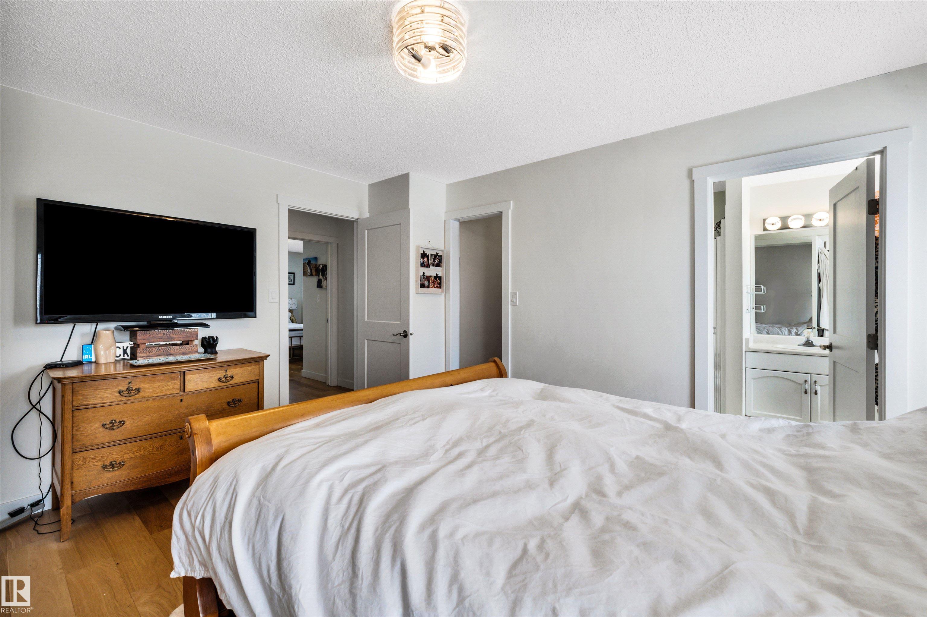 Bright, sunny and spacious 4 level split in Erin Ridge that is well-kept. With 2024 sq. ft. on the top three levels plus a finished basement, there is plenty of space for your growing family. Main floor features large living and dining rooms with a vaulted ceiling and spacious kitchen equipped with stainless steel appliances and large eating area. Three good sized bedrooms upstairs including a large primary bedroom with walk-in closet and 4 pce ensuite with walk-in shower and jetted tub. Newer hardwood flooring on the main and top floors. The 3rd level has a huge family room with a gas fireplace that opens to the kitchen, a 3rd full bath, a 4th bedroom (currently used as a hair salon), a laundry room and access to the heated garage. The basement has a 5th bedroom, big recreation room, and crawl space that is amazing for storage! New interior doors, trim and baseboards on the top 3 levels! Central A/C. Enjoy the SW facing backyard this summer from the 2-tiered, maintenance free deck and large patio area!